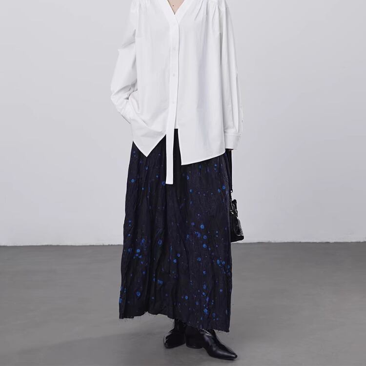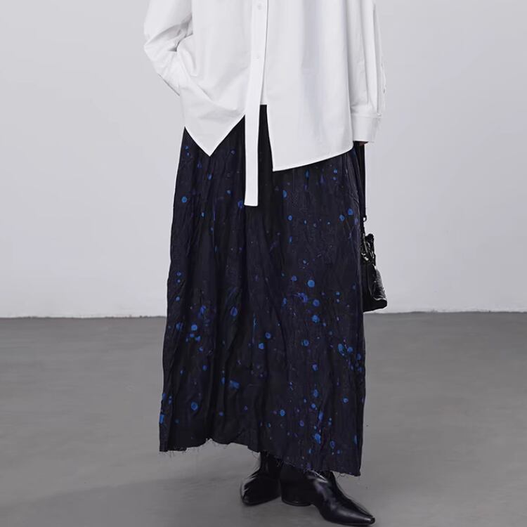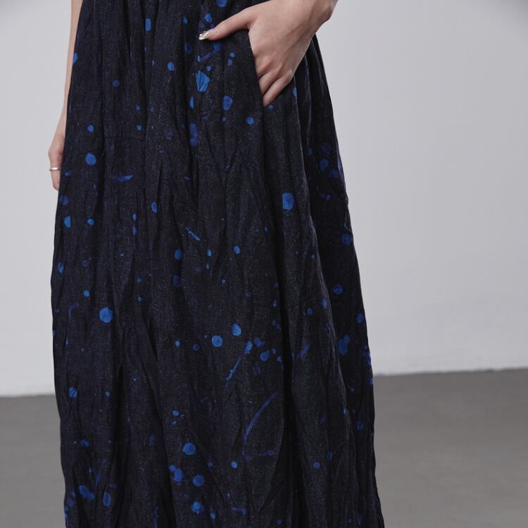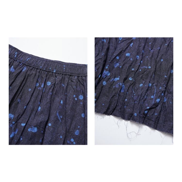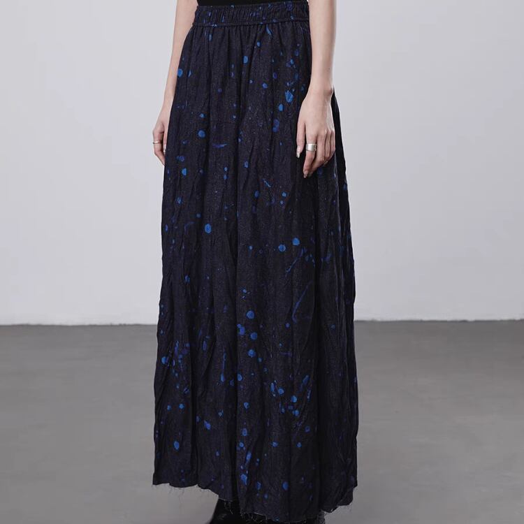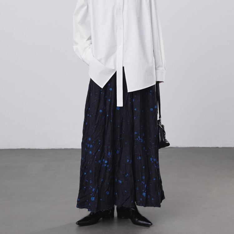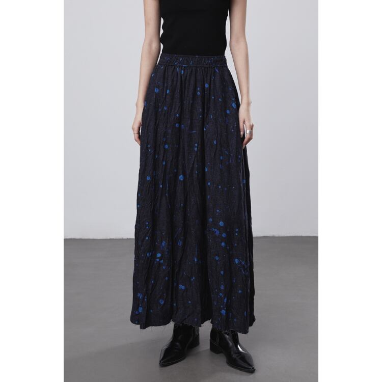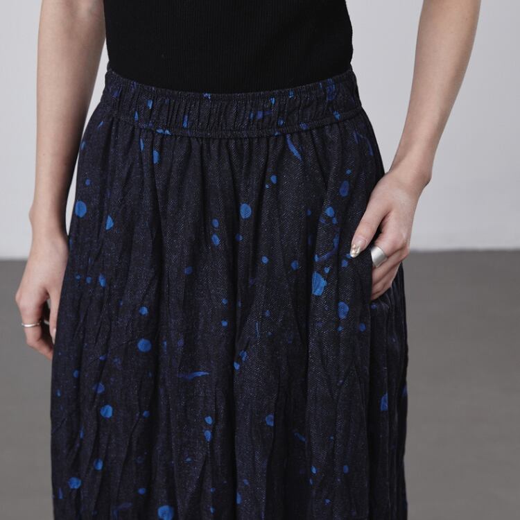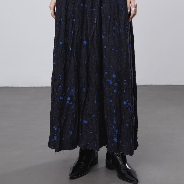 スプラッシュ柄プリントワッシャー生地ギャザーフレアースカート 0977