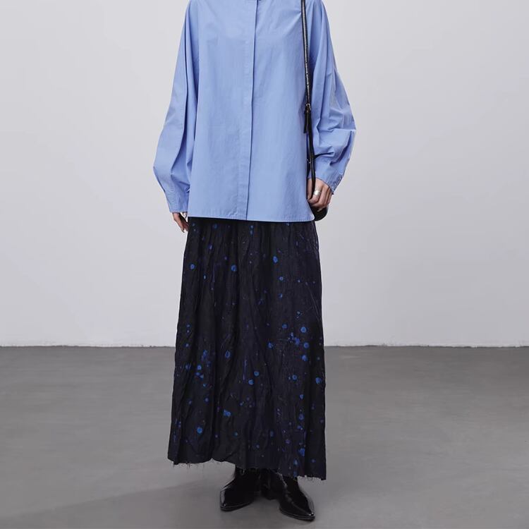 ネイビーにブルーのインクを飛ばしたようなランダムな柄が個性的で、あなたのコーディネートに新しい風を吹き込んでくれます。