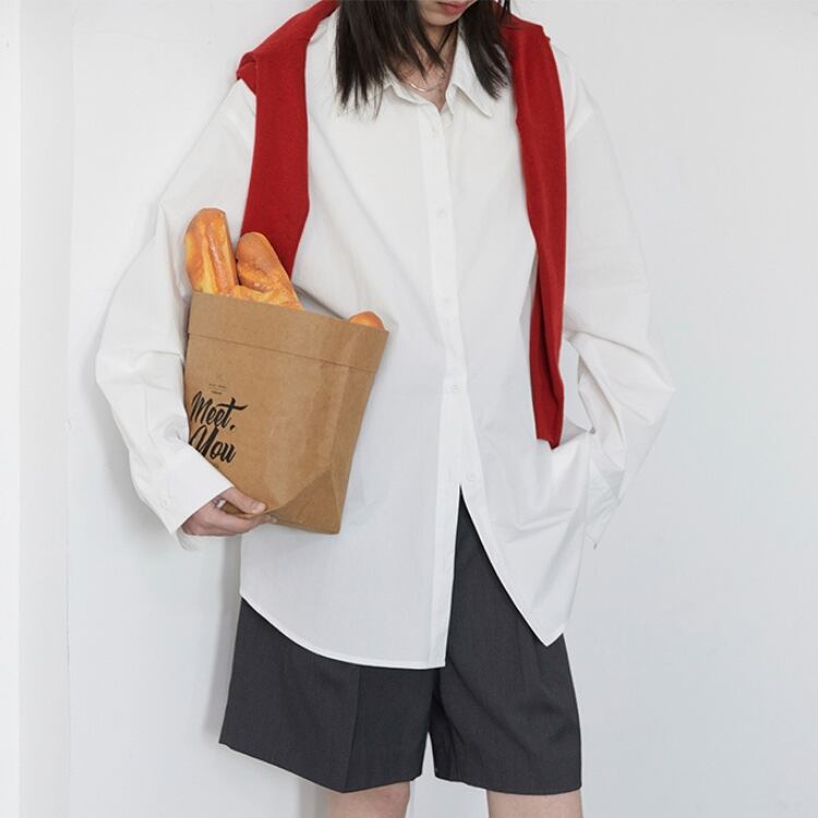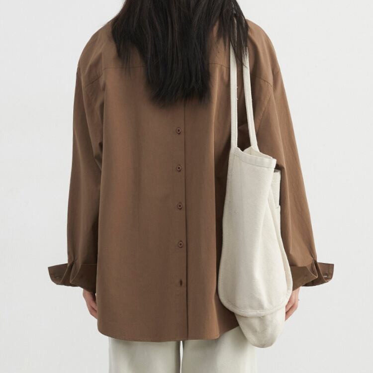 後ろ身部分は釦開きのデザインで、シンプルながらもおしゃれなアクセントを加えています。