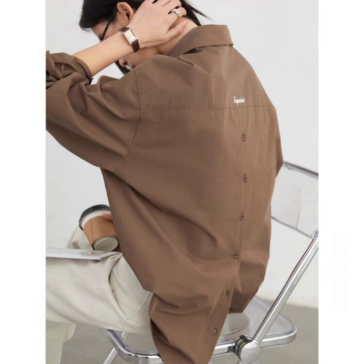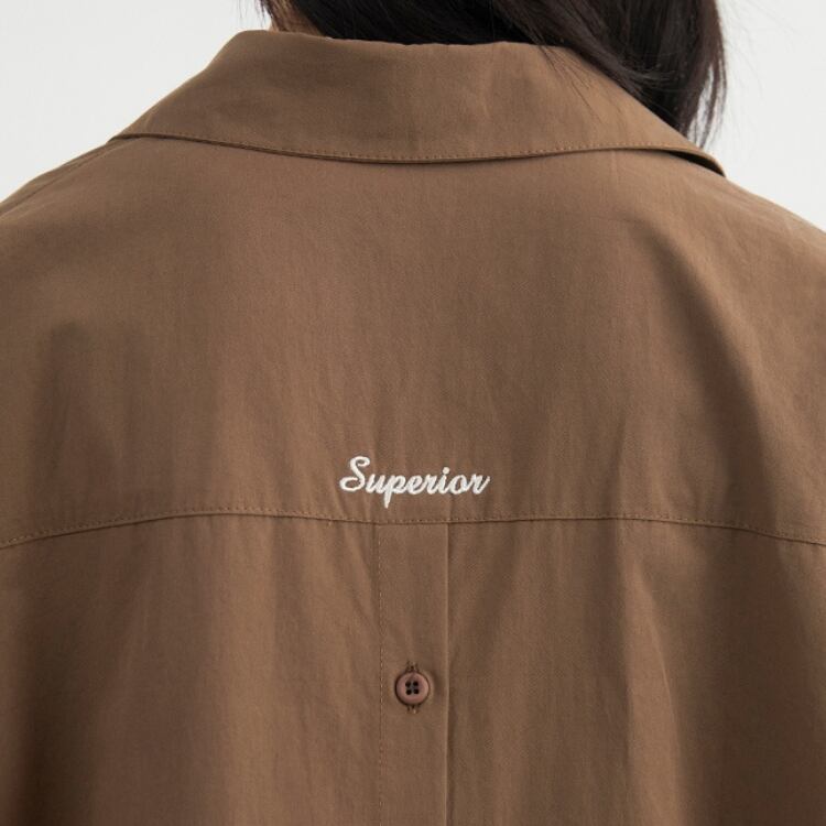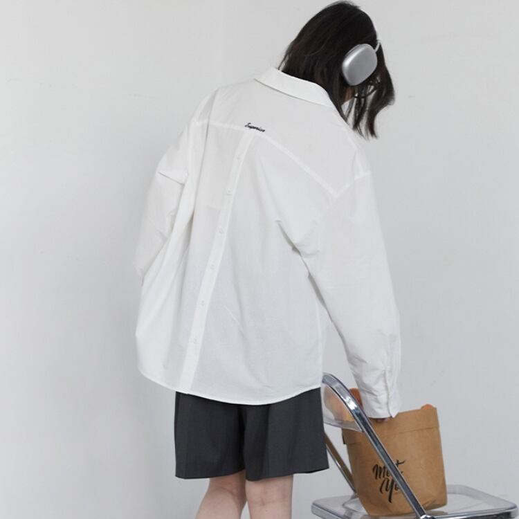 バック英字レタリング刺繍釦開き切り替えシャツ 0976