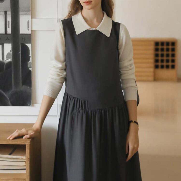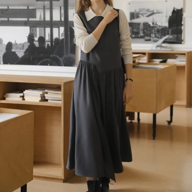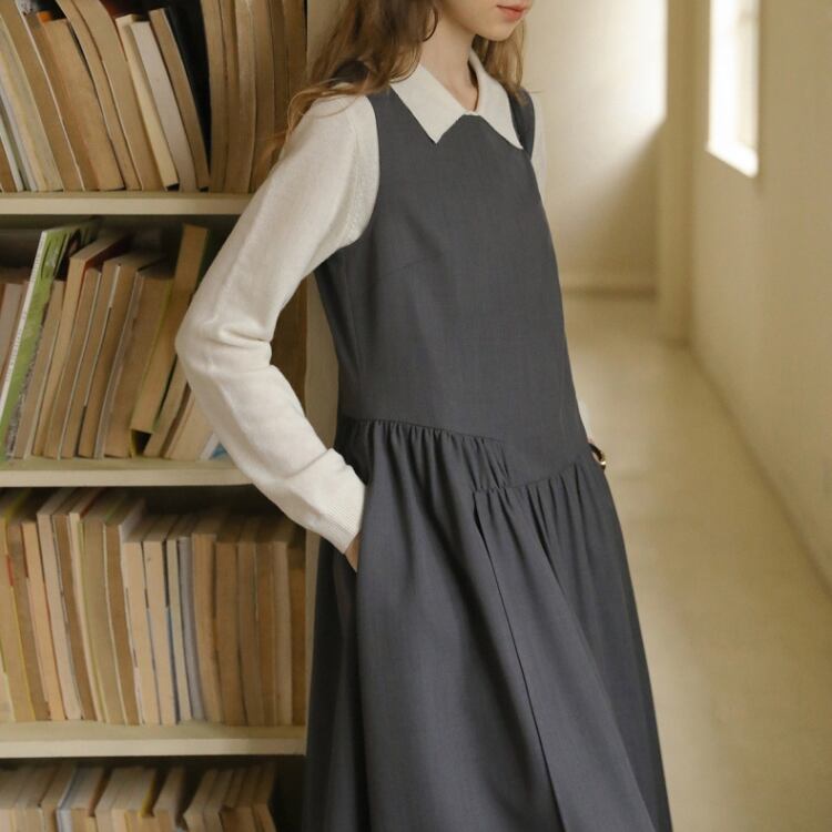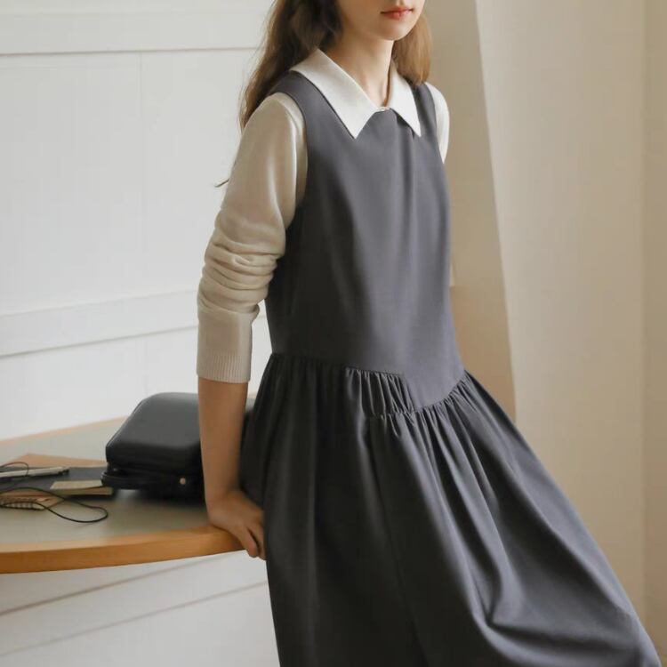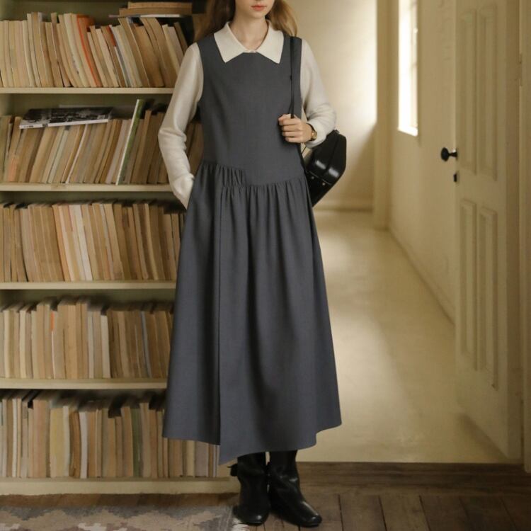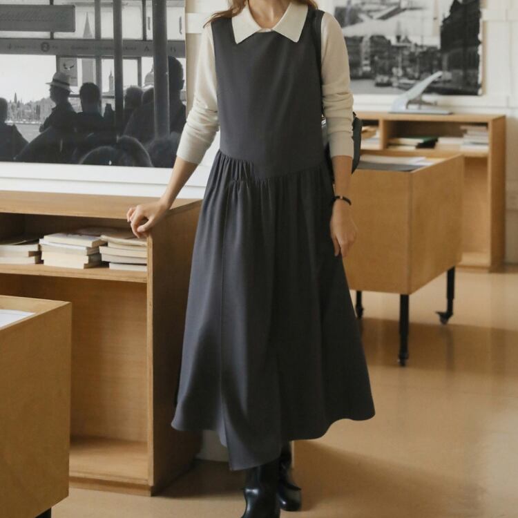 アシンメトリーギャザー切り替えジャンパースカート 0984