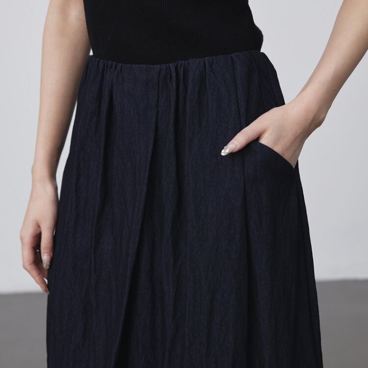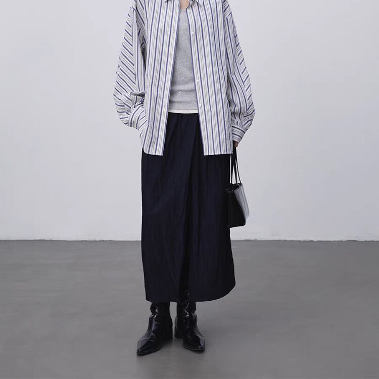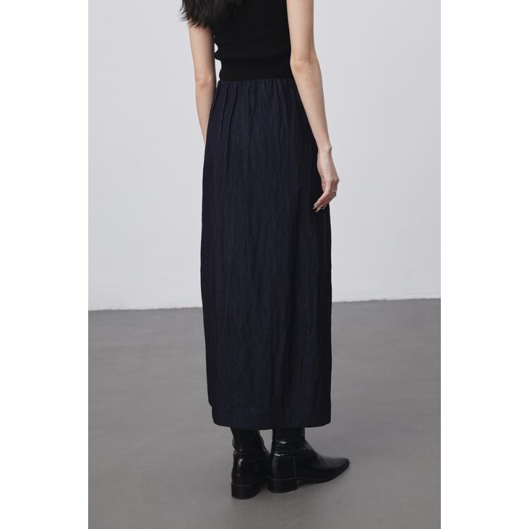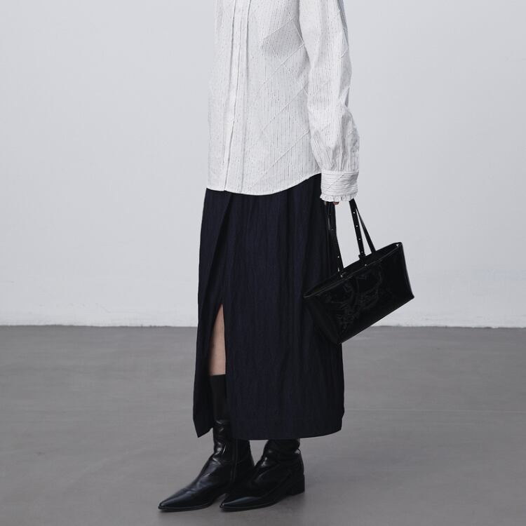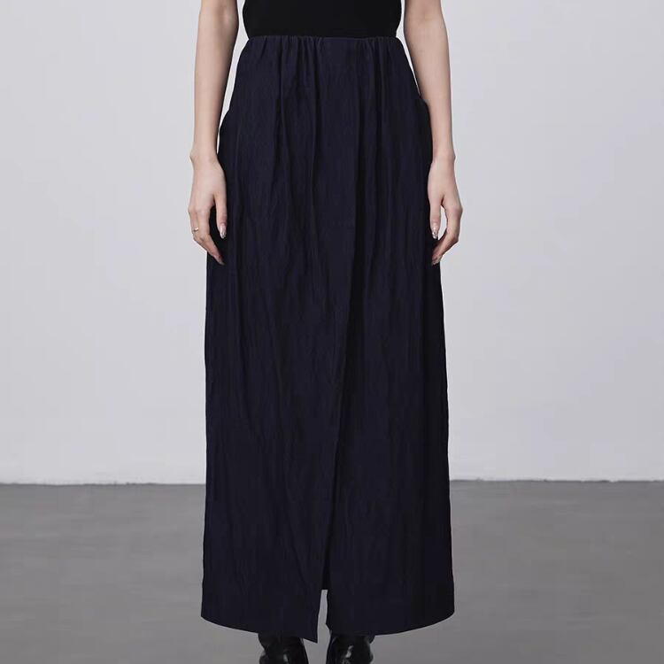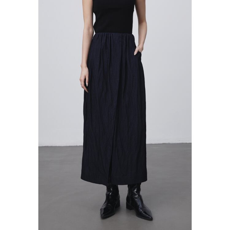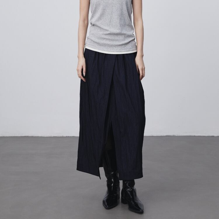 ワッシャー生地フロントラップスリット入りセミタイトスカート 0988