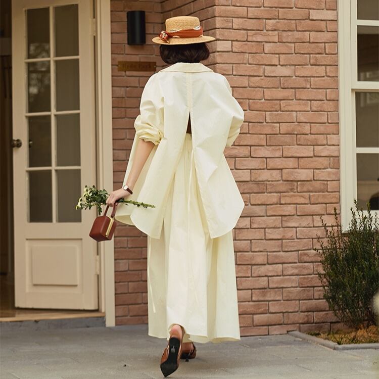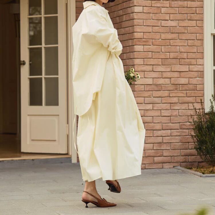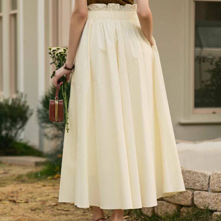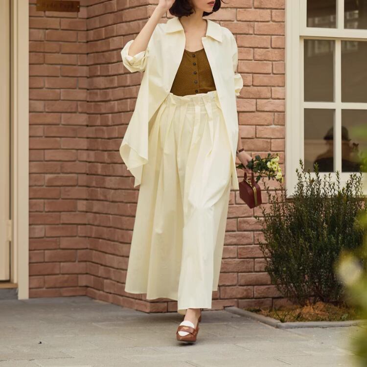 しっかりとした張りがある生地が、優雅な動きを実現し、女性らしい印象を与えます。