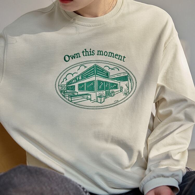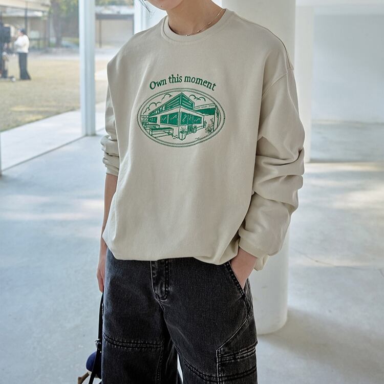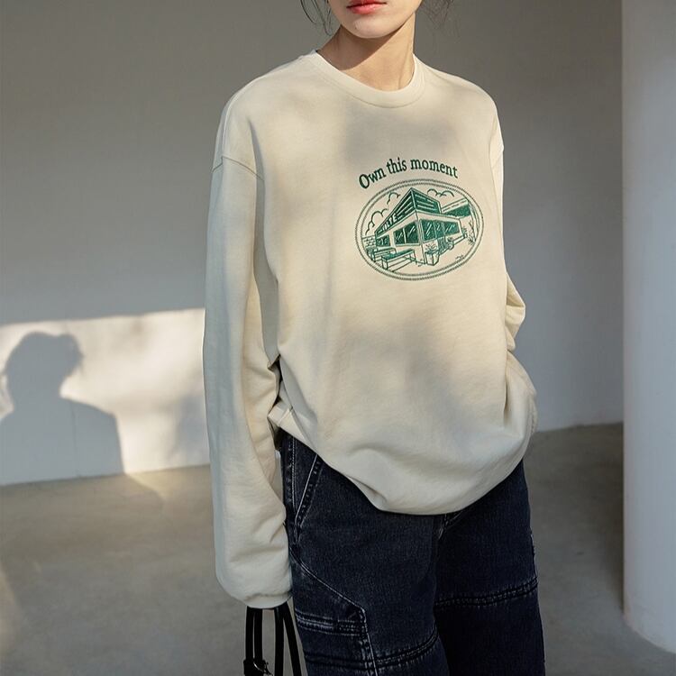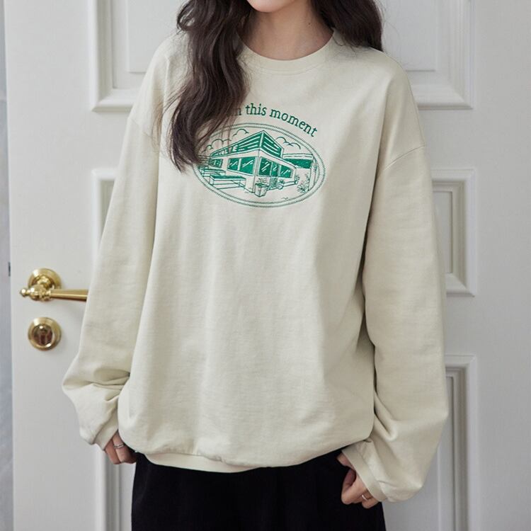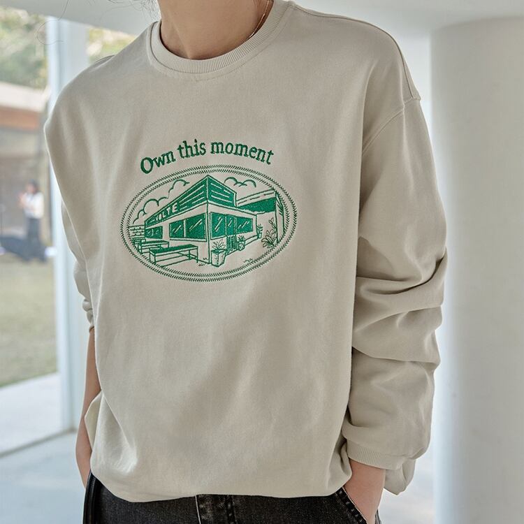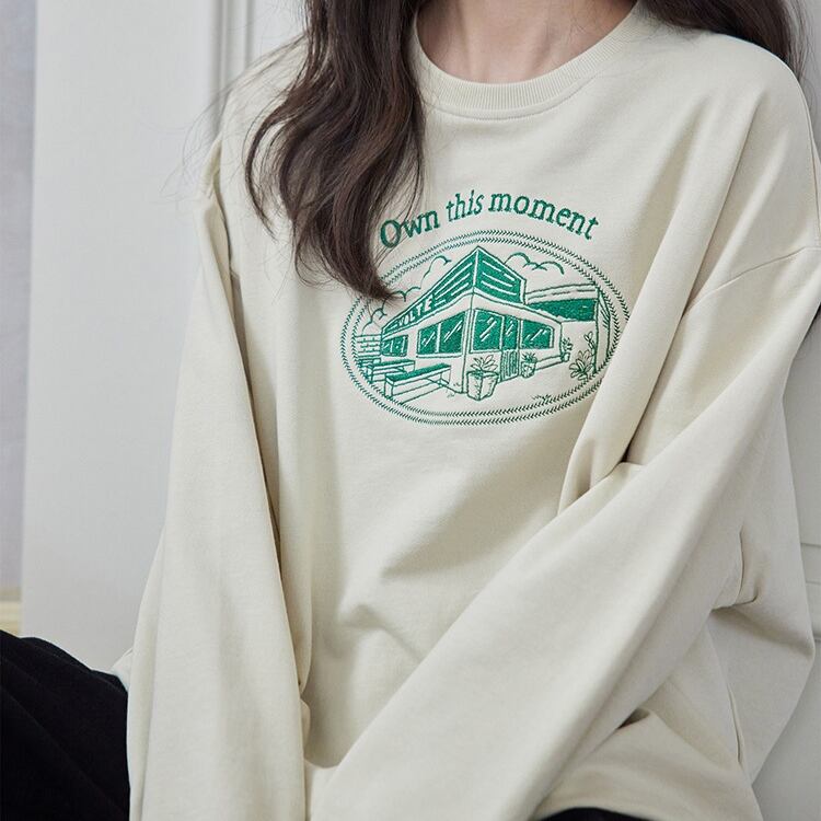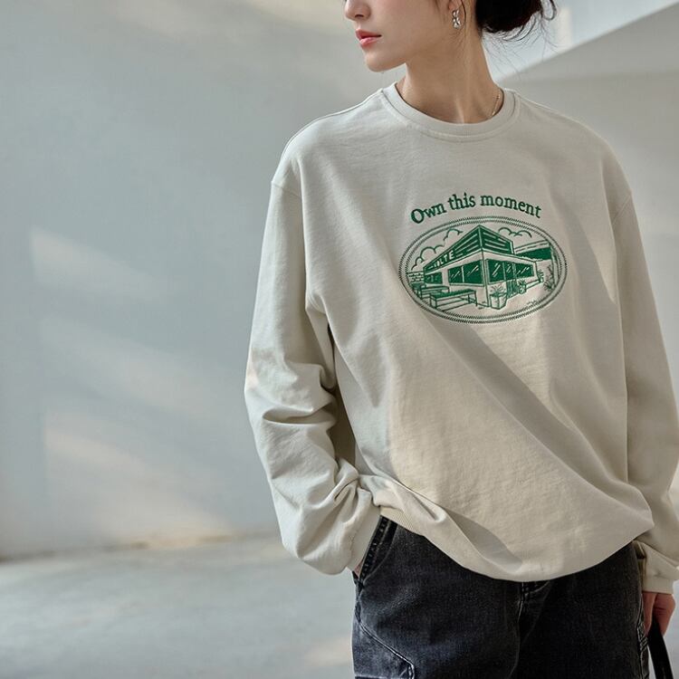 英字レタリング&イラスト刺繍長袖Tシャツ 0997