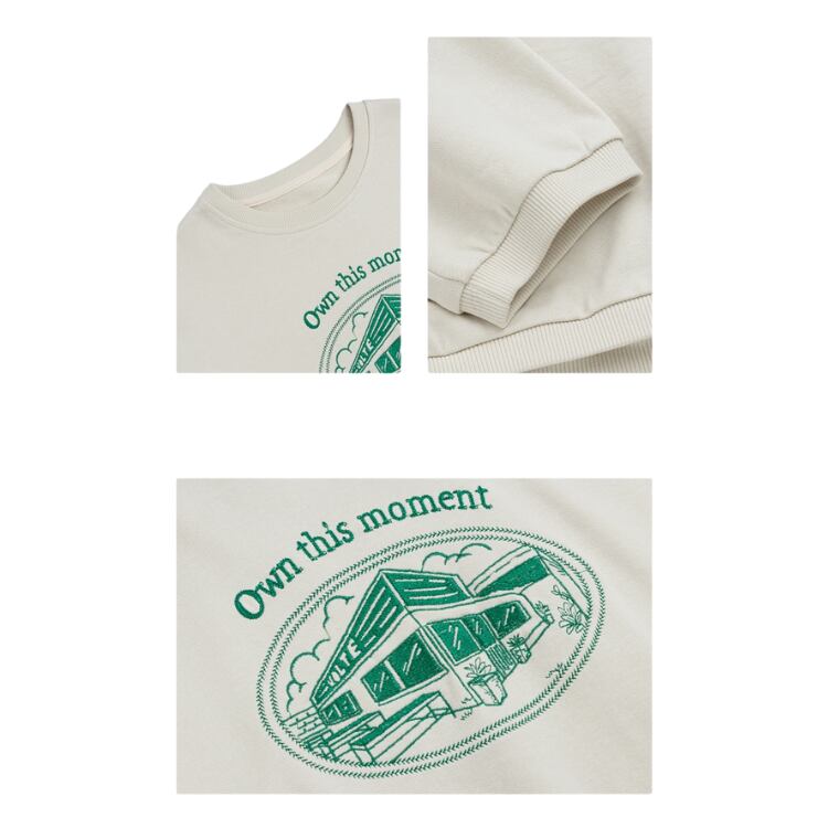 フロントには英字レタリングとイラストの刺繍が施されており、さりげないアクセントに!