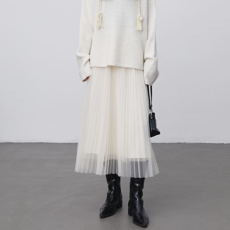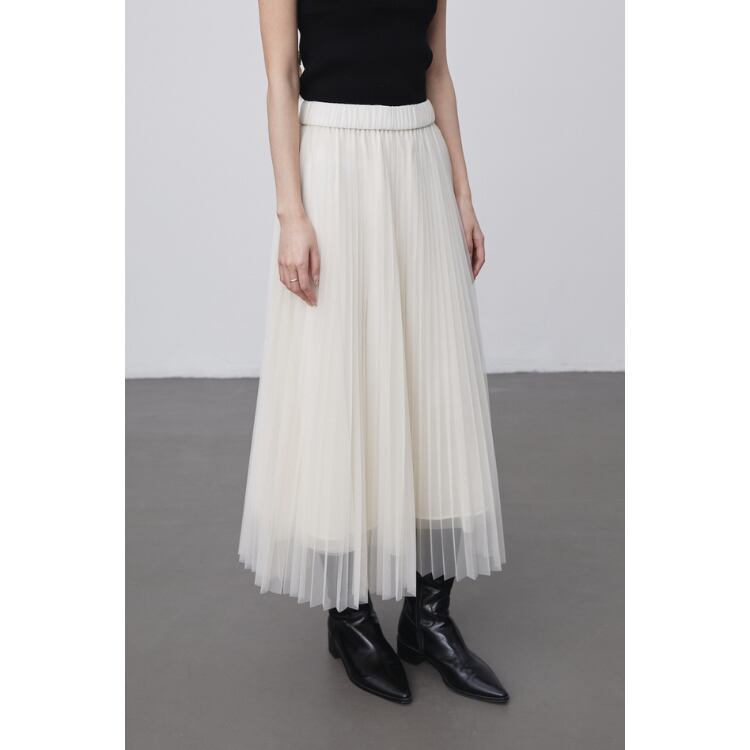 チュール生地を使用したアコーディオンプリーツスカートです。