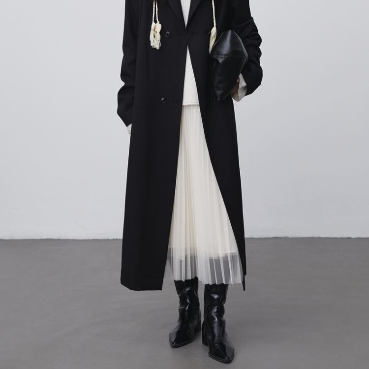 シックで上品な雰囲気を演出しつつ、エレガントにもカジュアルにも幅広く着回せる一着です。