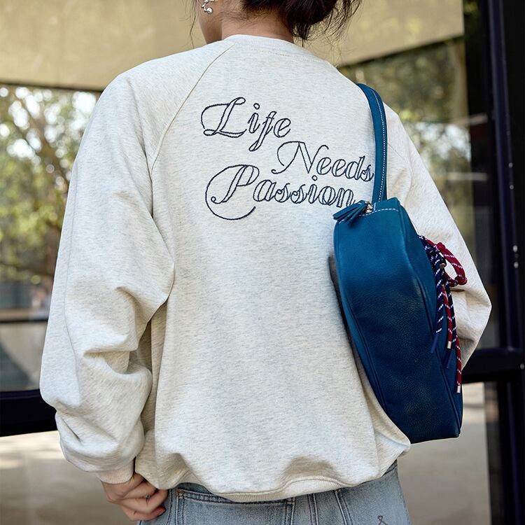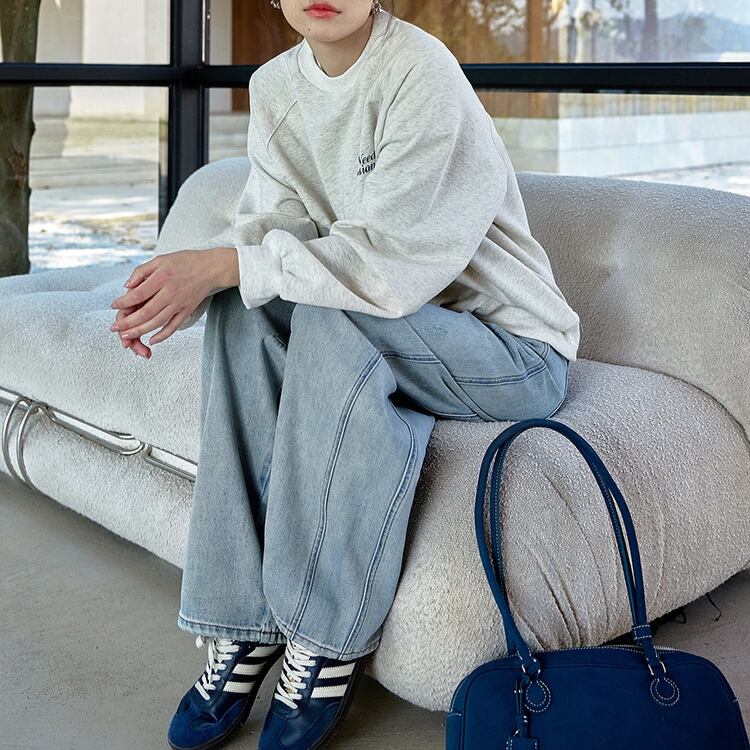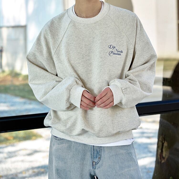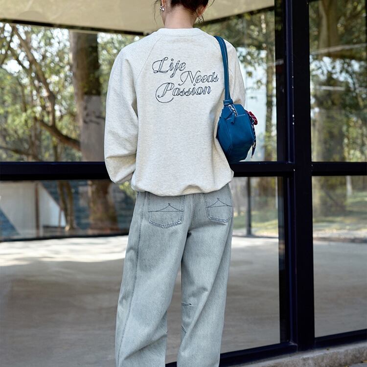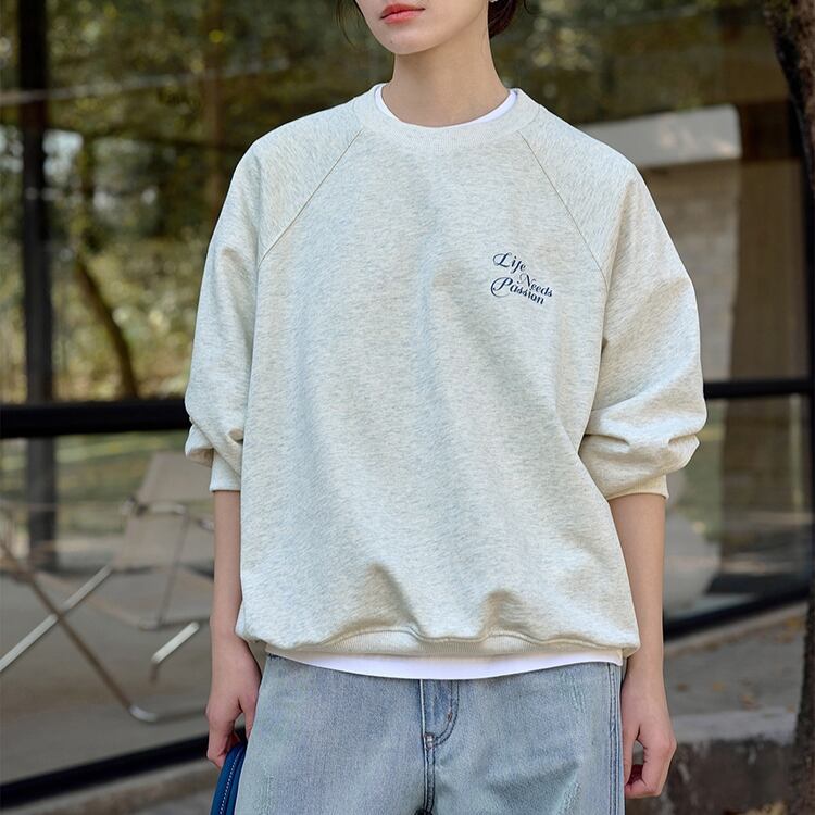 バック英字レタリング刺繍フロントワンポイントスウェット 1017