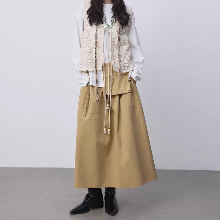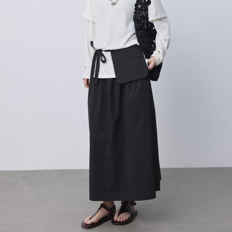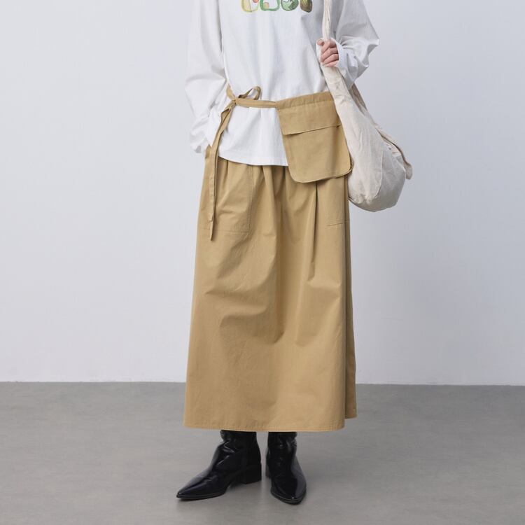 着脱可能フラップポケット付きギャザーフレアースカート 1030
