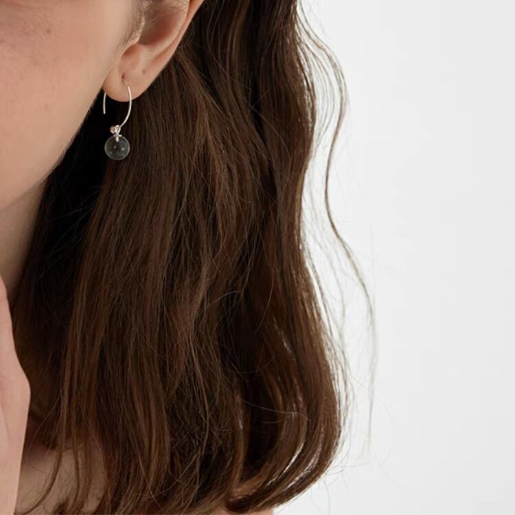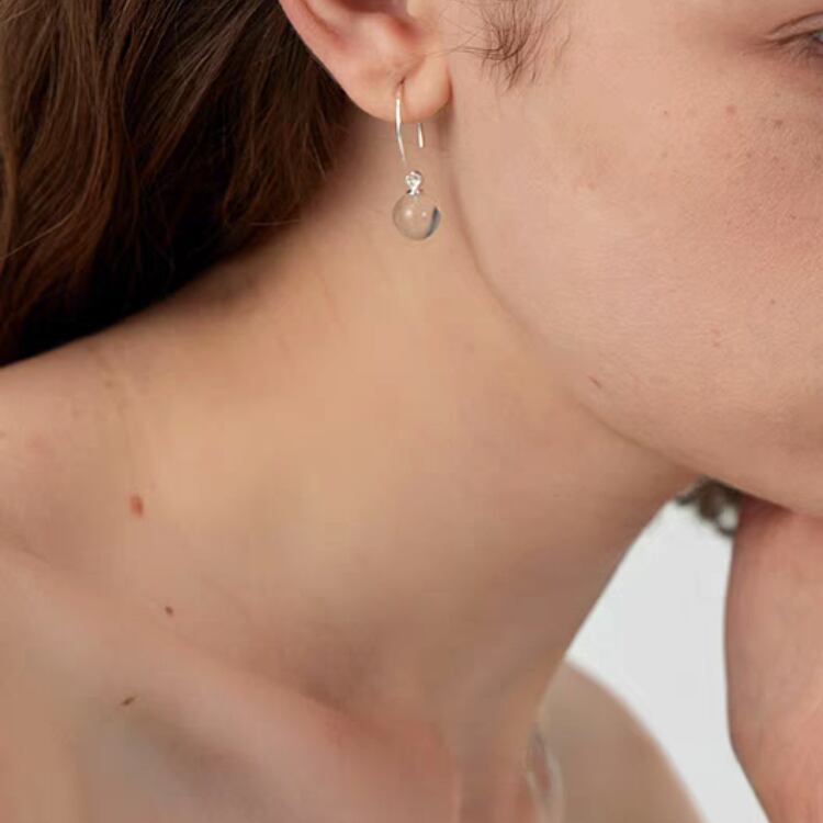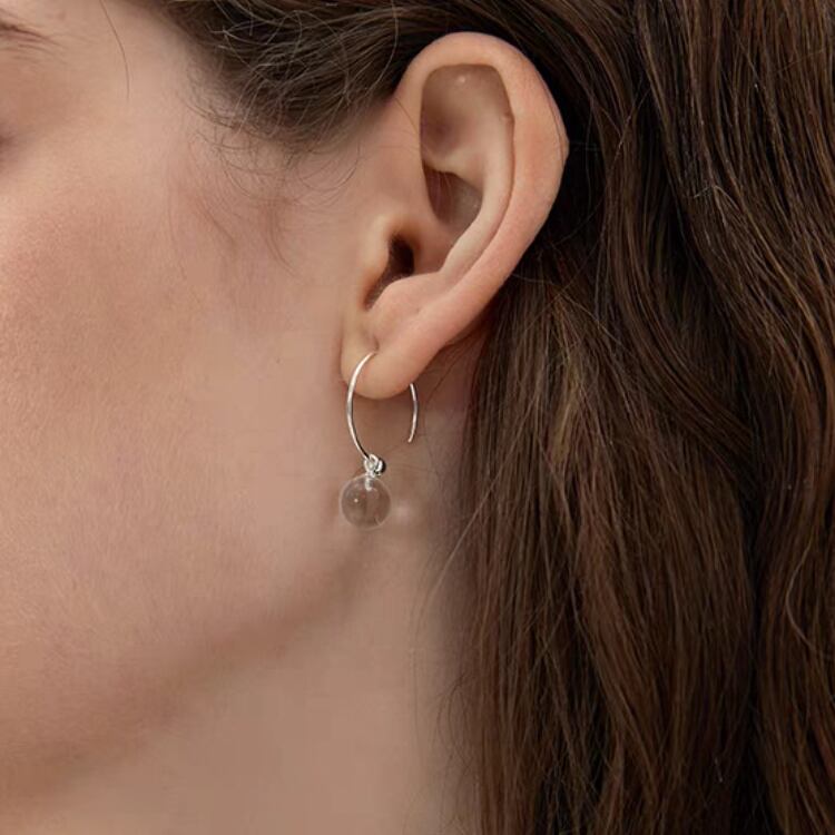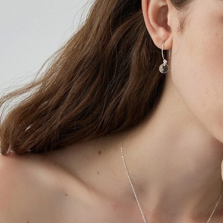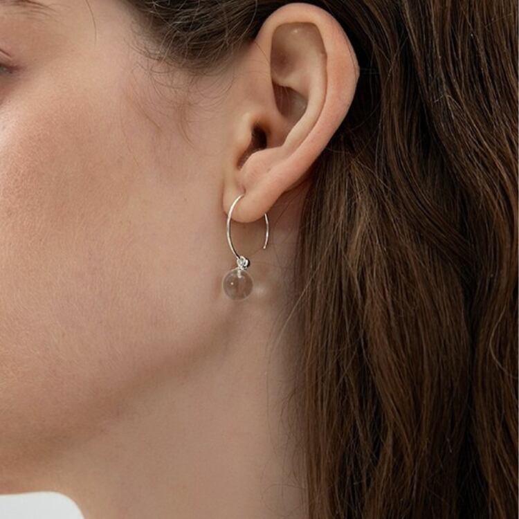 存在感のあるガラスビーズがクリアーに映えるため、シンプルながらも目を引くアクセサリーです。