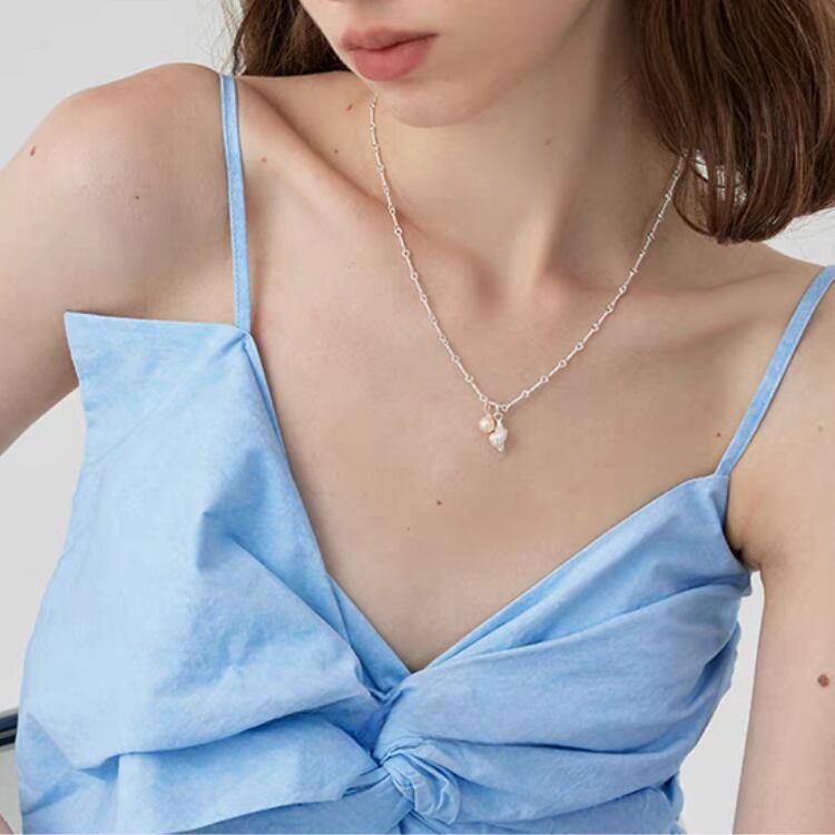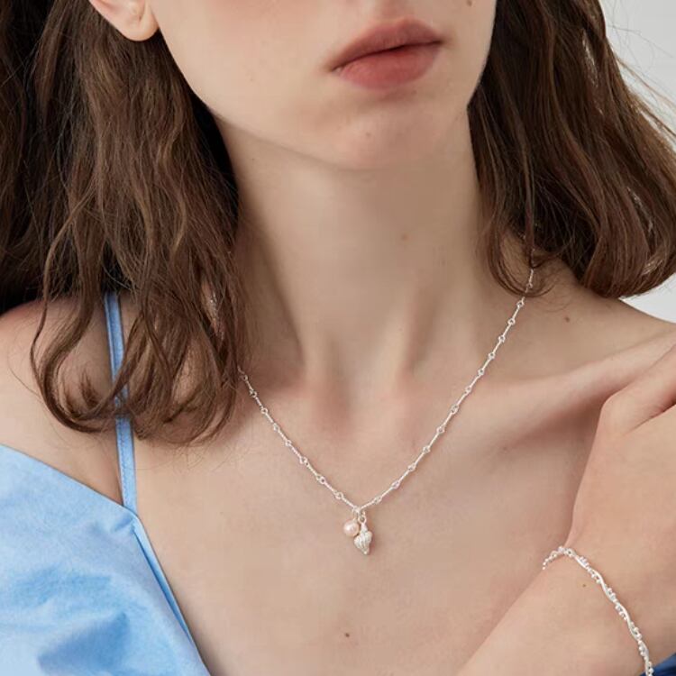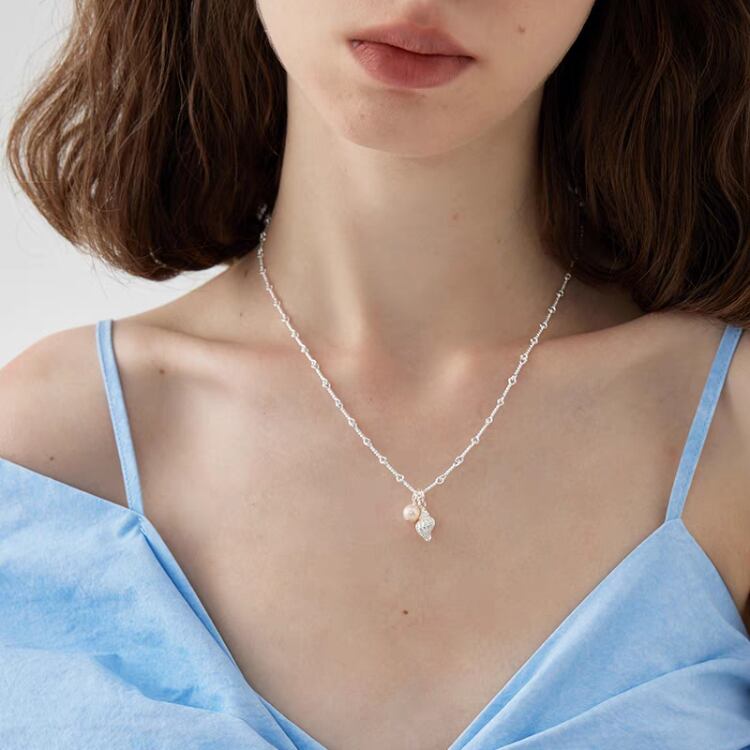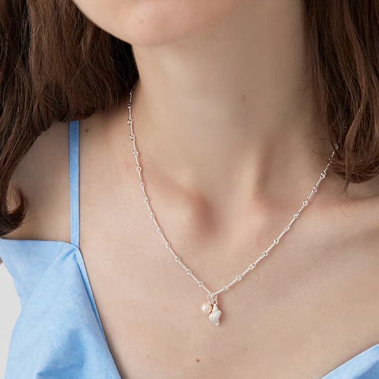 華奢なチェーンに小さな淡水パールと可愛らしい巻貝モチーフをあしらったペンダントネックレスは、夏を盛り上げるアイテムです。
