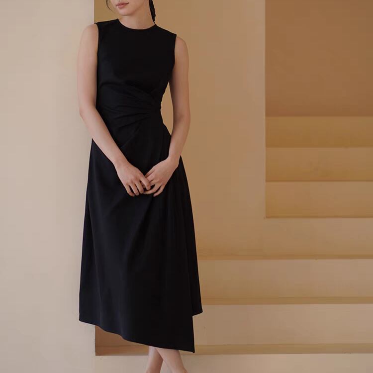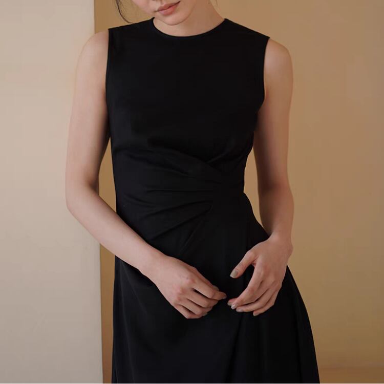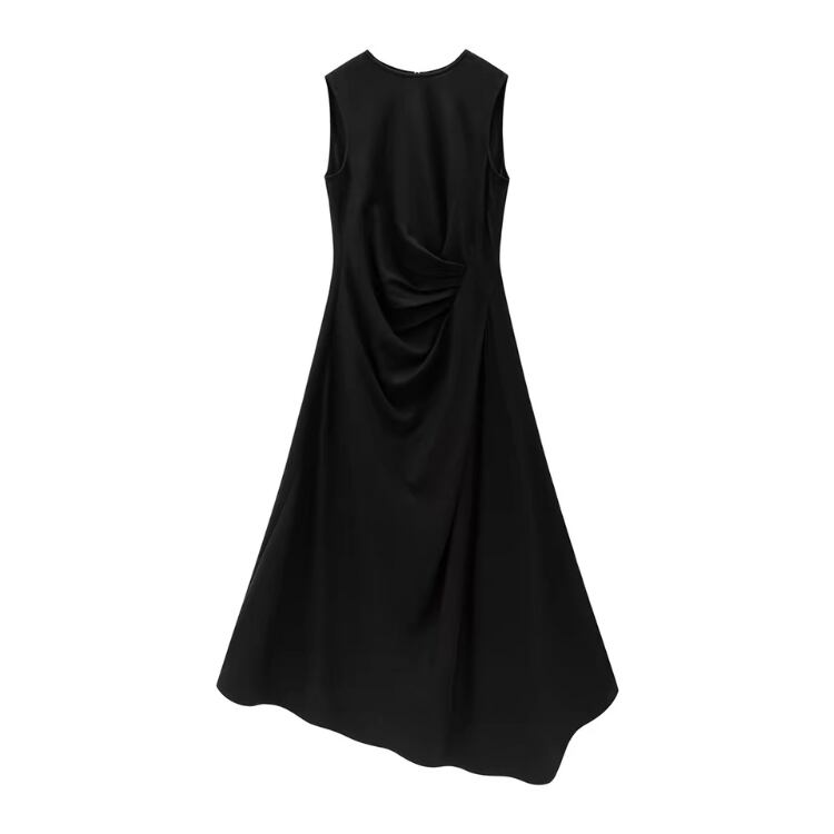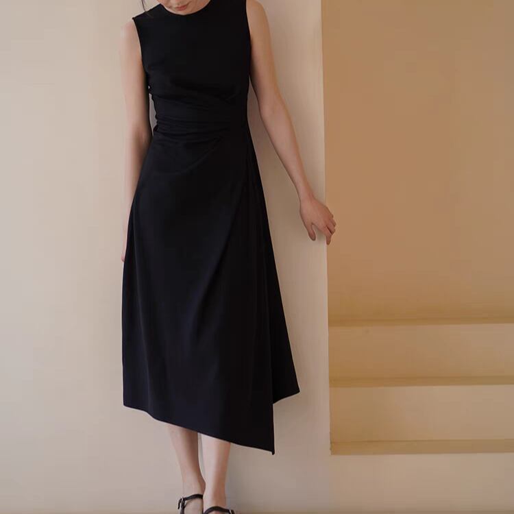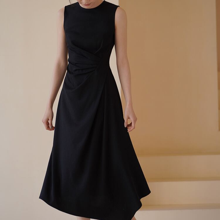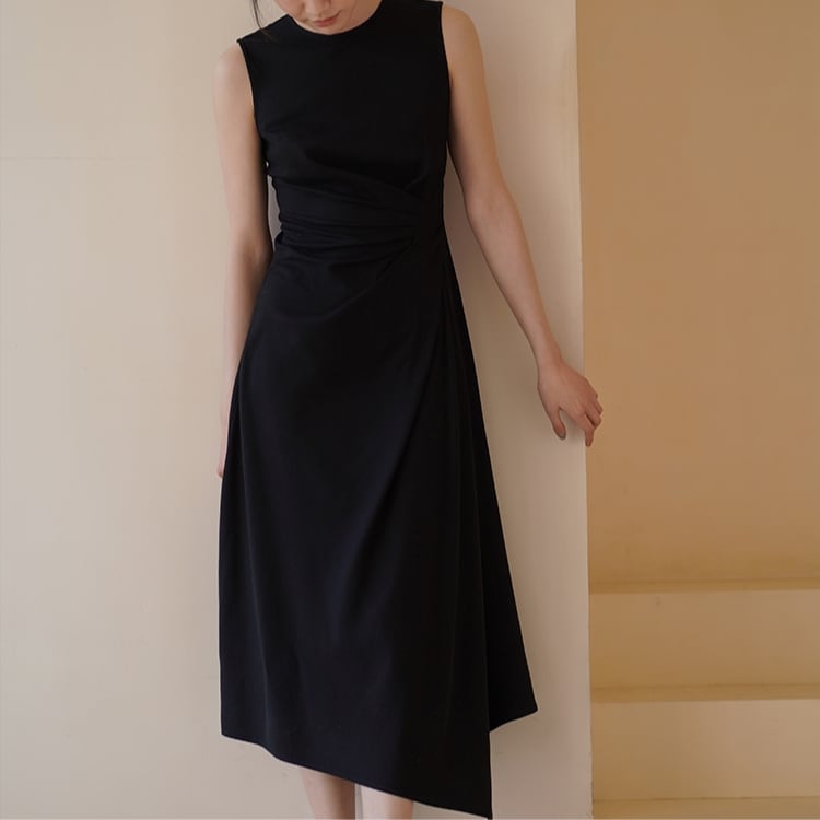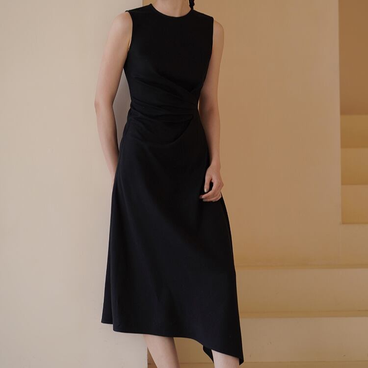 アシンメトリーウエストドレープイレギュラーヘムノースリワンピース 1252