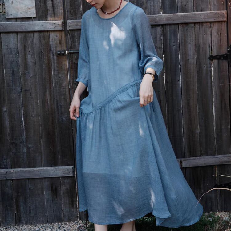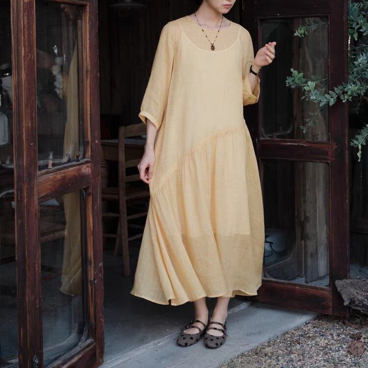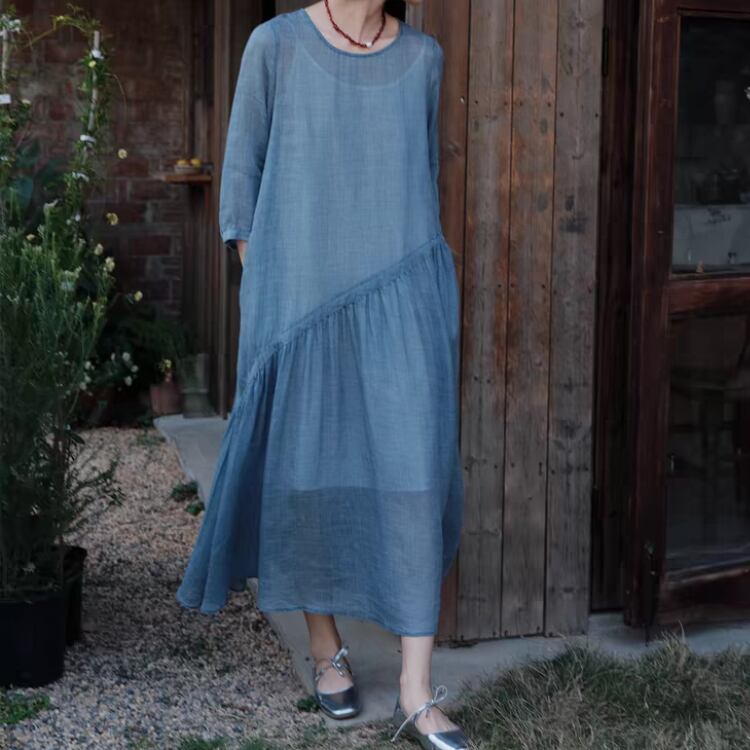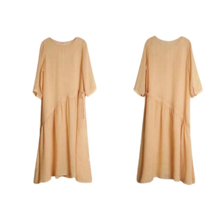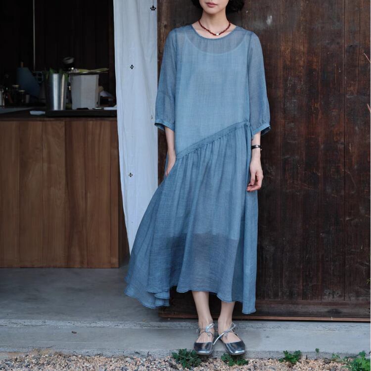 アシンメトリー斜めギャザー切り替えシアーワンピース 1066