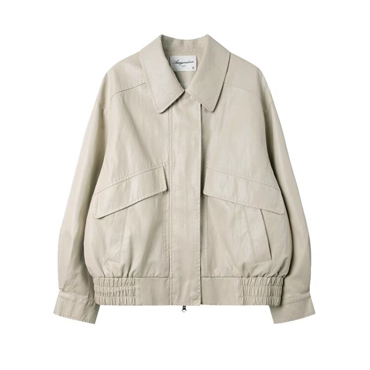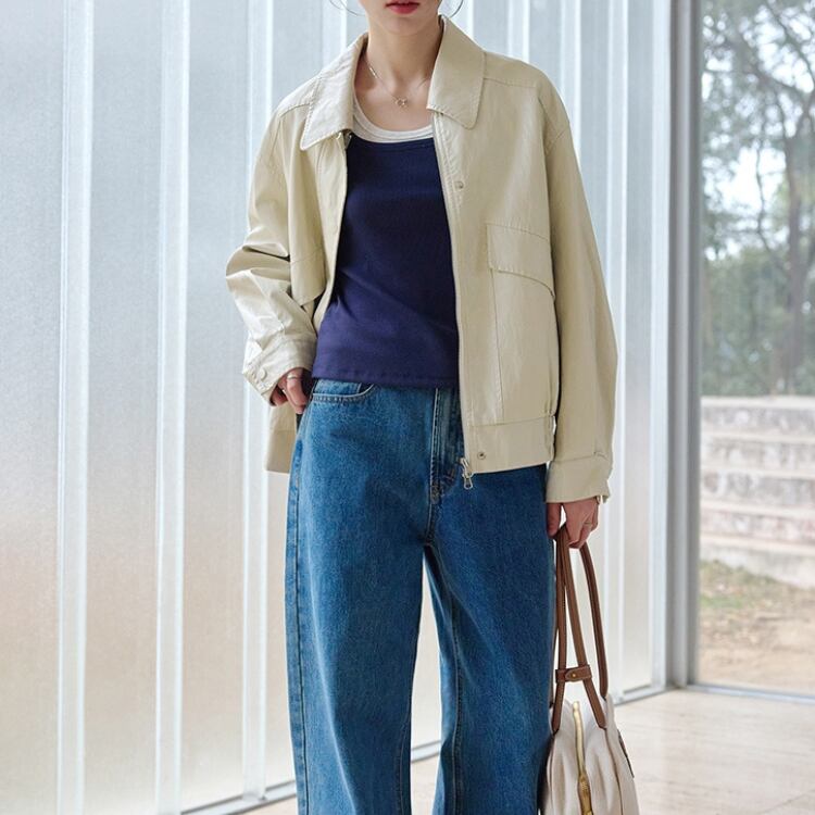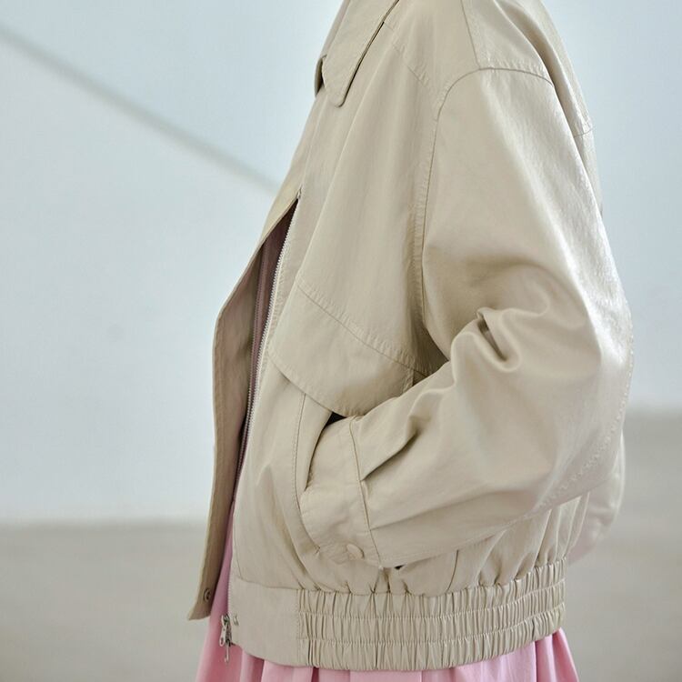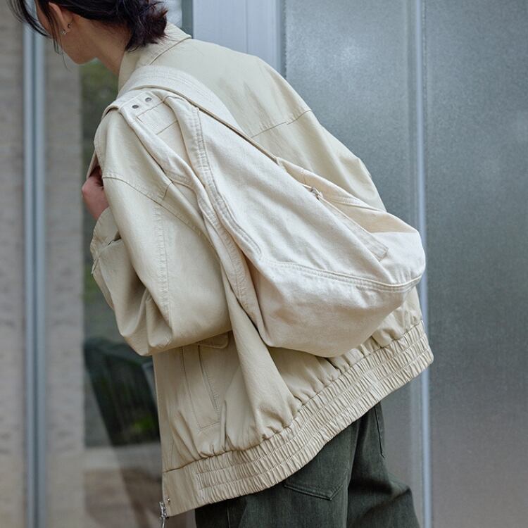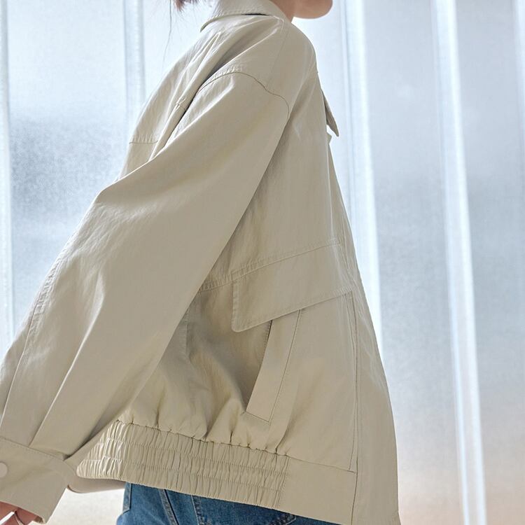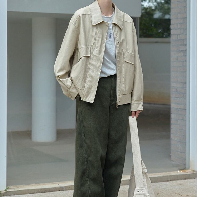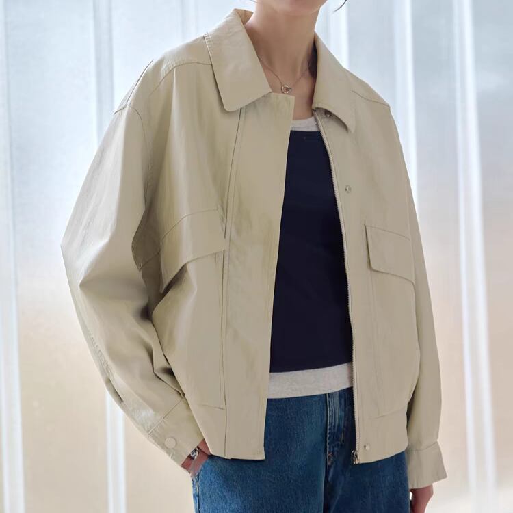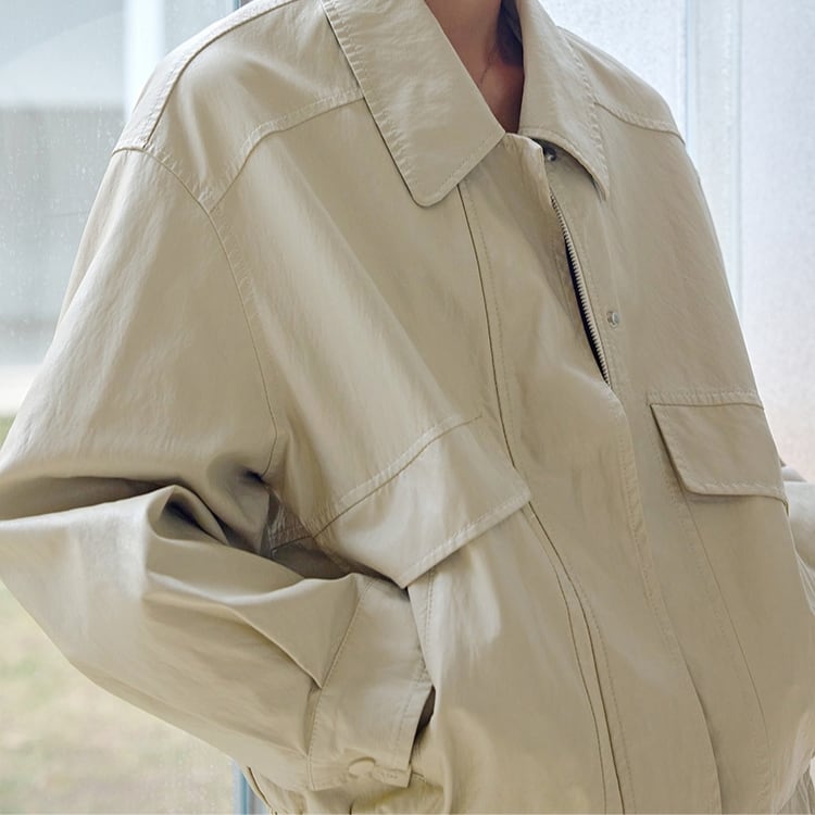 フロントフラップデザインステンカラージップアップブルゾン 1065