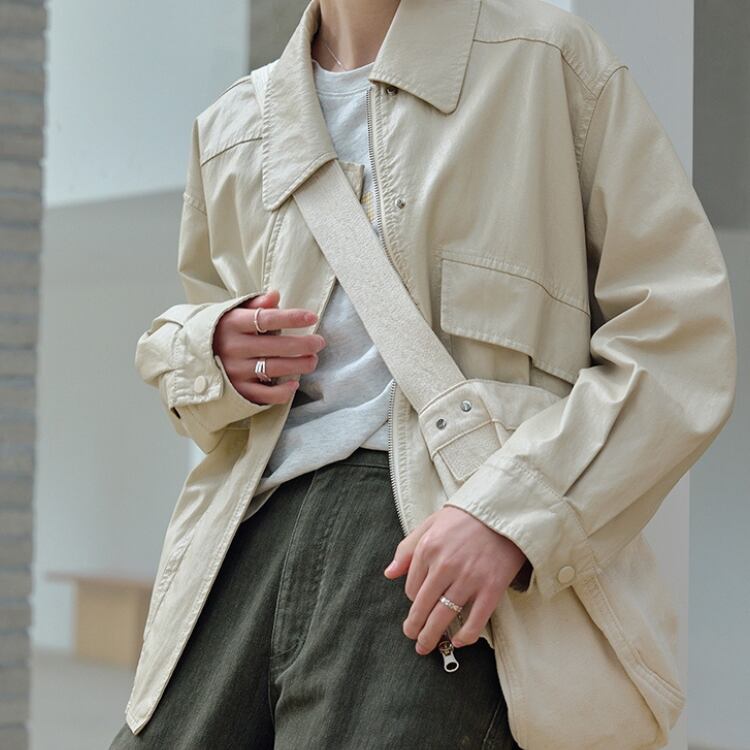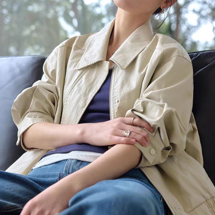 ステンカラーの落ち着いた雰囲気が、どんなシーンでも格好良く決まります。
