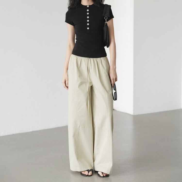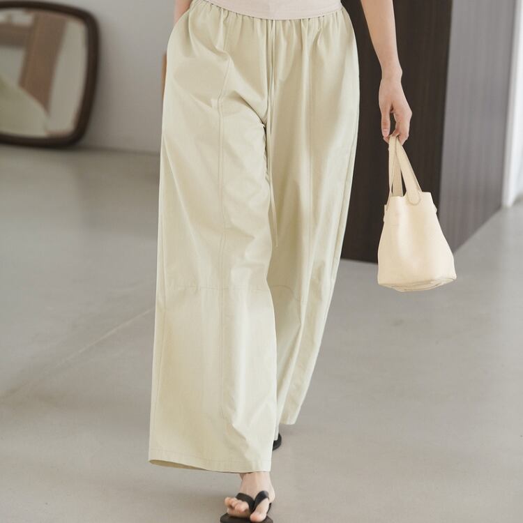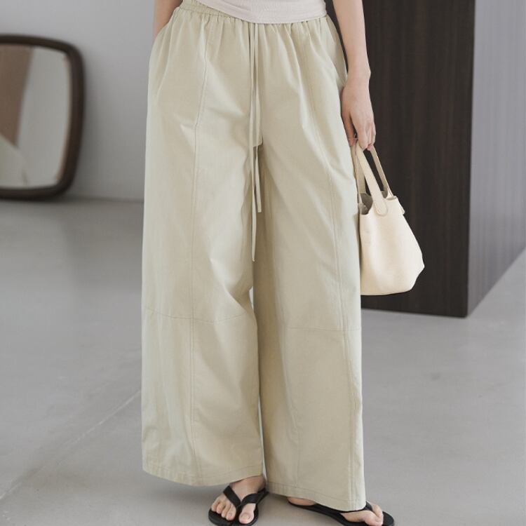幅のあるワイドパンツは、リラックスした穿き心地を実現し、暑い夏の日でも涼しく過ごせます。