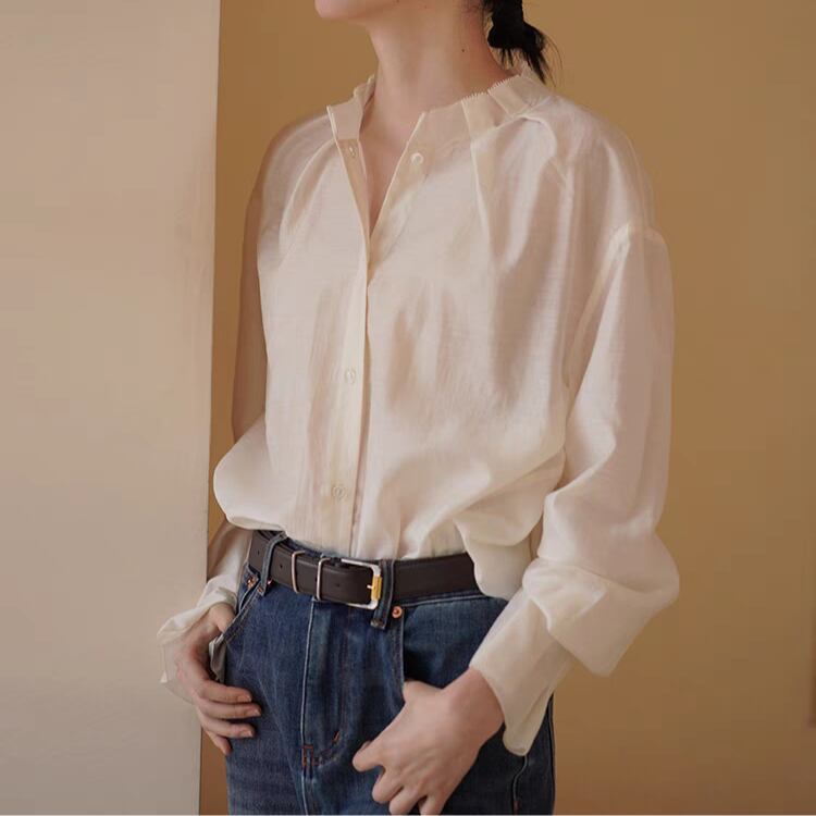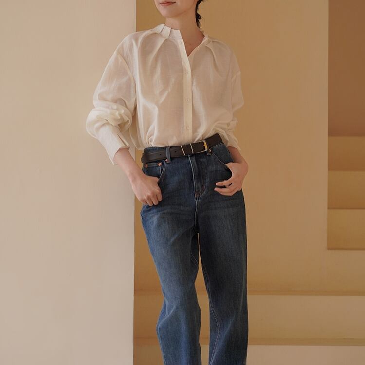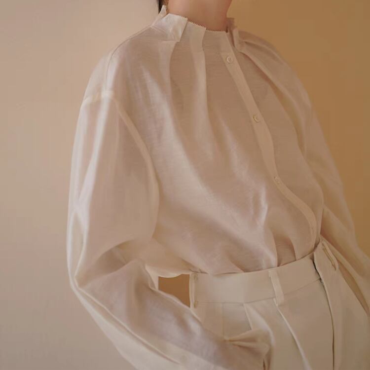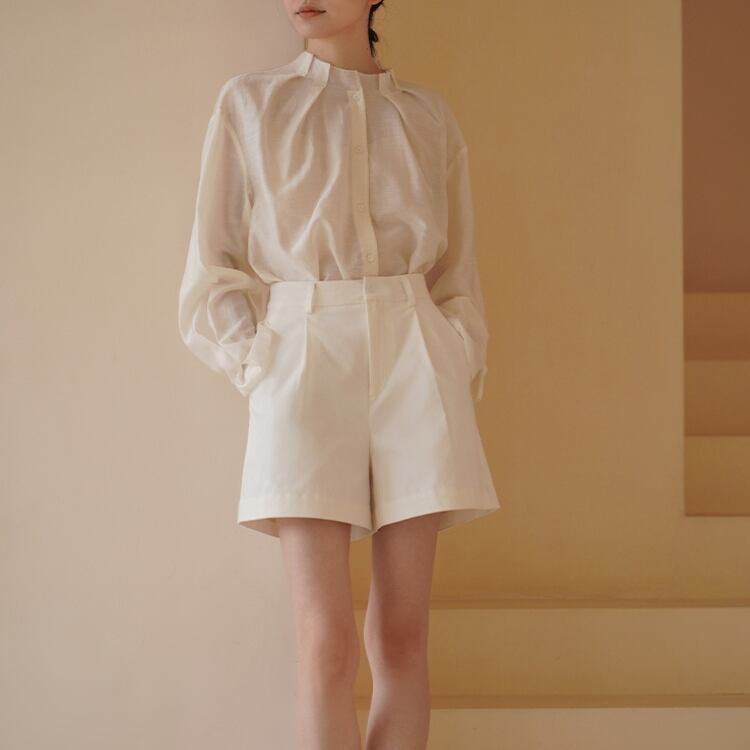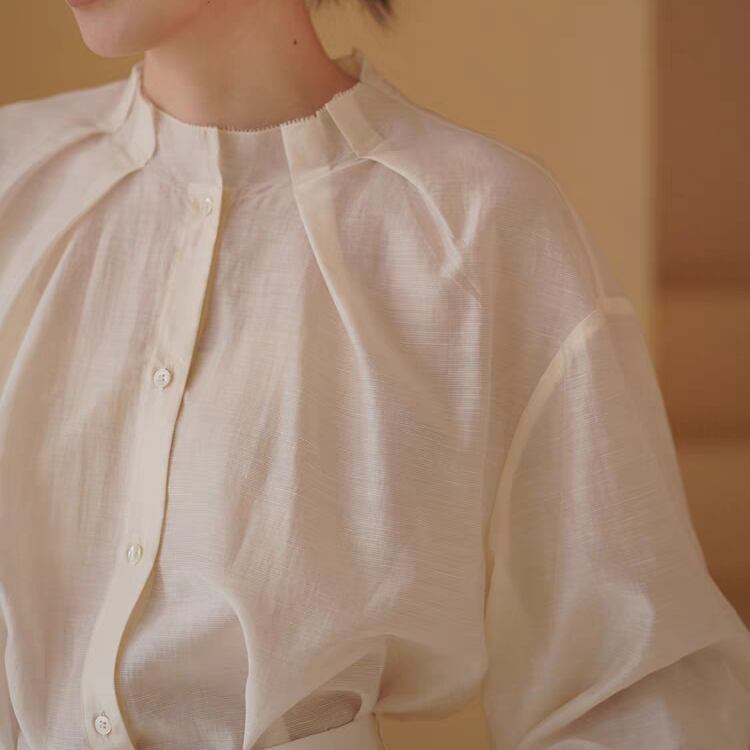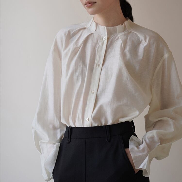 タック入りスタンドネックシアーブラウス 1127