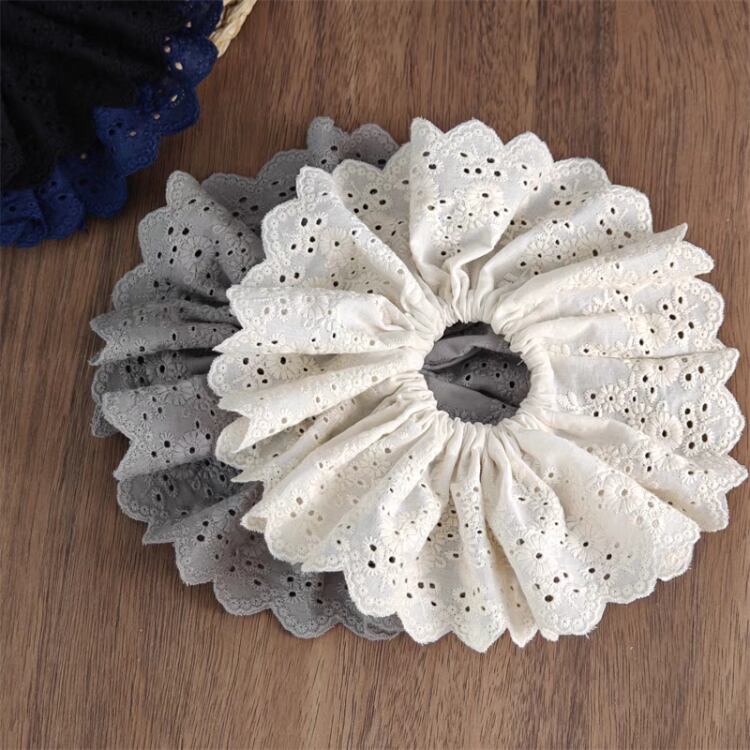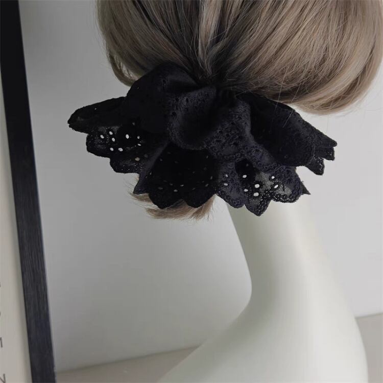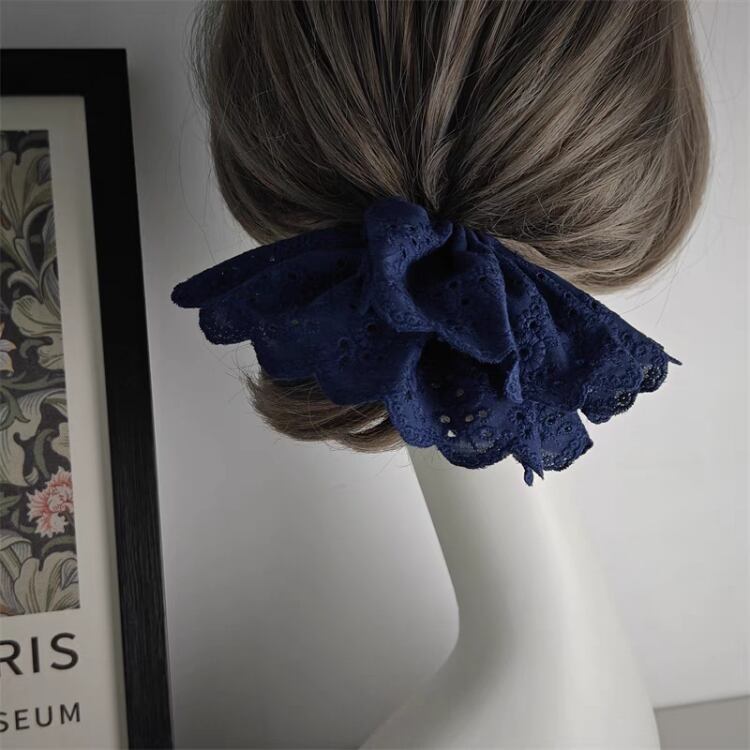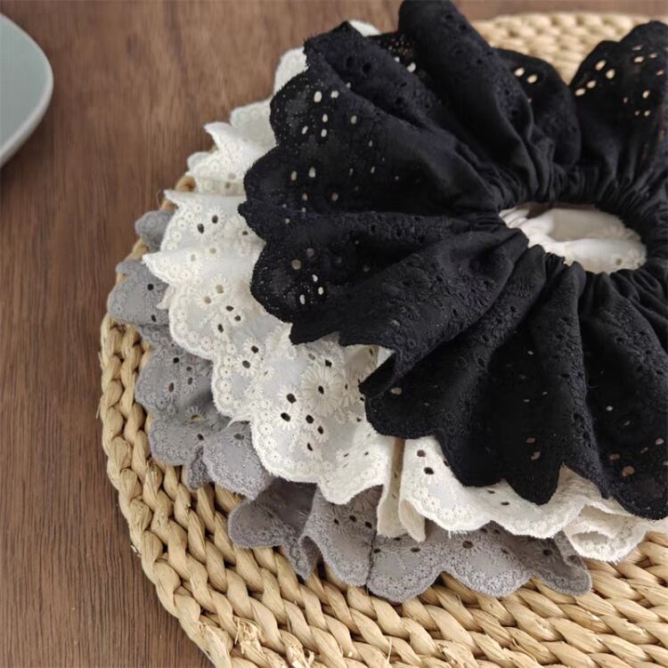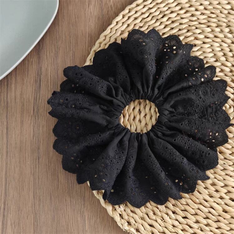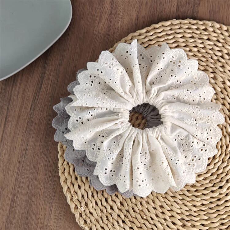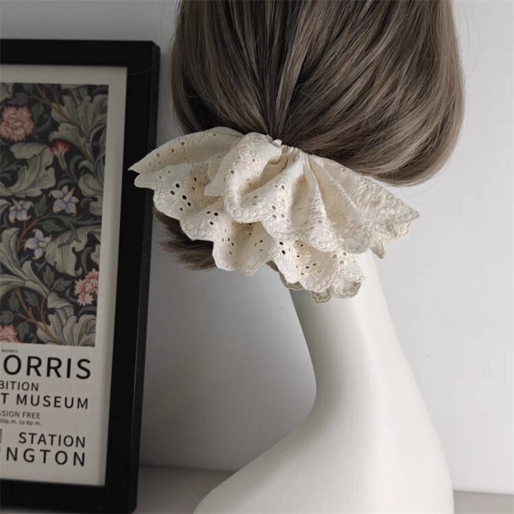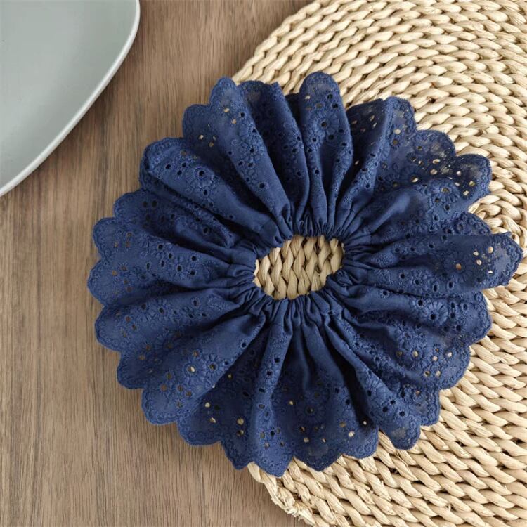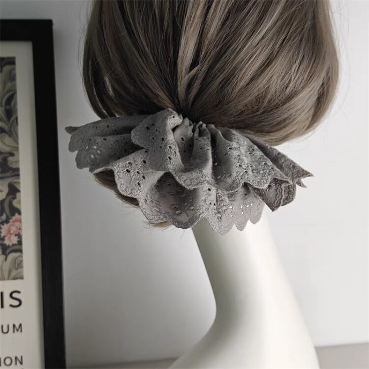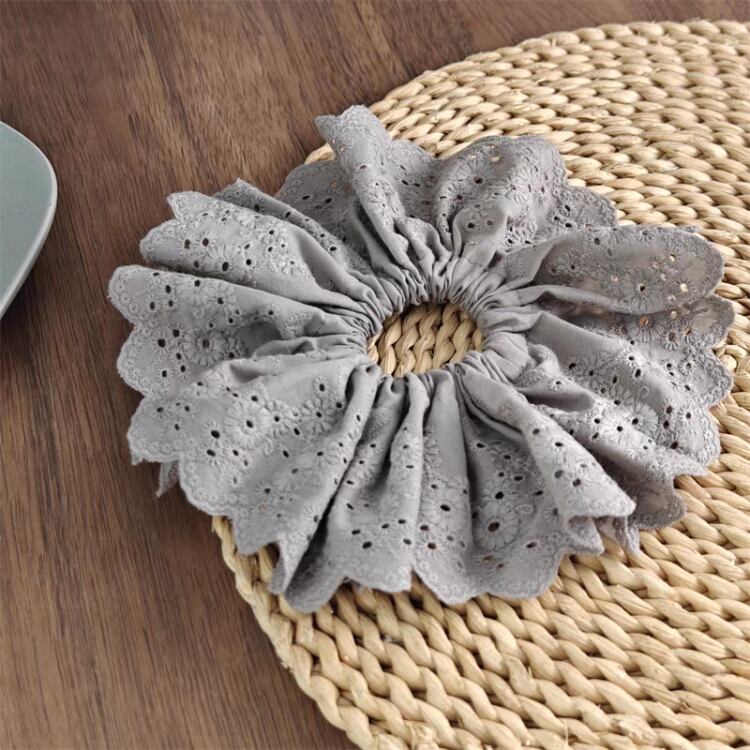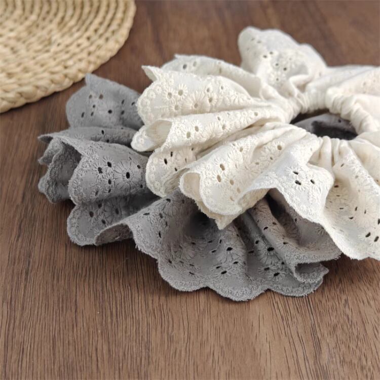 ナチュラルな印象を与えるエンブロイダリー生地を使用したシュシュです。
