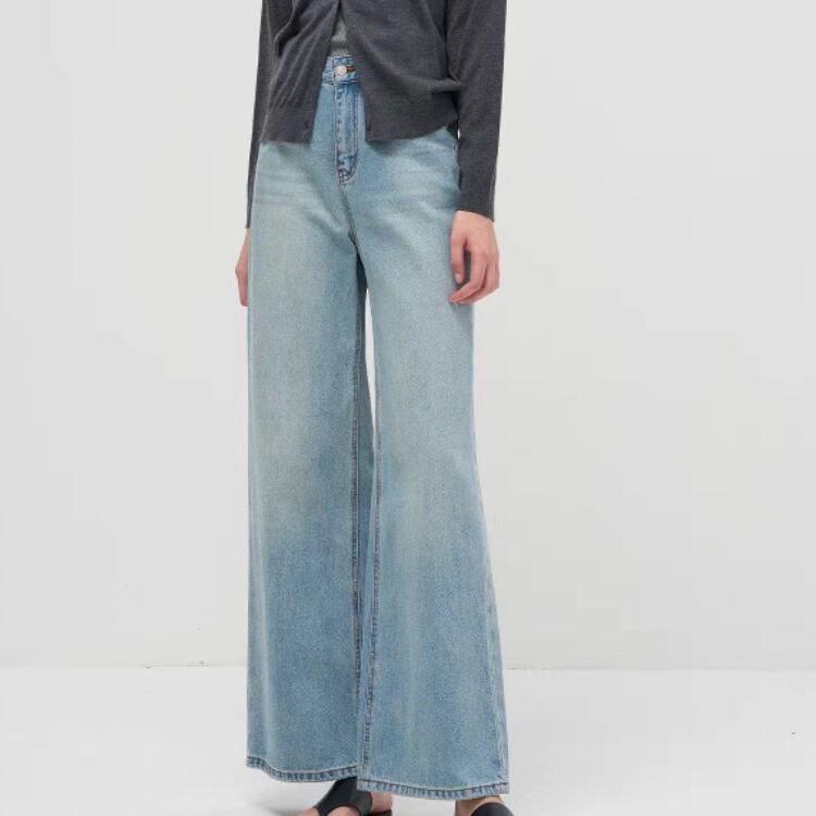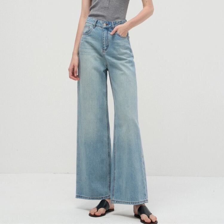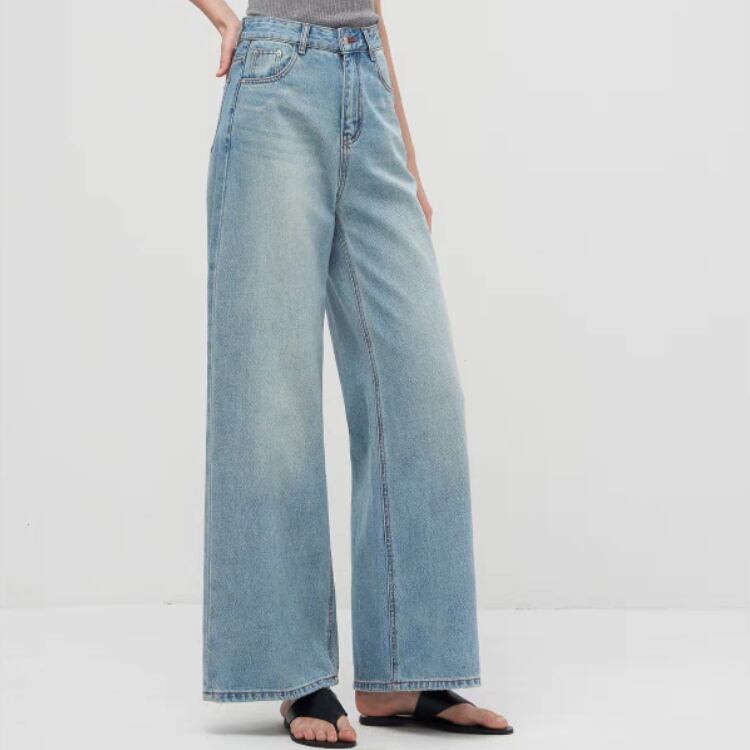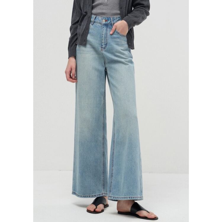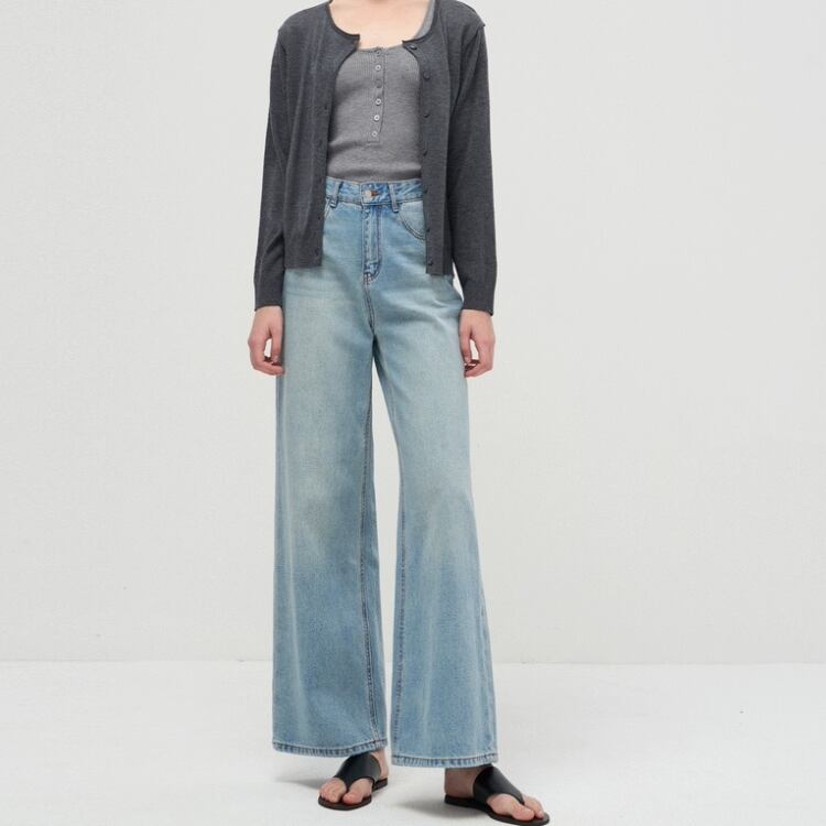 ユーズド風ウォッシュドデニムワイドパンツ 1092