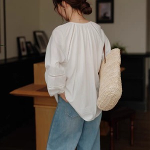 はしごレースを挟んだラグランスリーブは、ゆったりとしたシルエットを作り出し、心地よい着心地を実現しています。