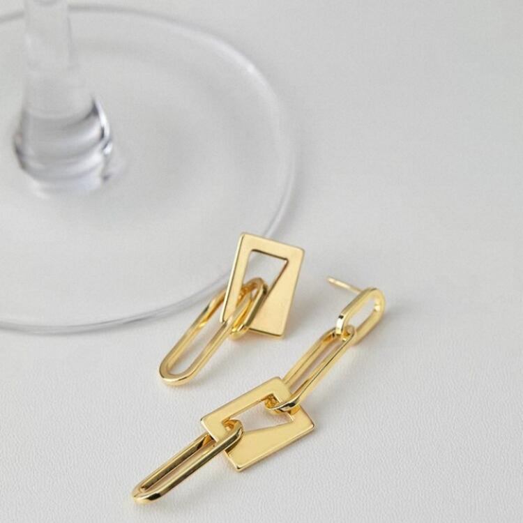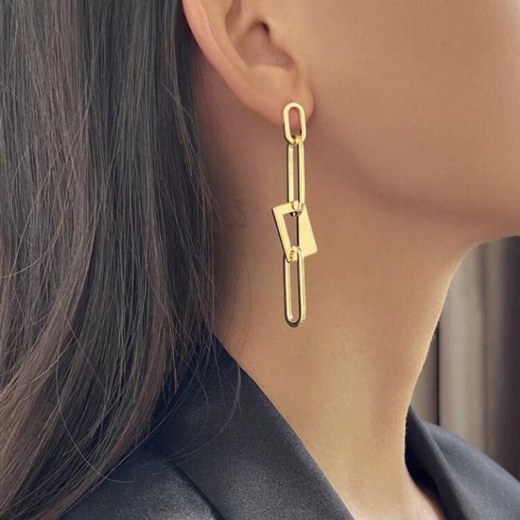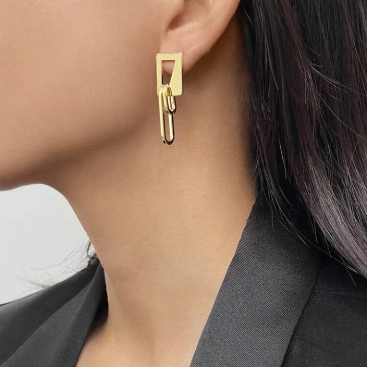ランダム楕円&長方形パーツアシンメトリーピアス 1112
