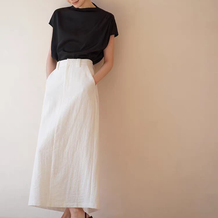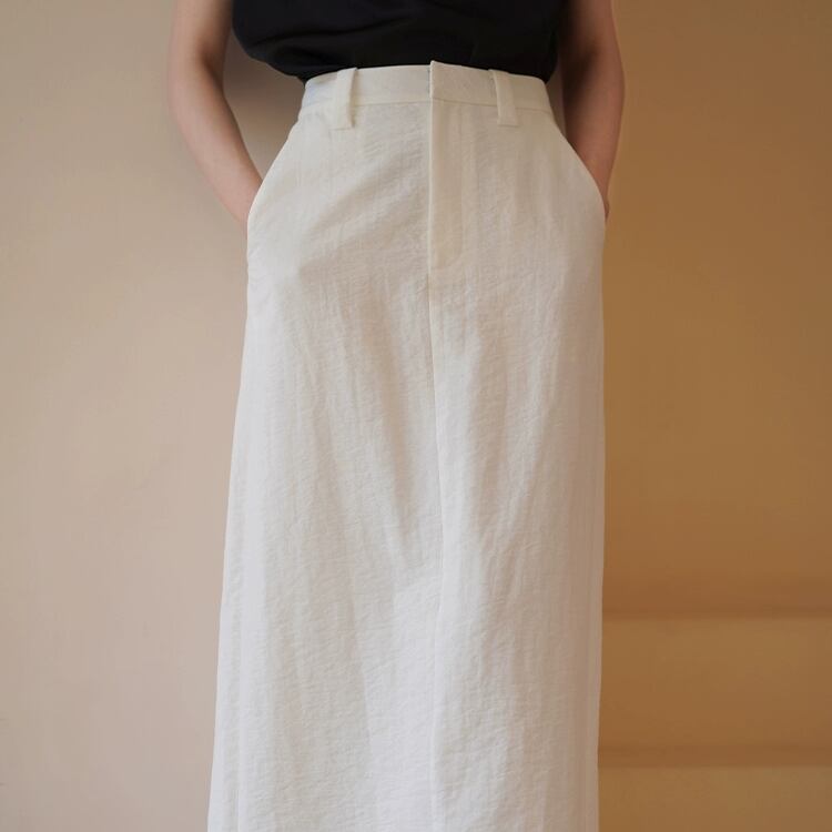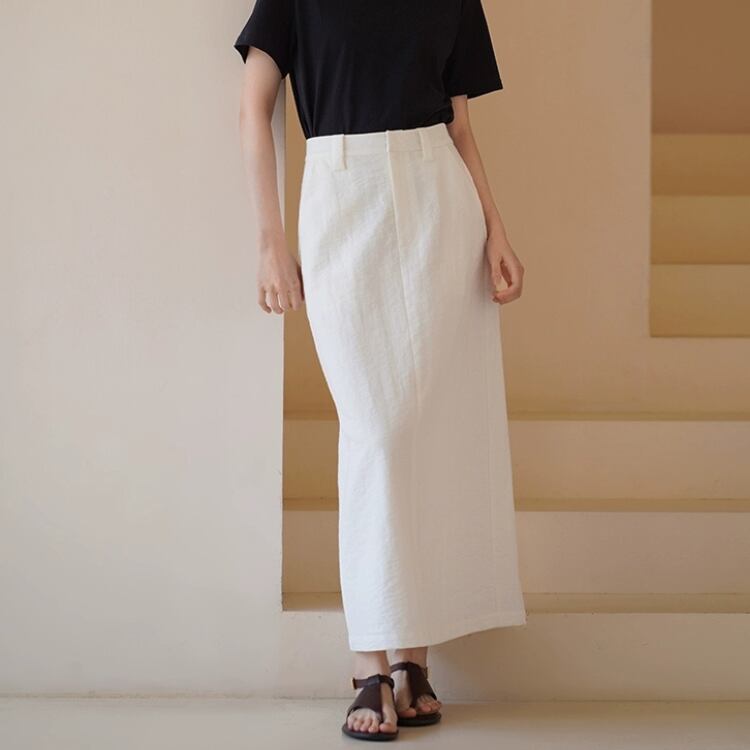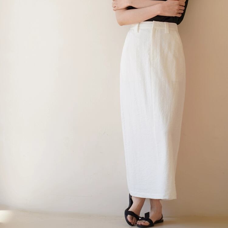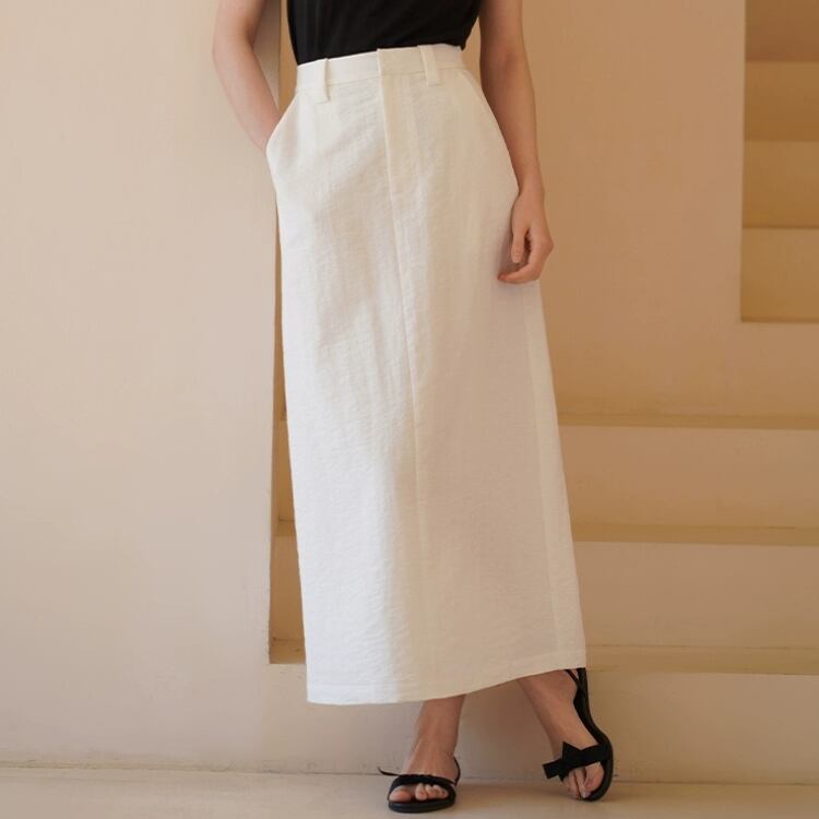 マキシ丈でありながら重く見えず、軽やかな雰囲気を纏うことができます。