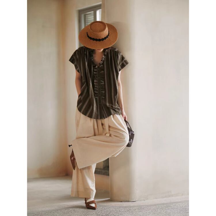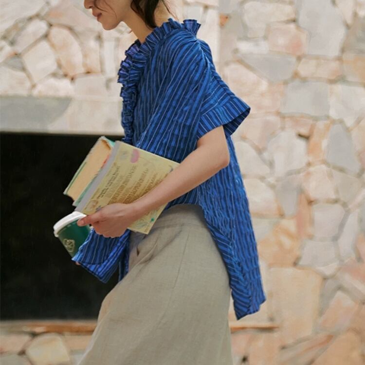 リップルのストライプ柄は夏のコーディネートにぴったりで、華やかさをプラスします。