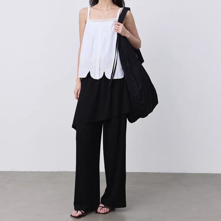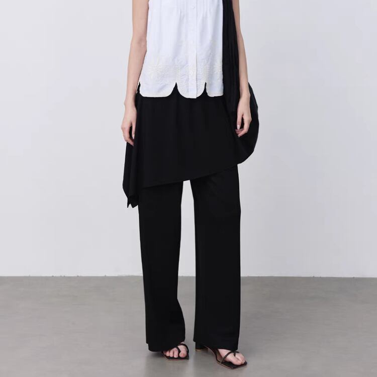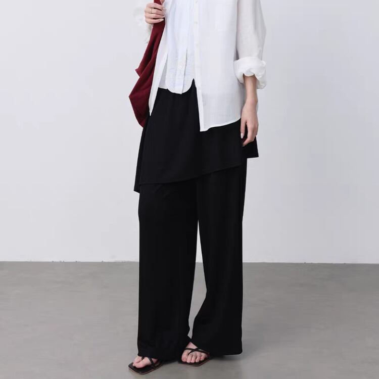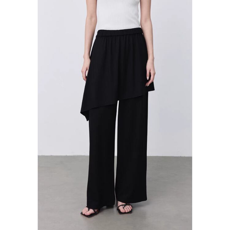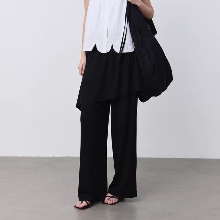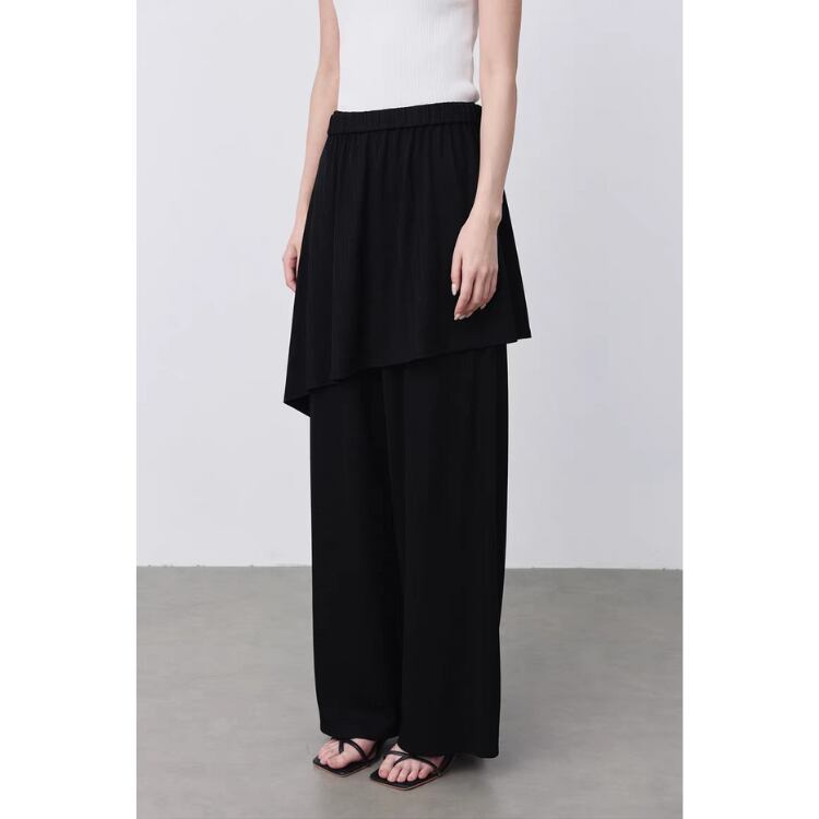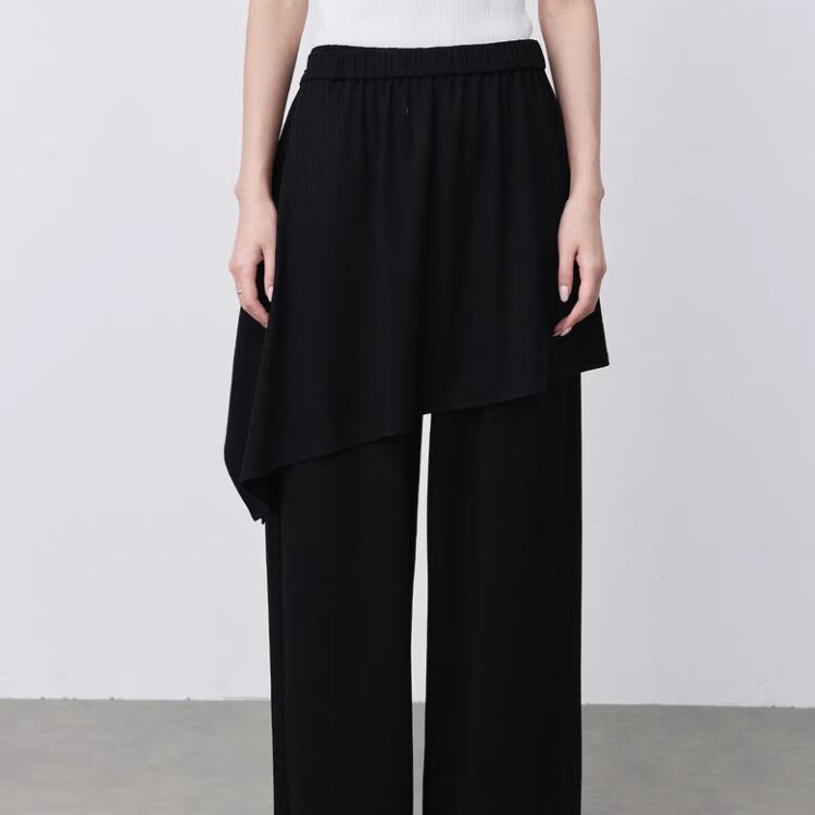 アシンメトリーヘムスカート付きワイドパンツ 1168
