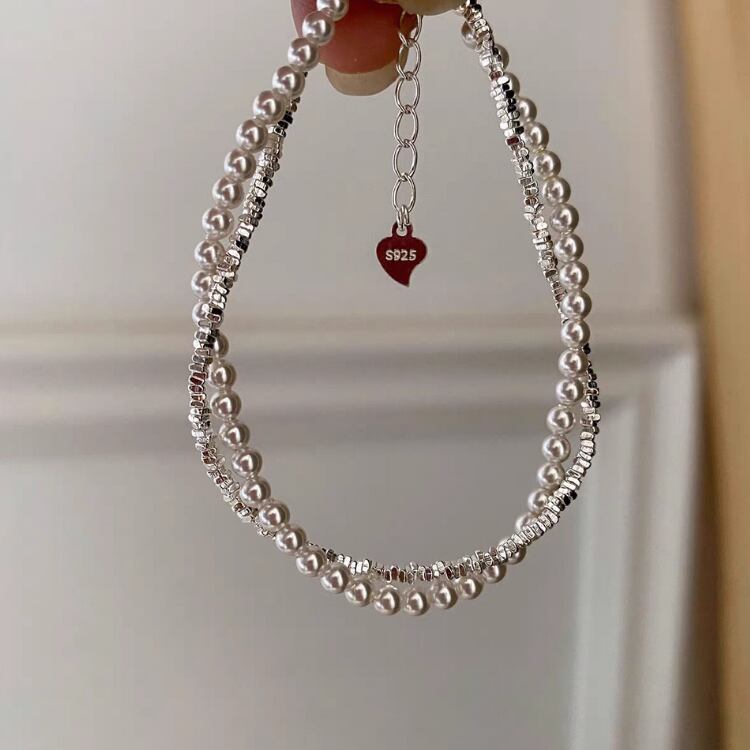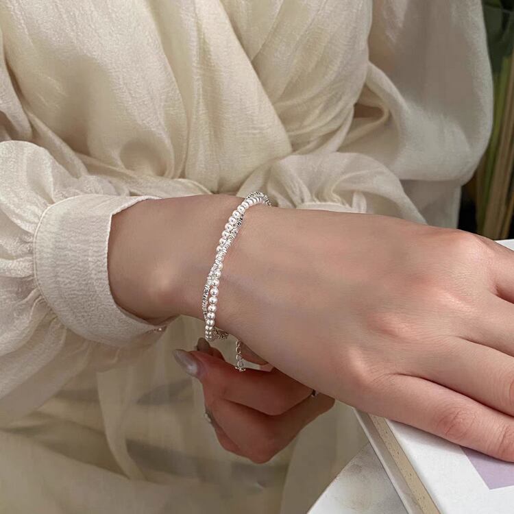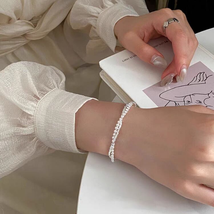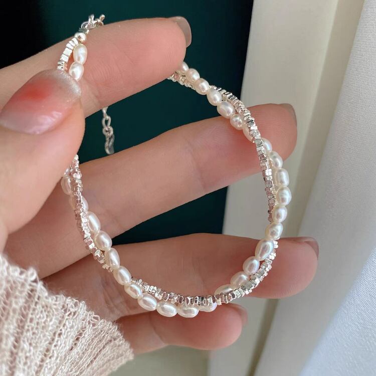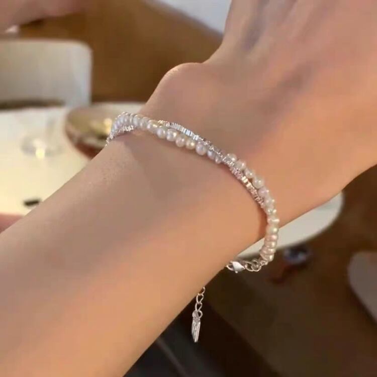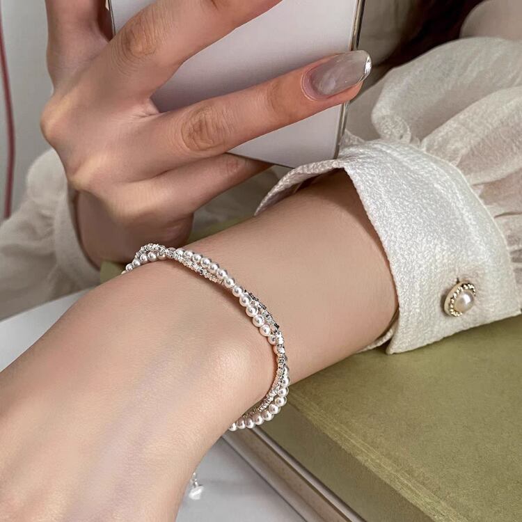 2連のデザインが手元を優雅に彩り、カジュアルからシックなスタイルまで幅広いコーディネートに対応します。