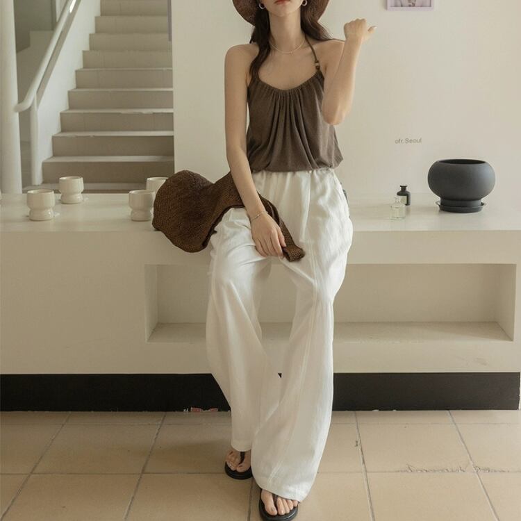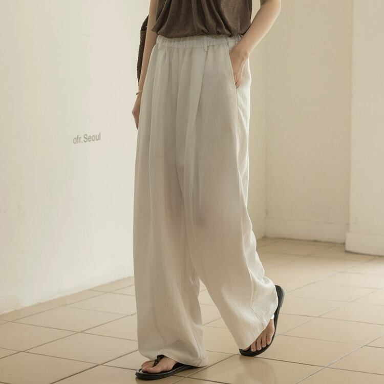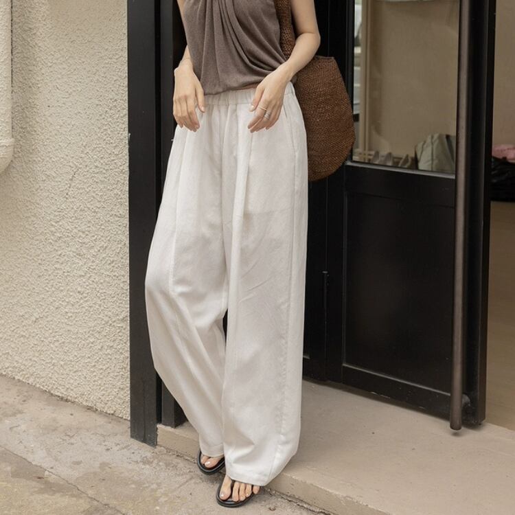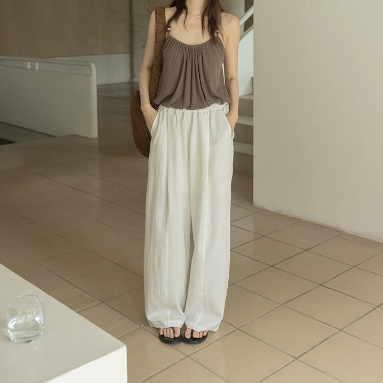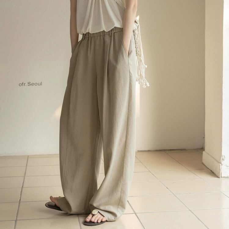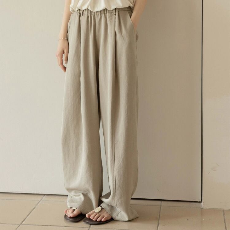 ウエストに施したワンタックがリラックス感を演出し、カジュアルながらも女性らしい雰囲気を醸し出します。