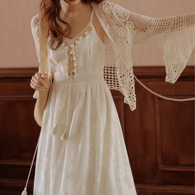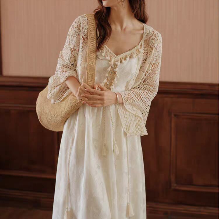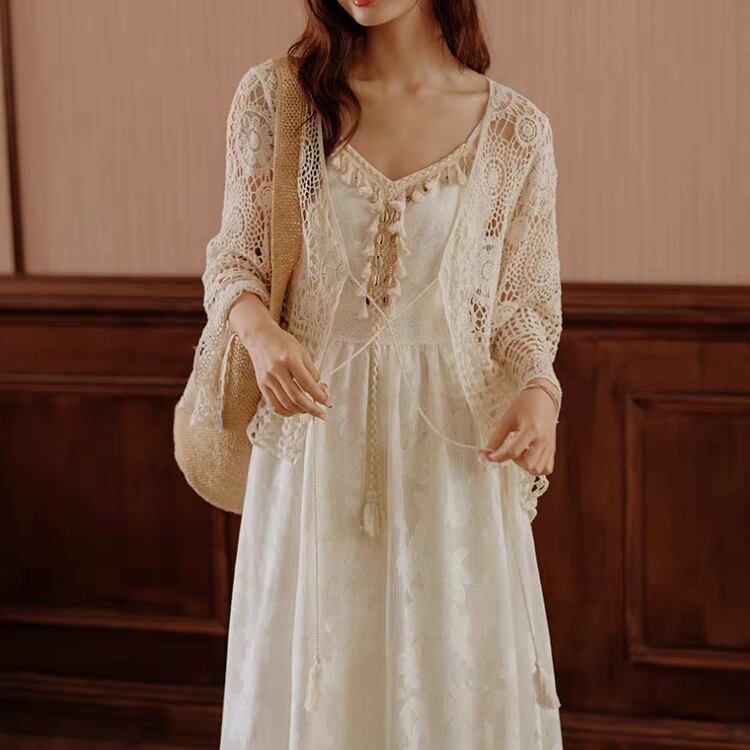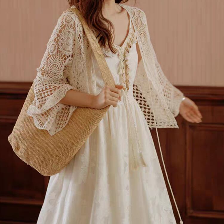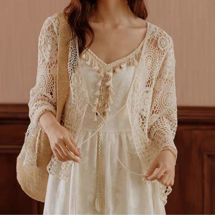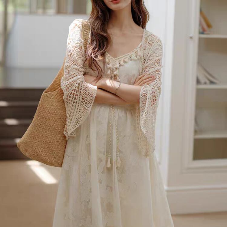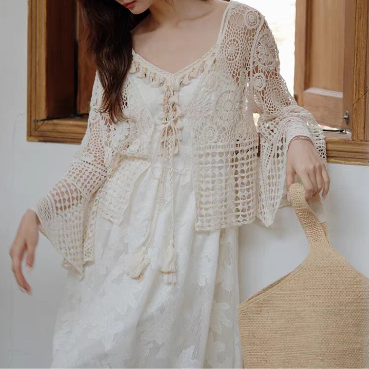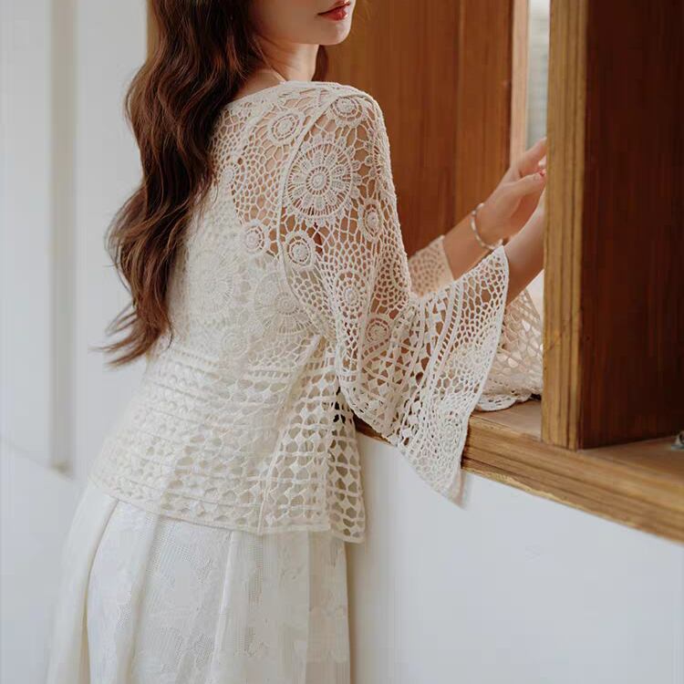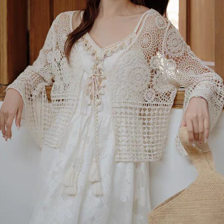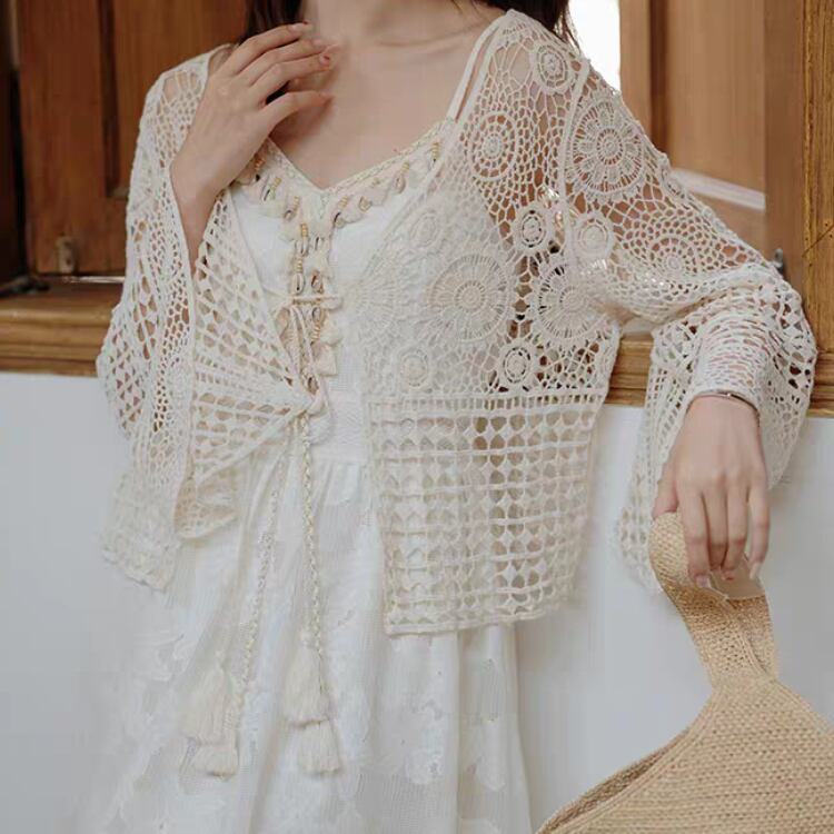 花ダイヤモチーフ編みベルスリーブニットボレロカーディガン 1169