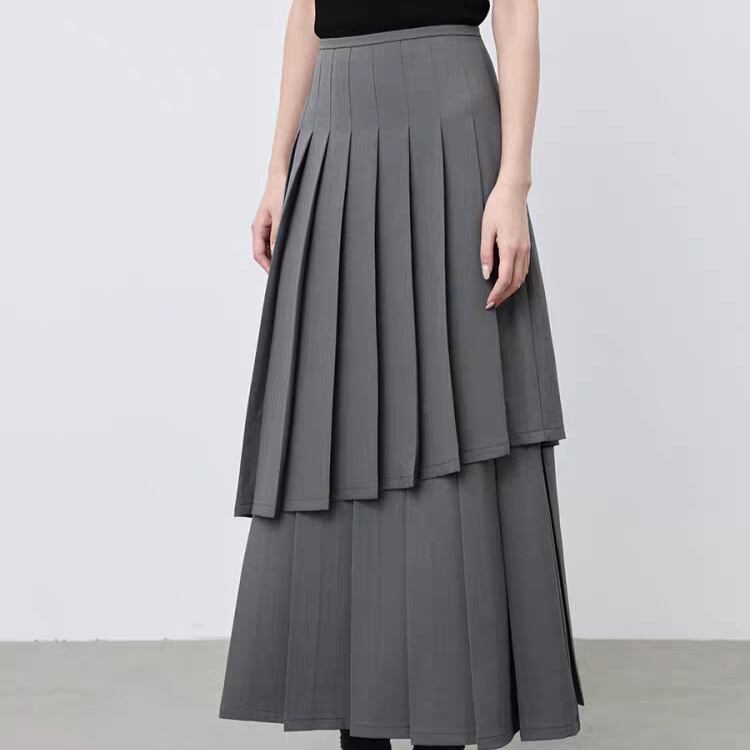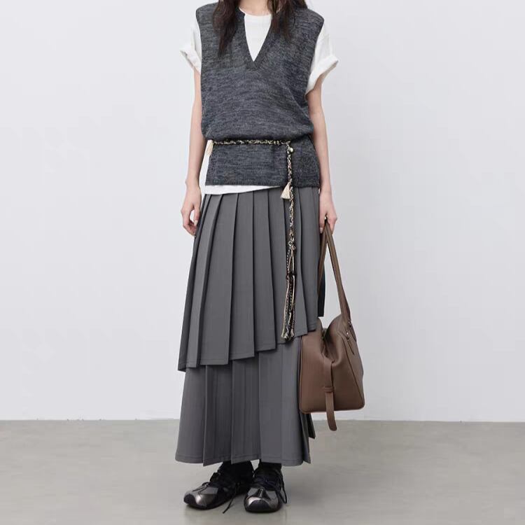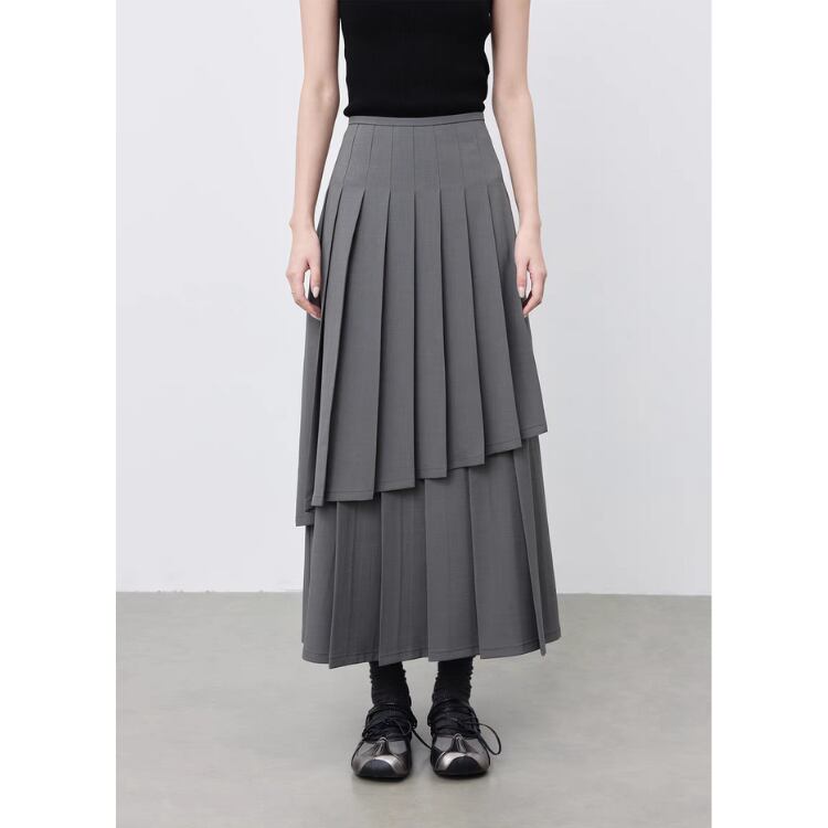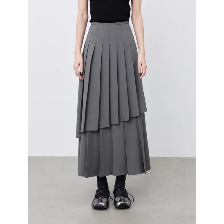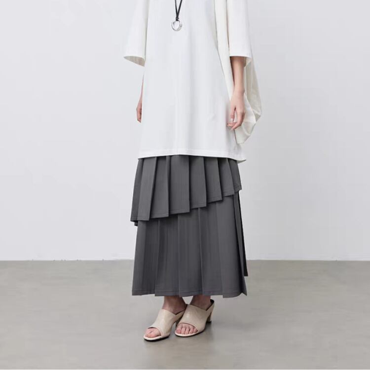 アシンメトリーヘムレイヤードプリーツスカート 1222