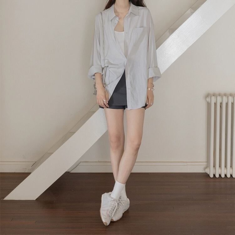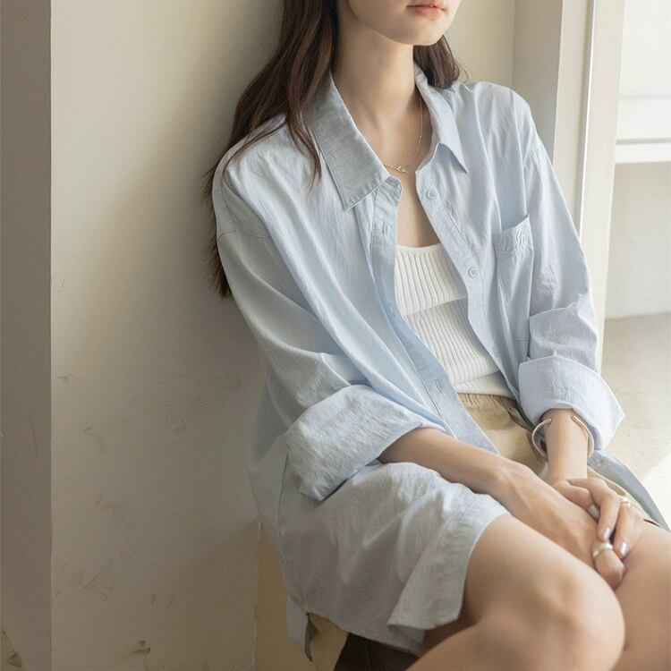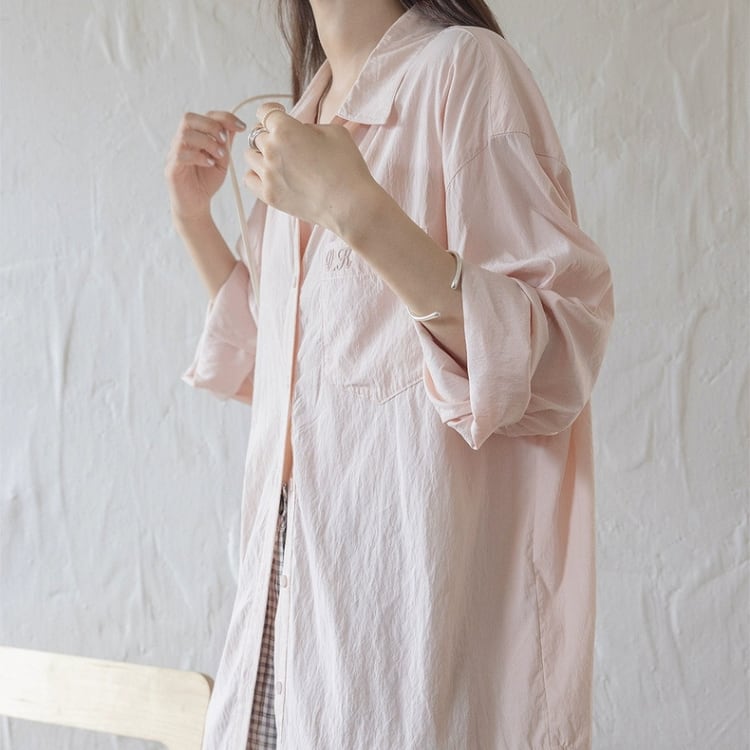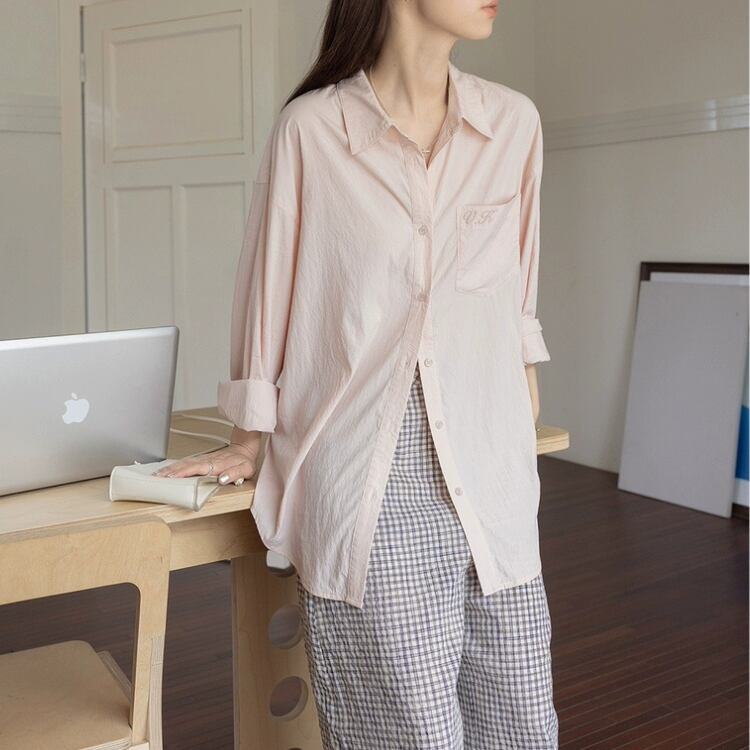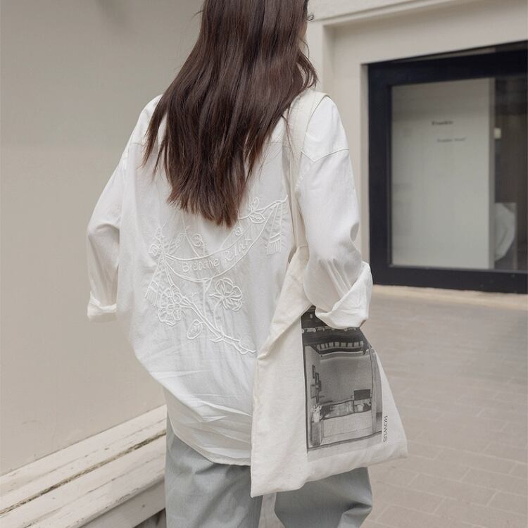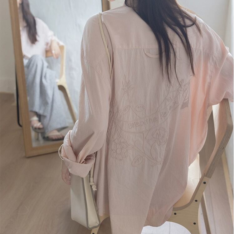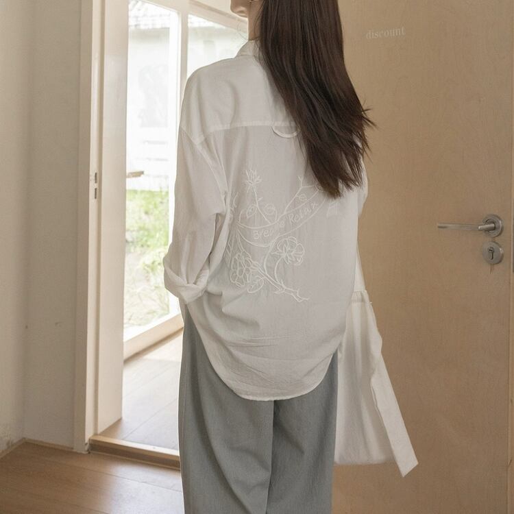 バックイラスト刺繡オーバーサイズシャツ 1185