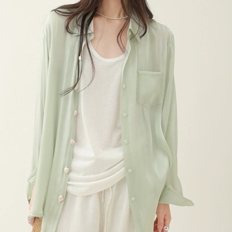 軽やかで扱いやすいシアーワッシャー生地を使用したシャツです。
