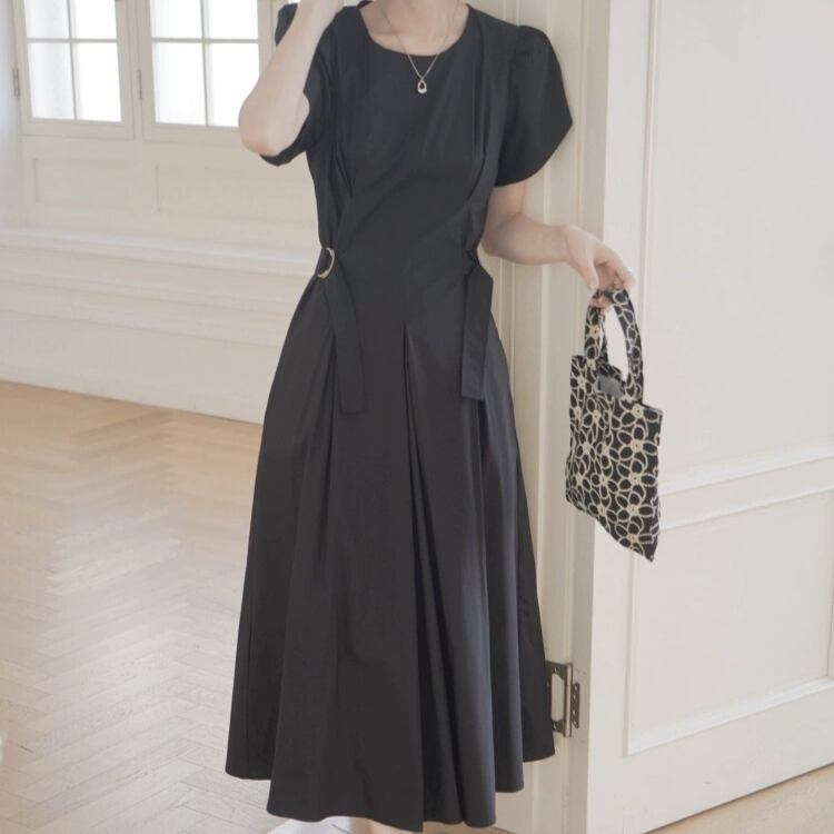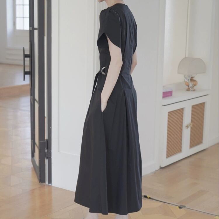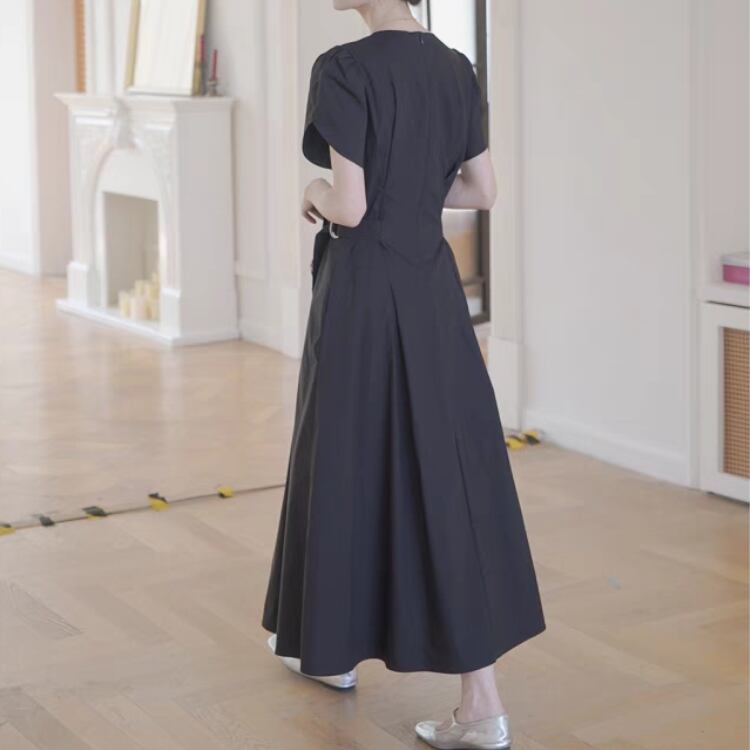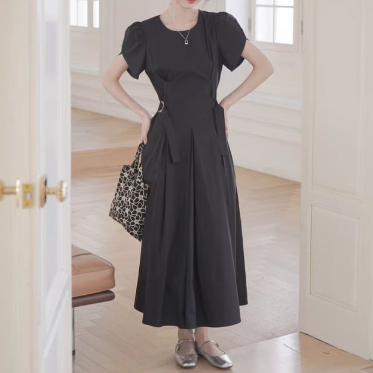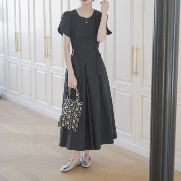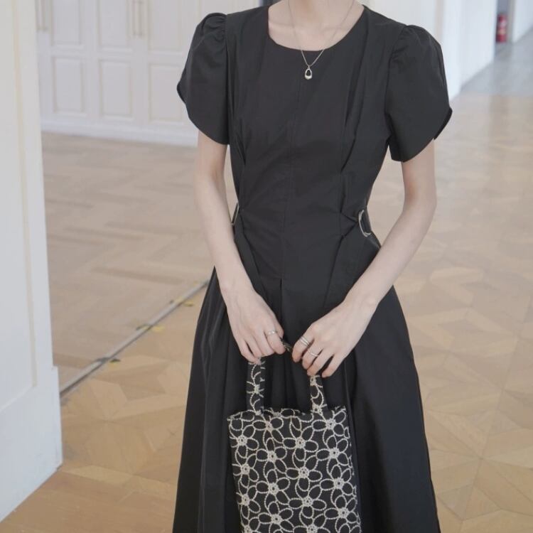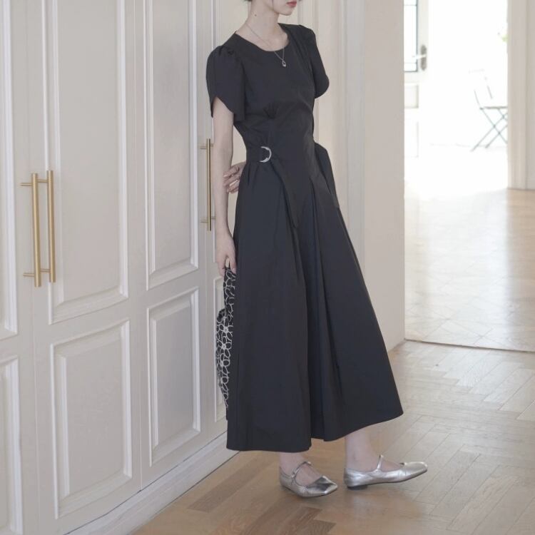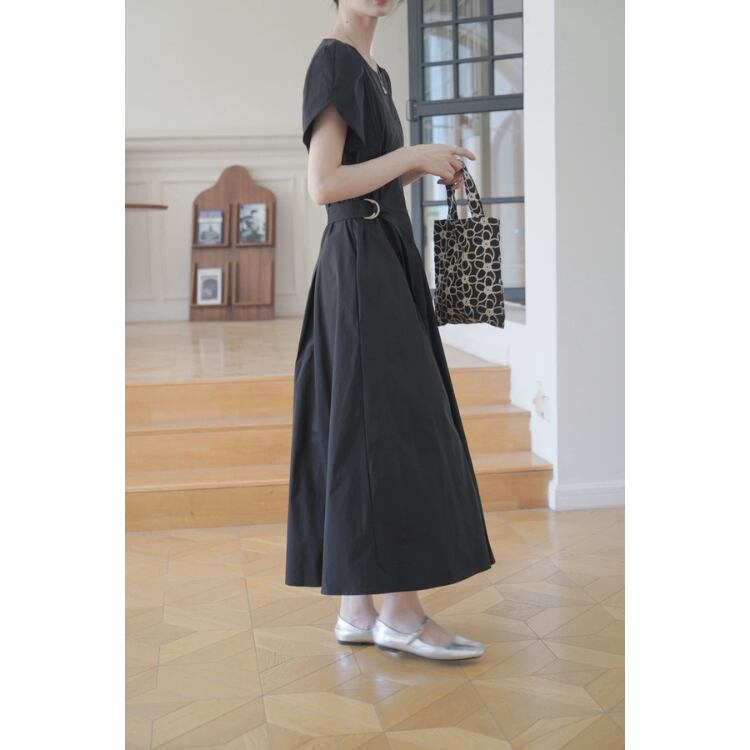 パフスリーブベルト付きウエストサイドフィット&フレアーワンピース 1214