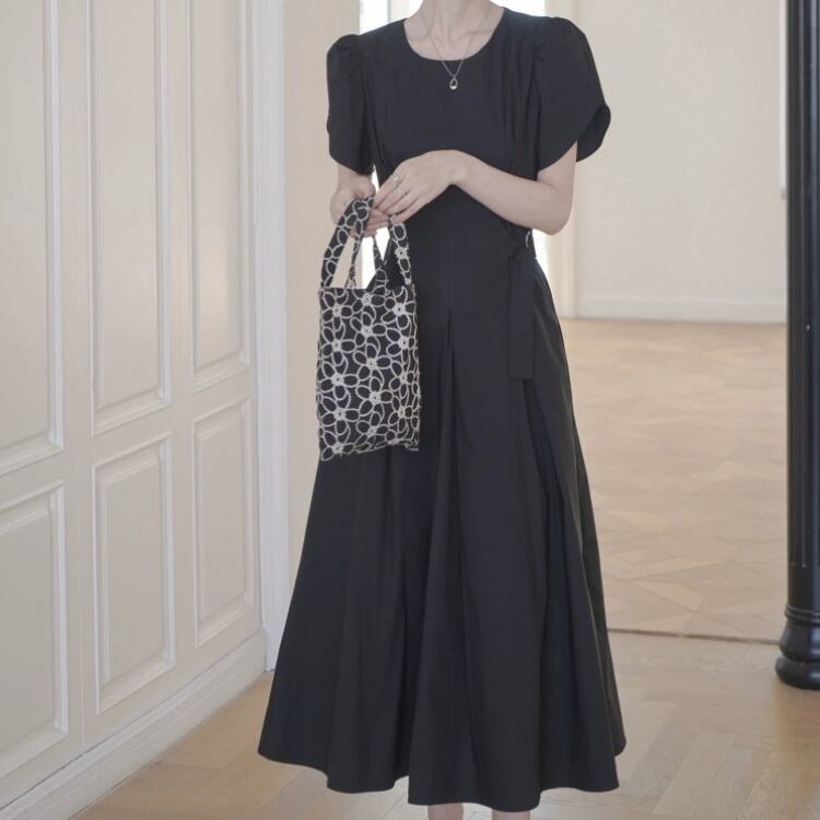 軽やかな印象を与えるパフスリーブデザインのワンピースです。