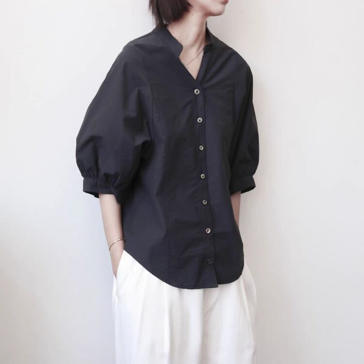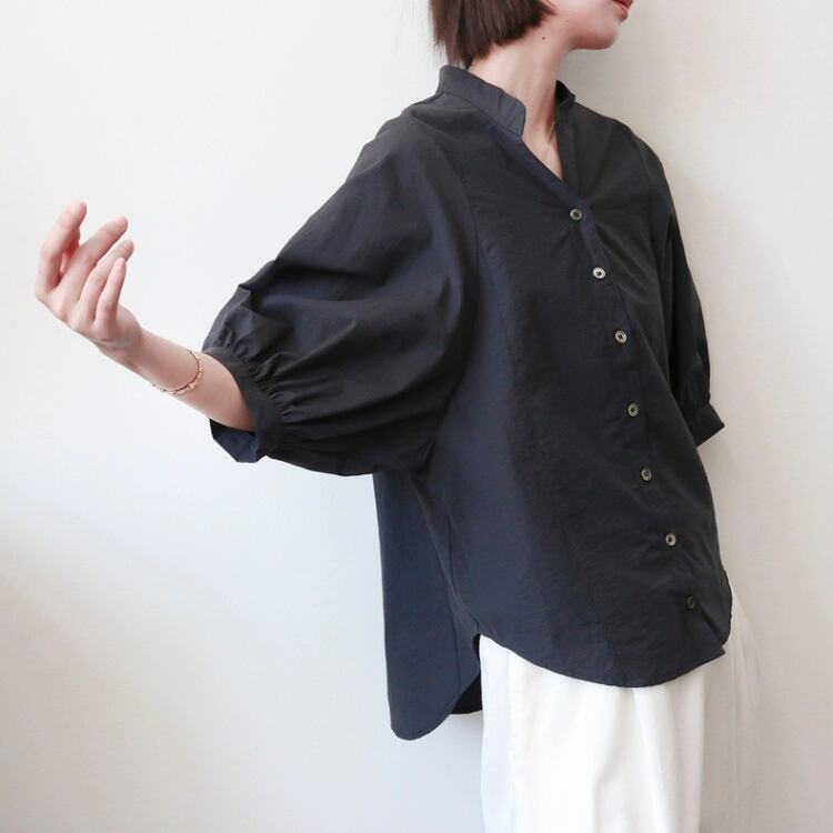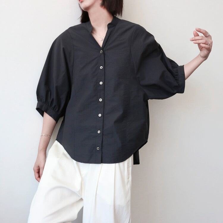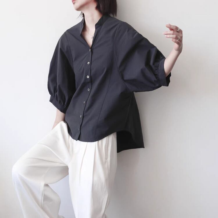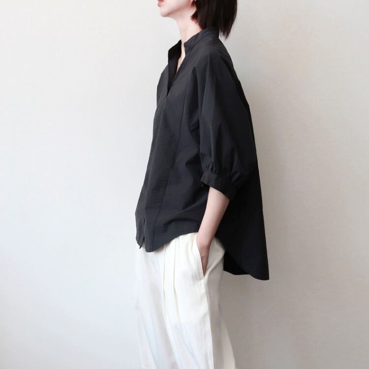 キーネックドルマンスリーブラウンドカットシャツ 1205