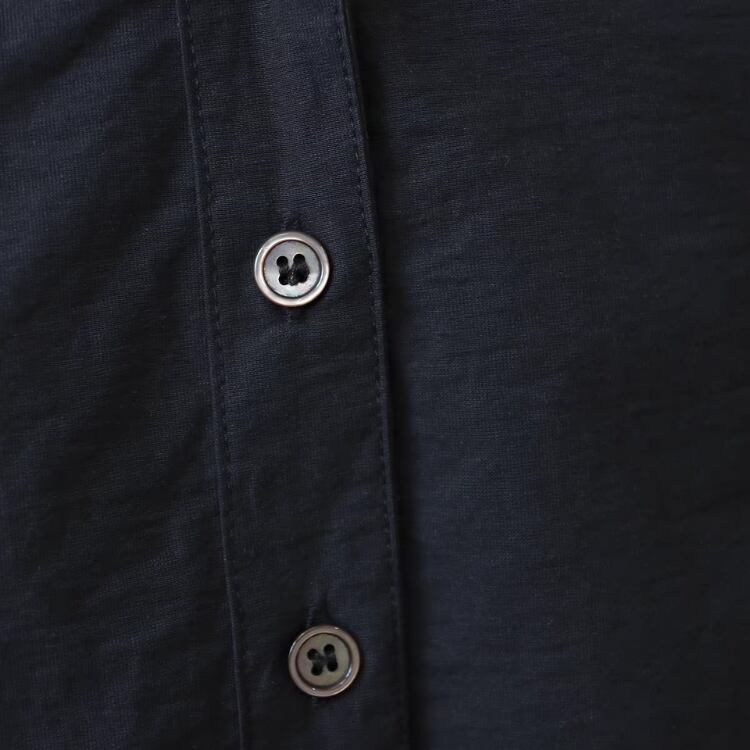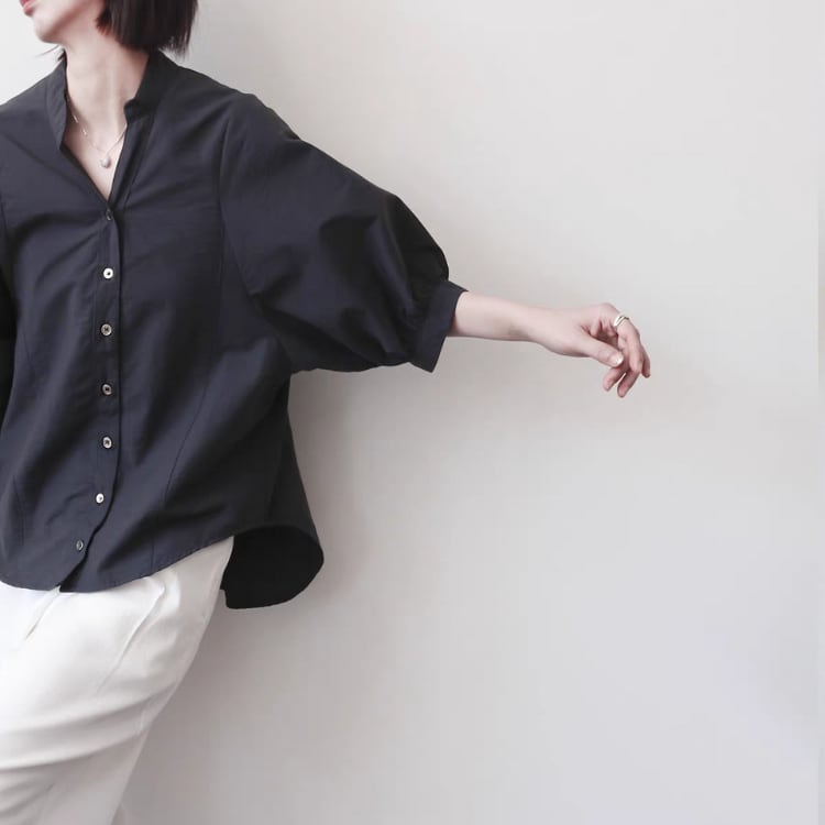 洗練されたキーネックデザインが顔周りをシャープに魅せてくれるシャツ。