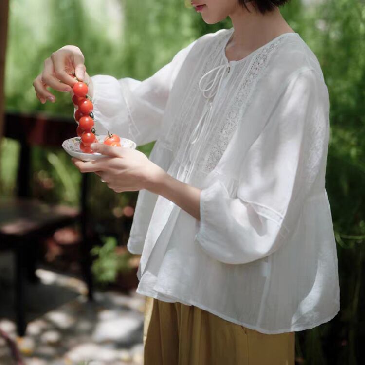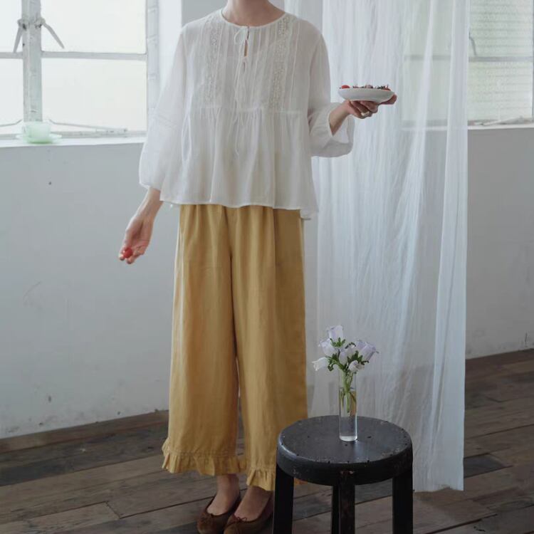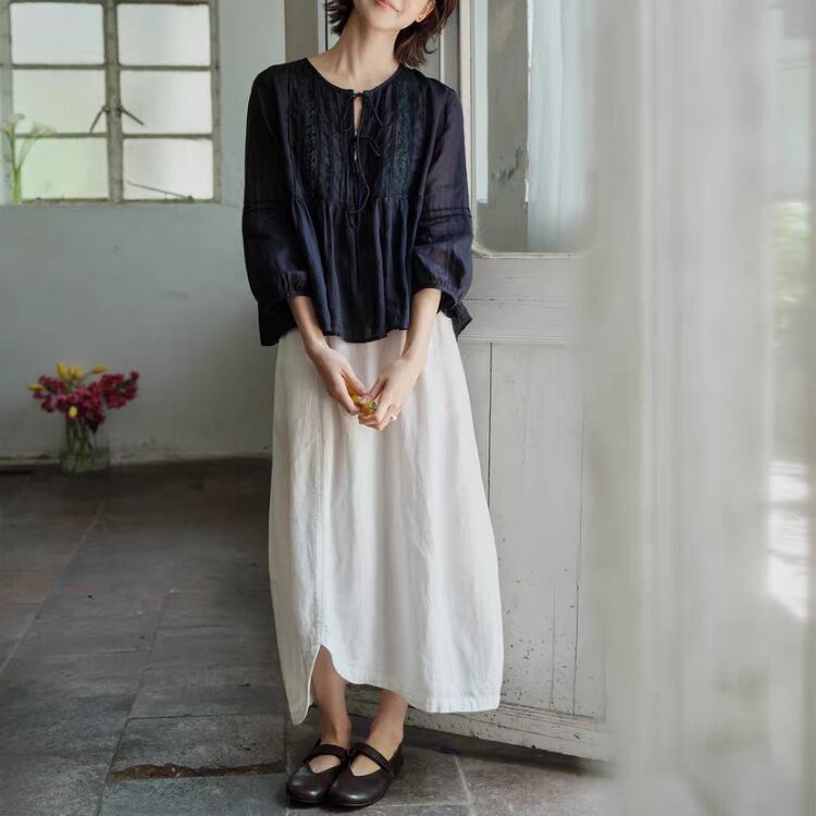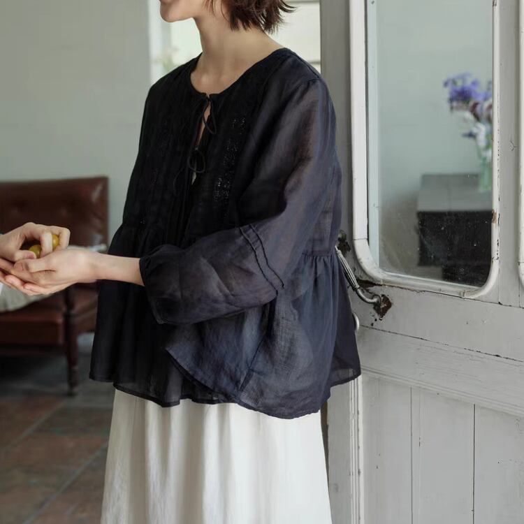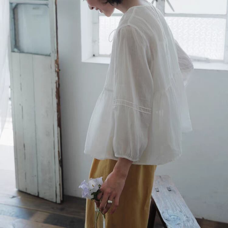 シアー生地素材で涼しさを感じるだけでなく、女性らしさも演出できるので、夏のコーディネートにぴったりです。