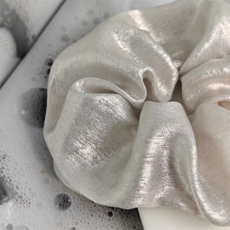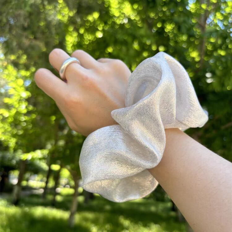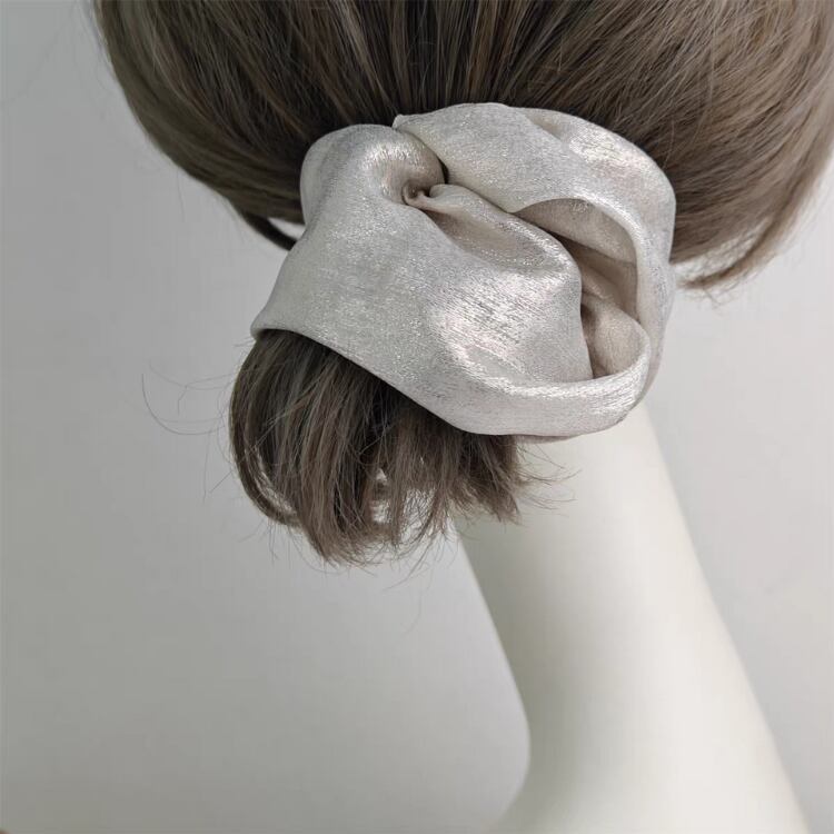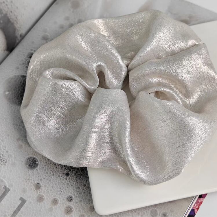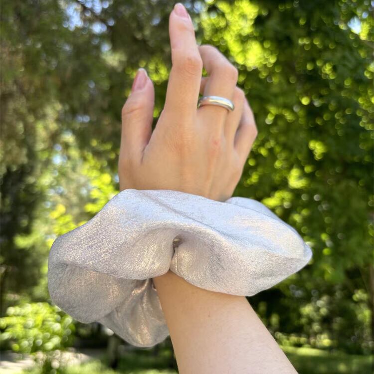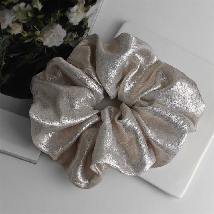 軽やかで華やかな雰囲気が魅力のメタリック生地シュシュです。