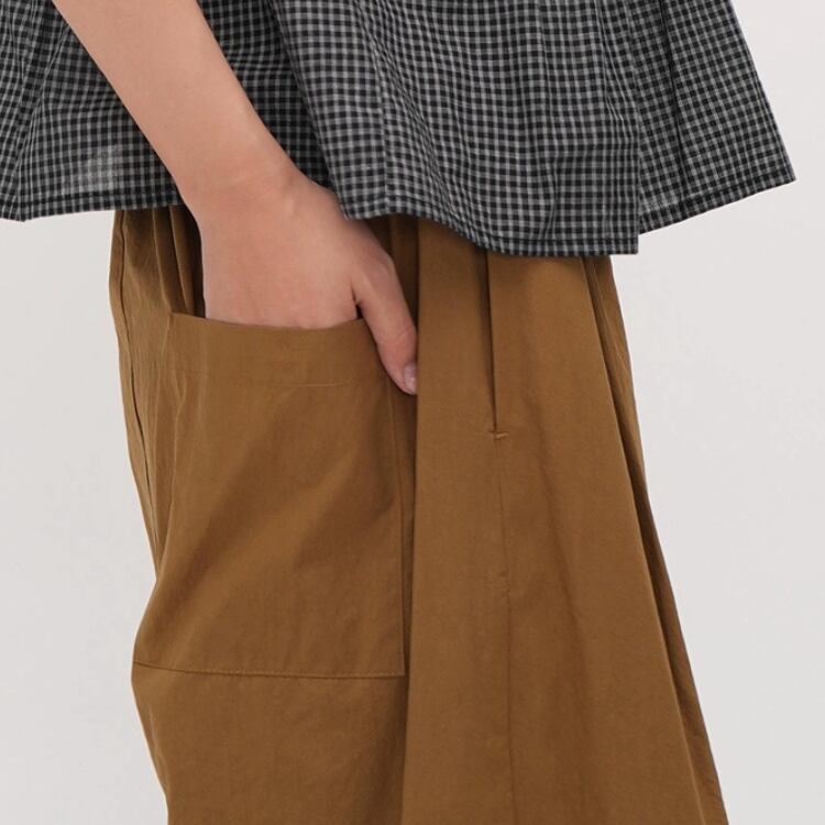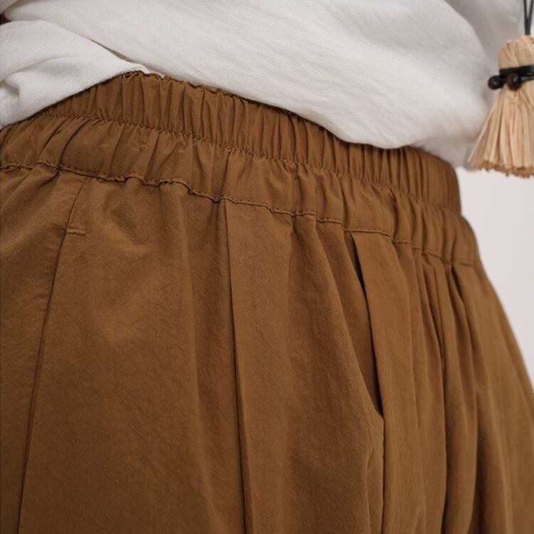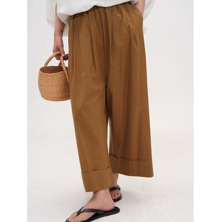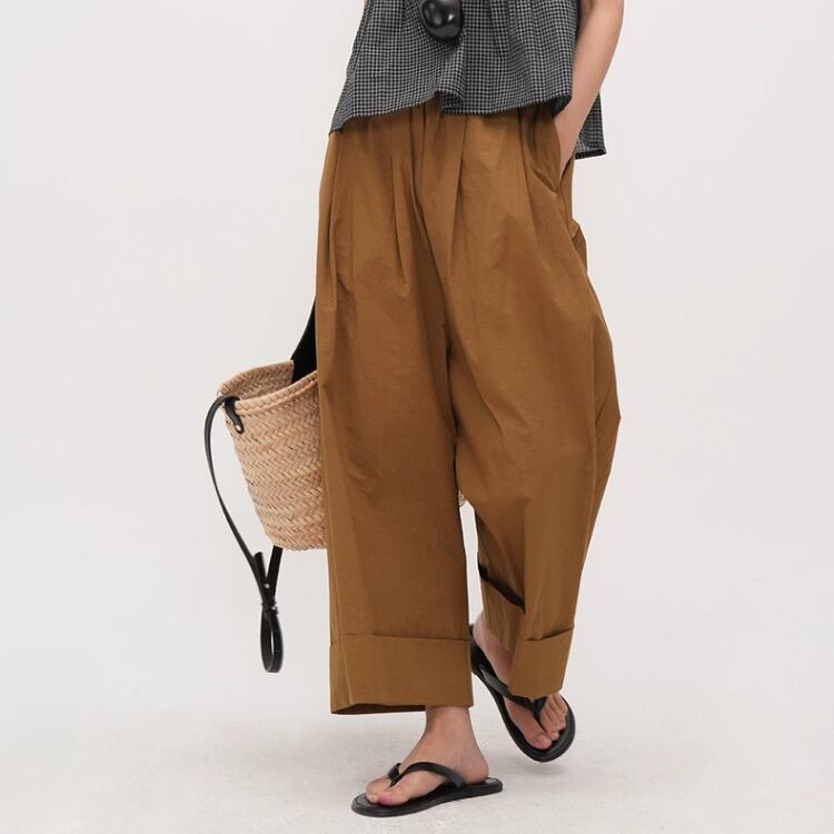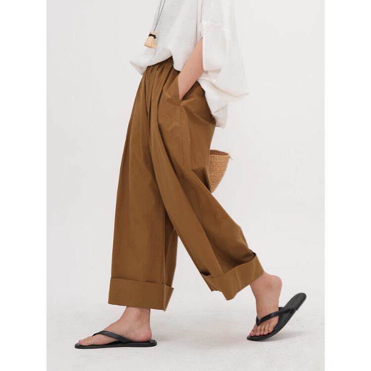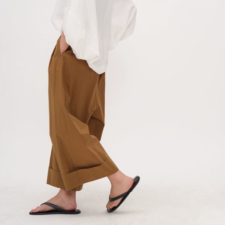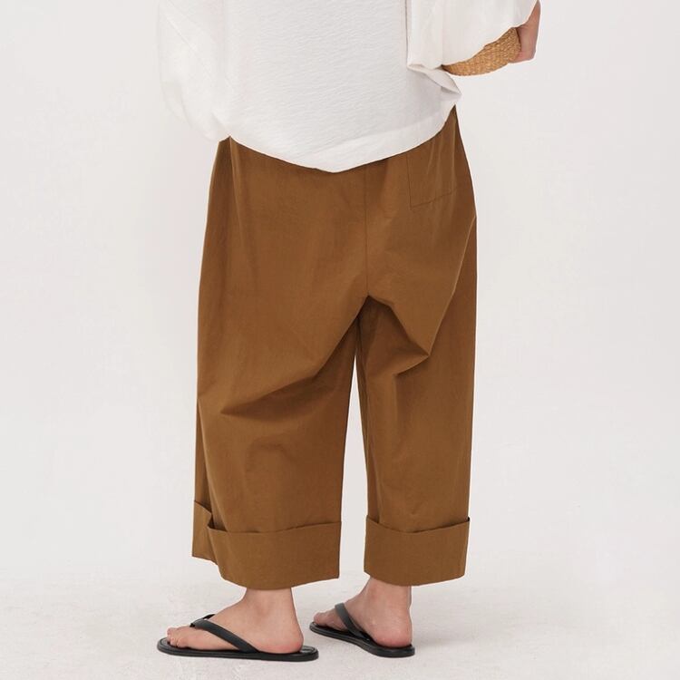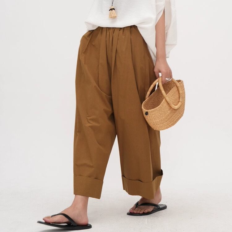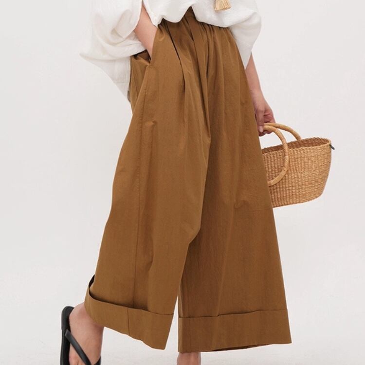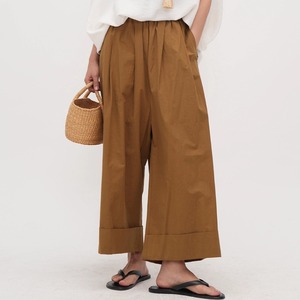 ウエストギャザーダブル裾クロップド丈ワイドパンツ 1238