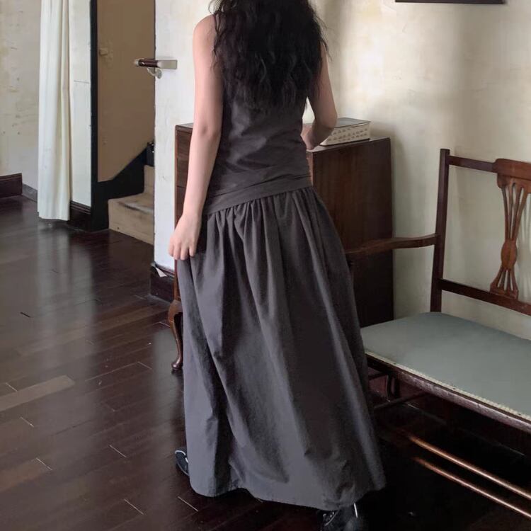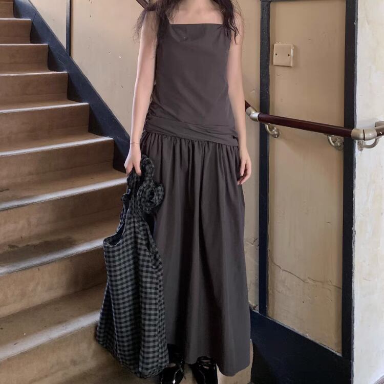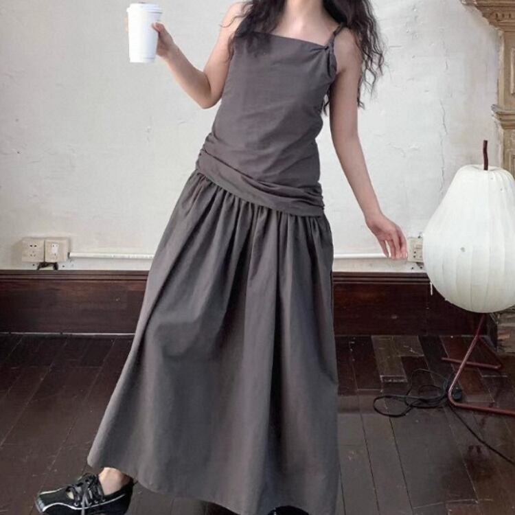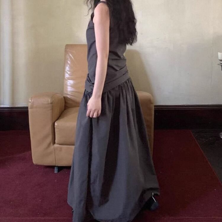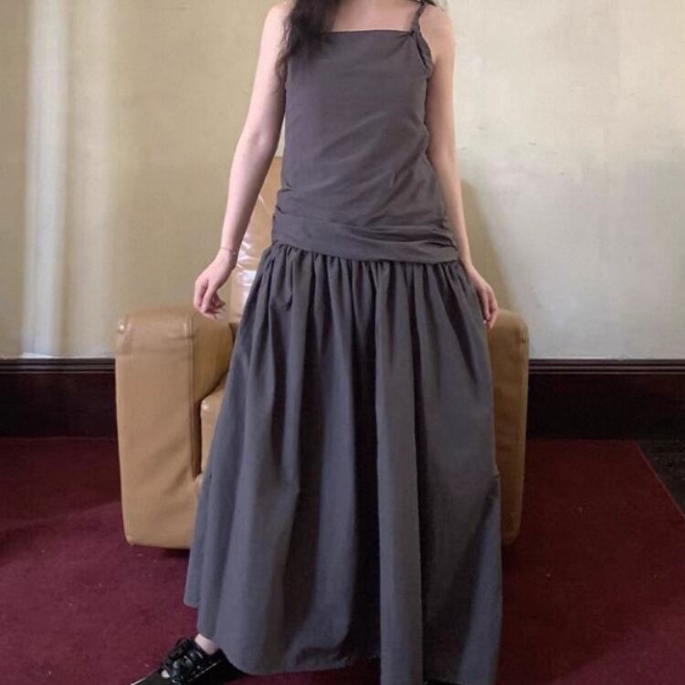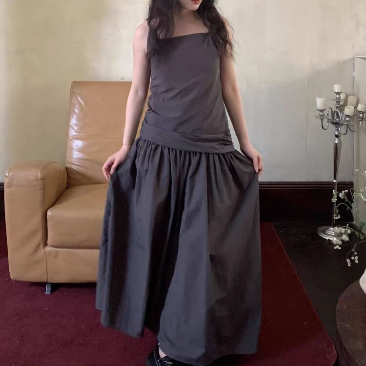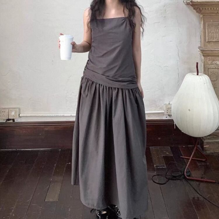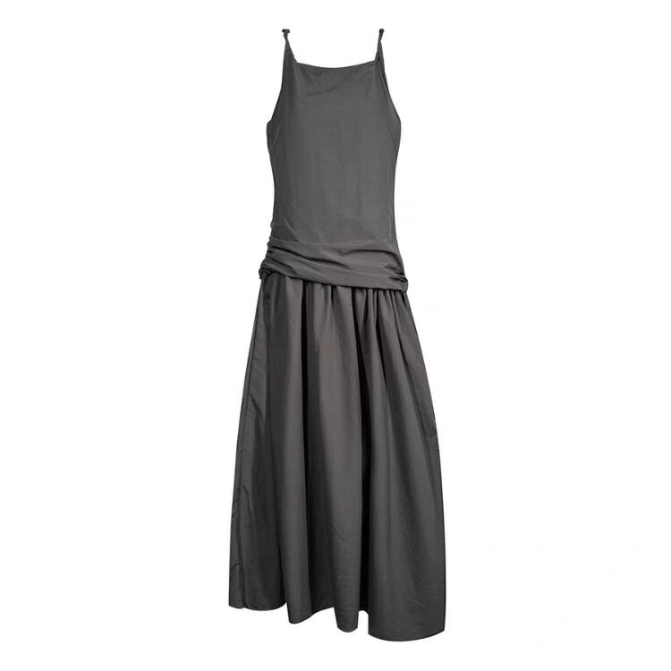 アシンメトリーヘムローウエストギャザー切り替えキャミソールワンピース 1239