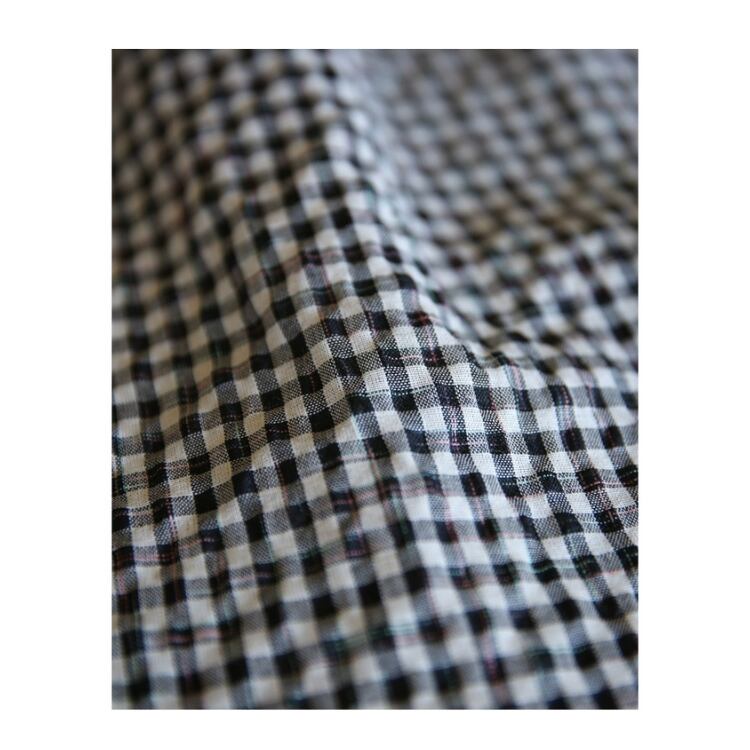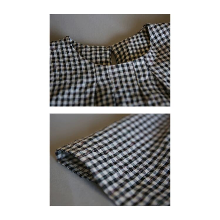 落ち着いた黒白のギンガムチェックは、サラッとした着心地で、秋まで長く使えるアイテムです。
