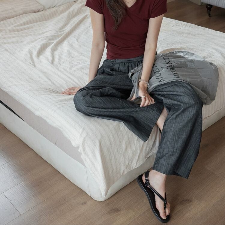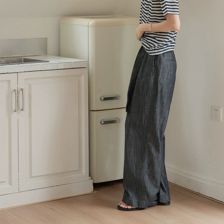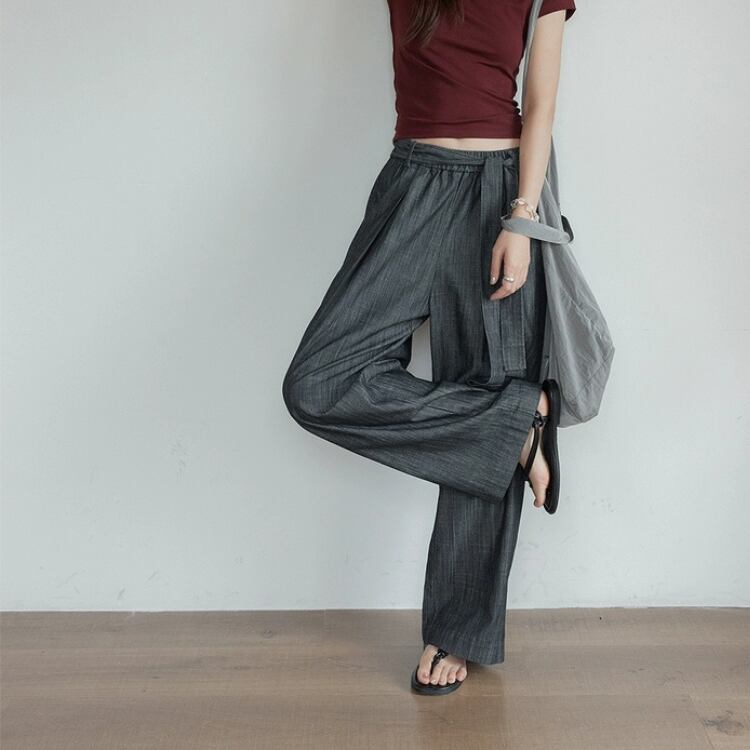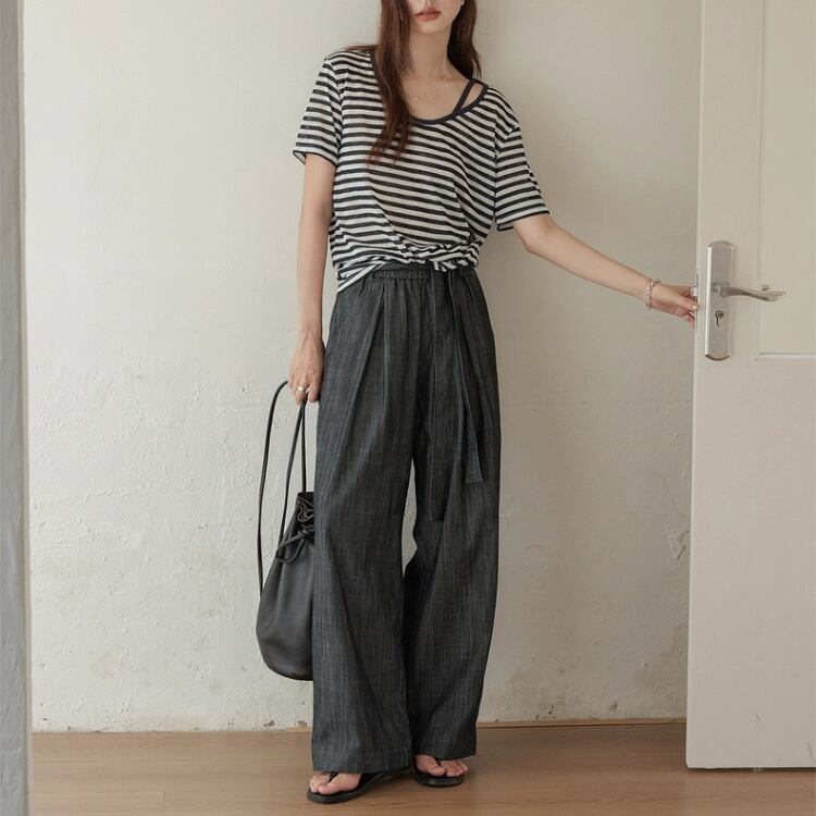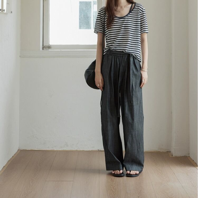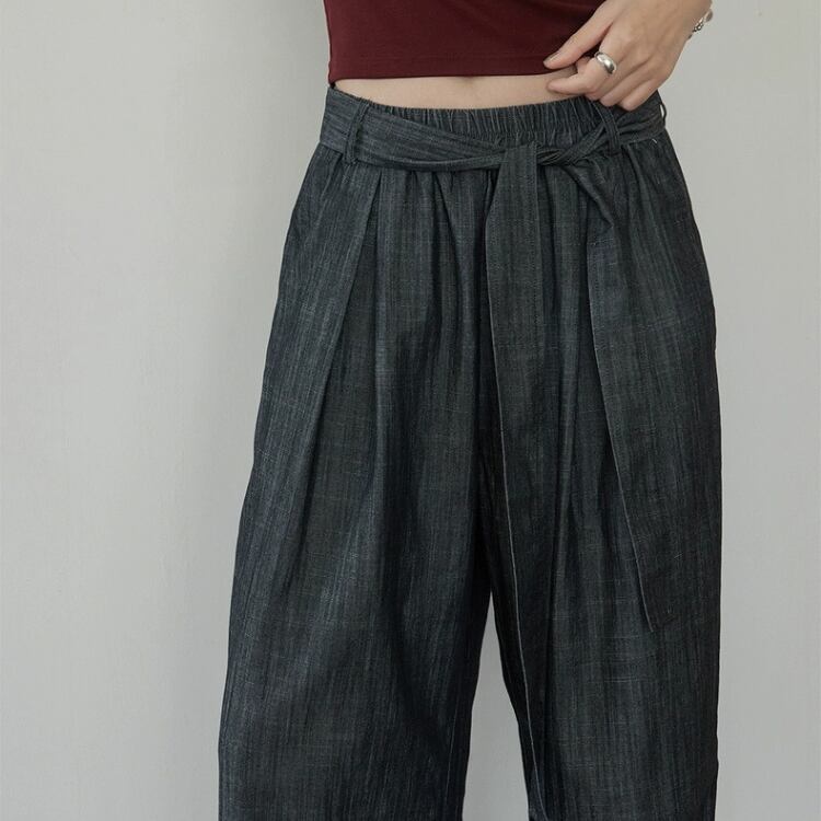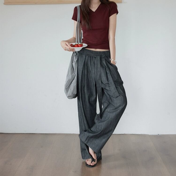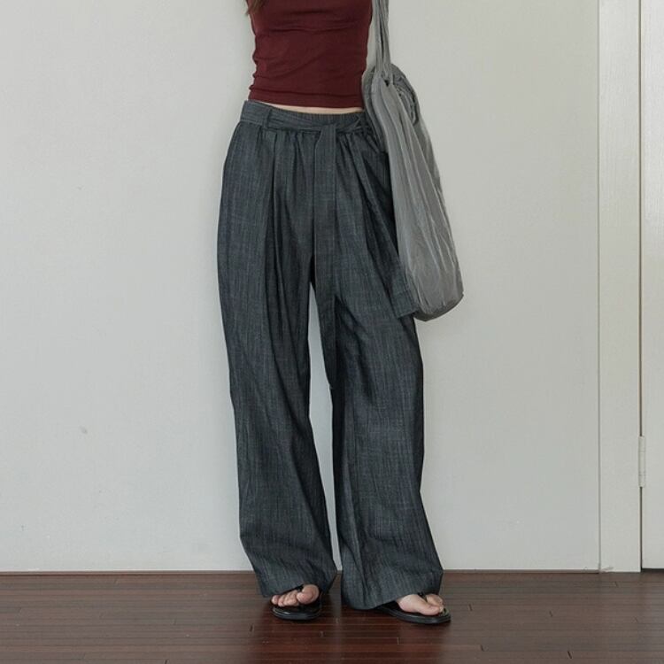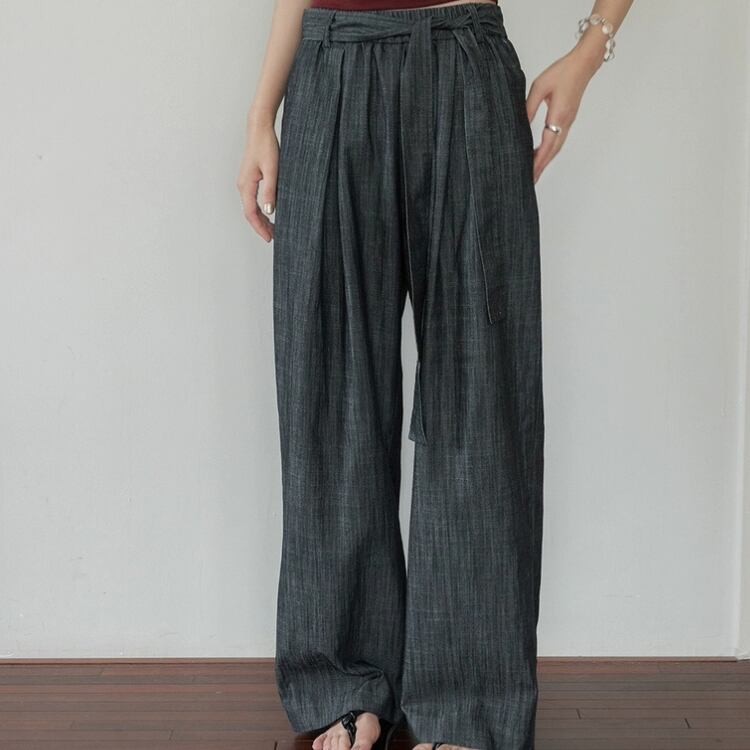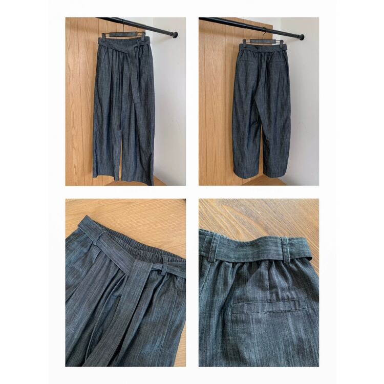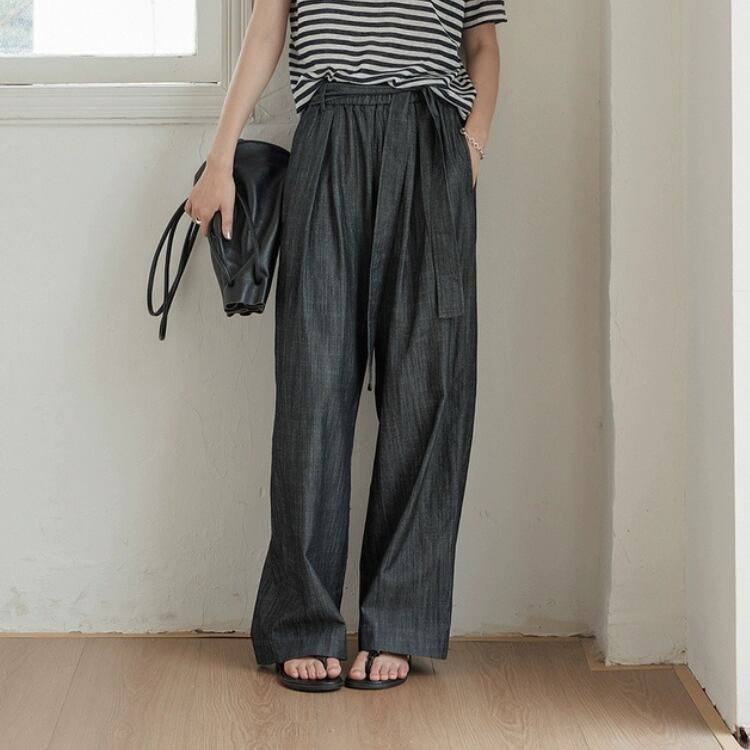 リボン付きウエストギャザーワイドパンツ 1242