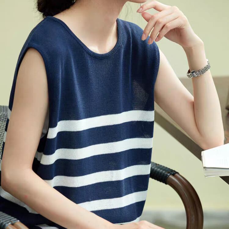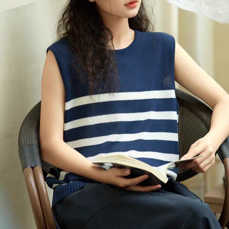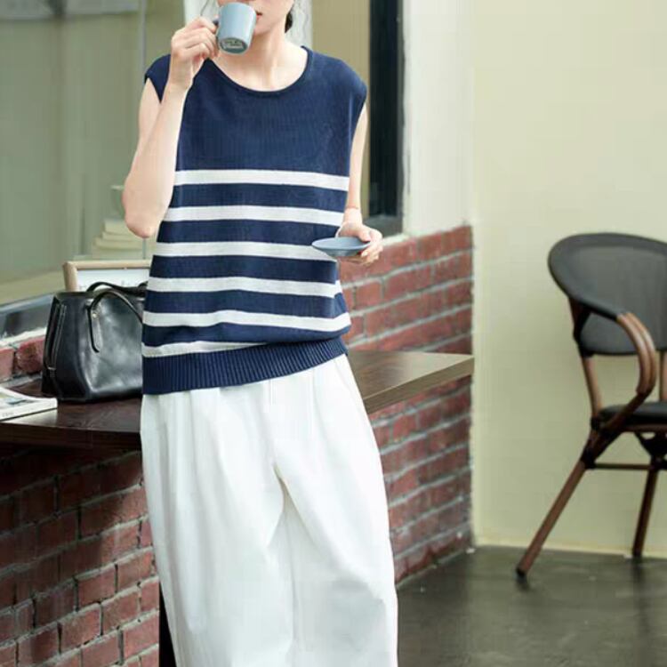 爽やかな雰囲気を演出する、ノースリーブニット 。