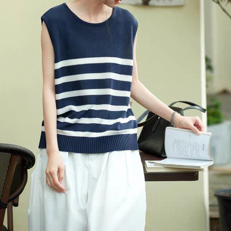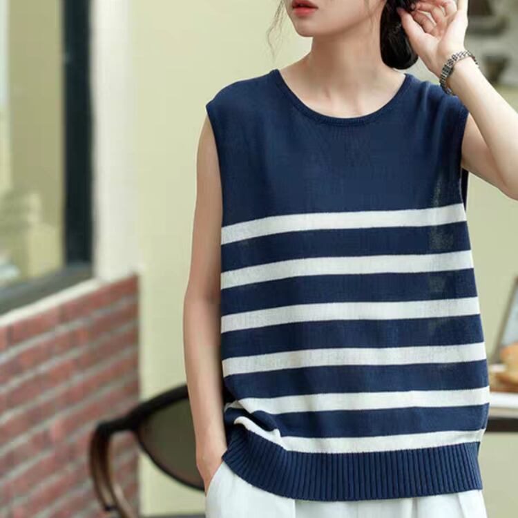 パネルボーダーノースリーブニット 1279