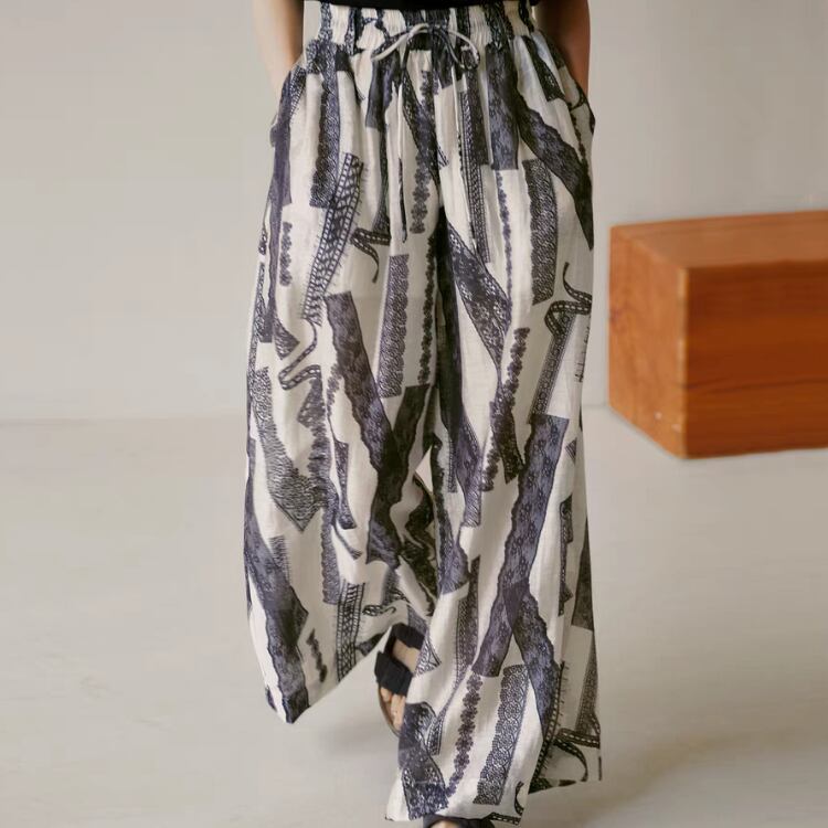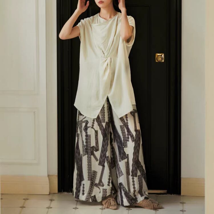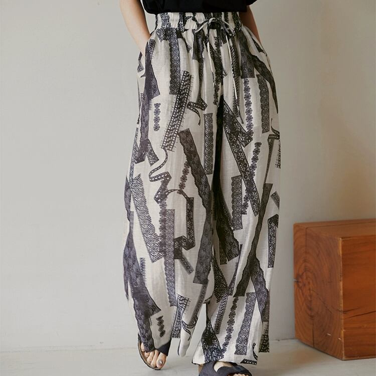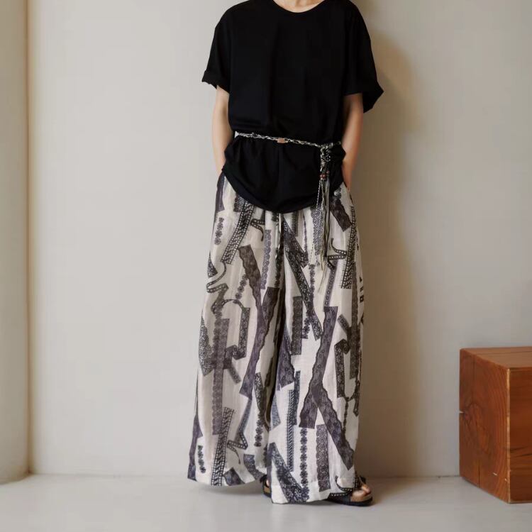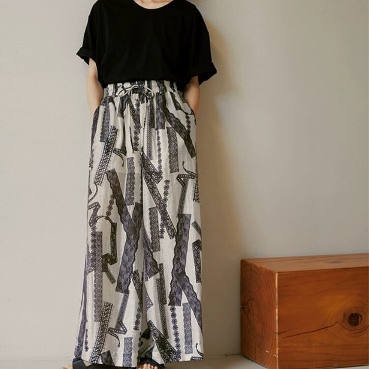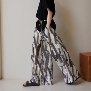 レーステープ柄プリントワイドパンツ 1274