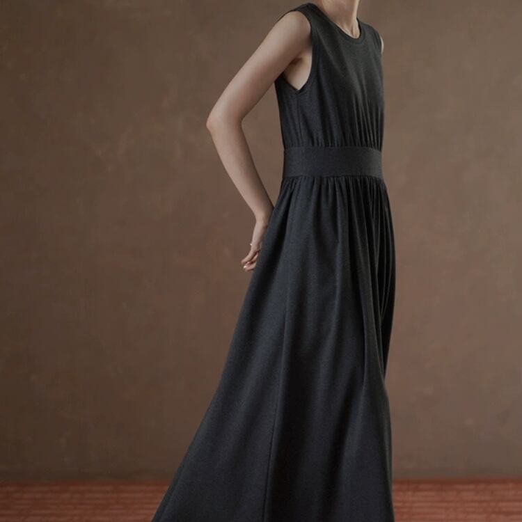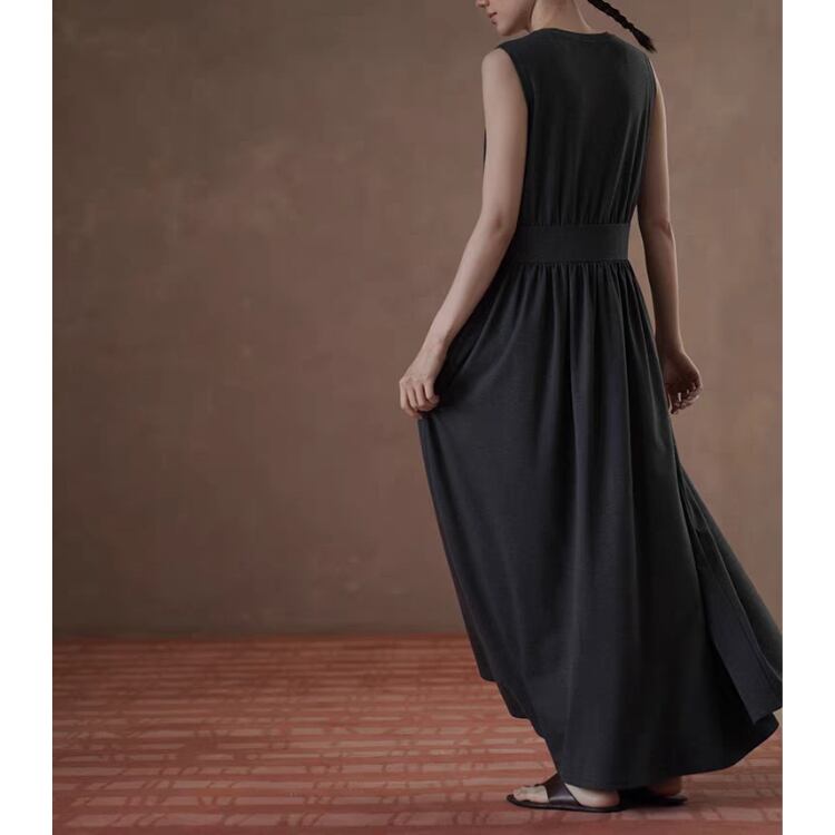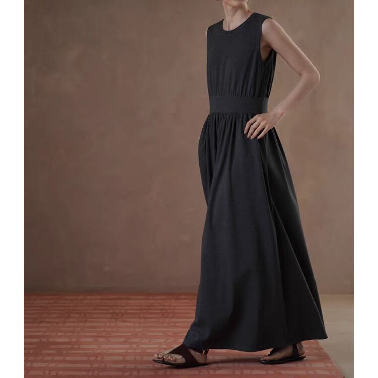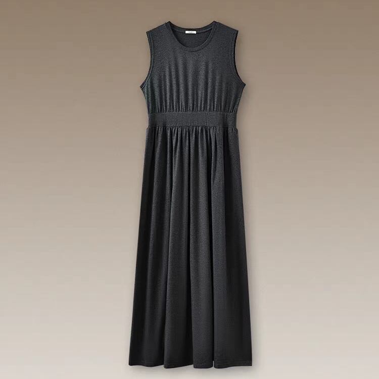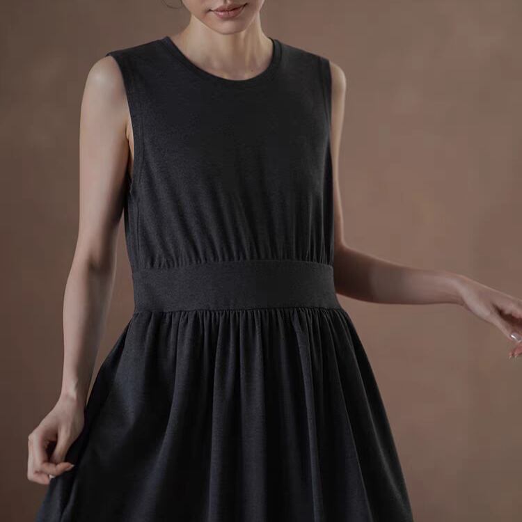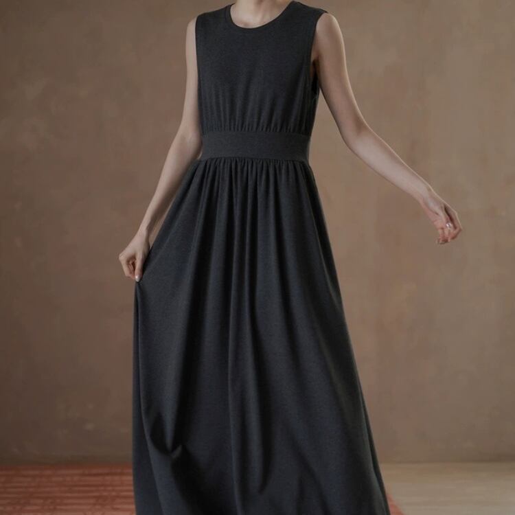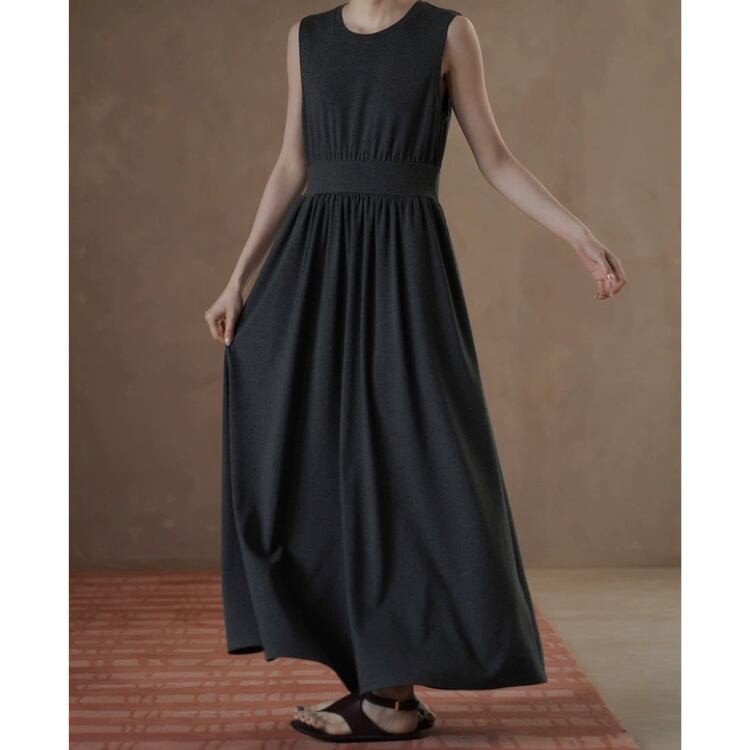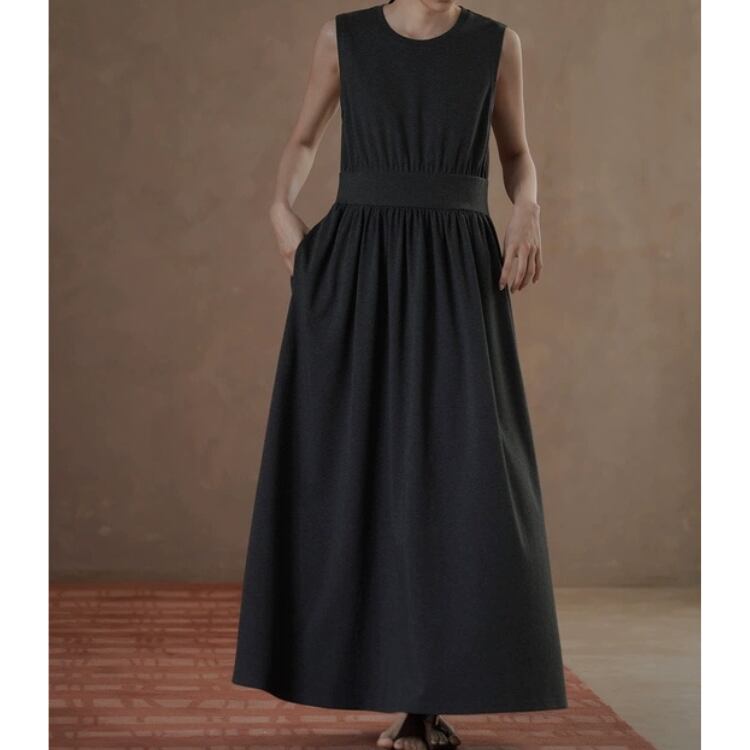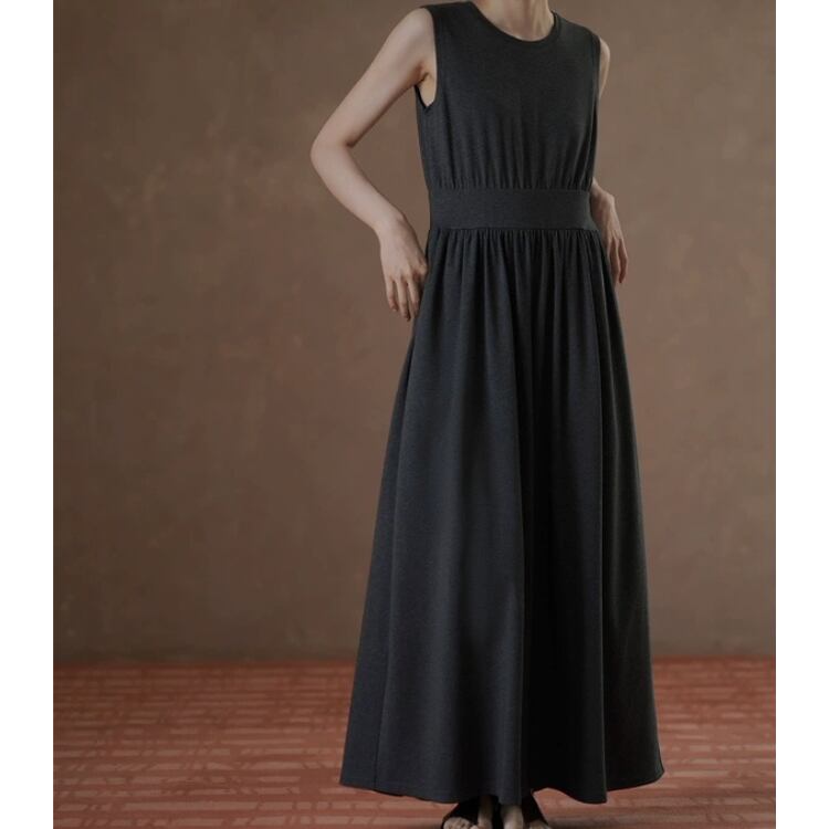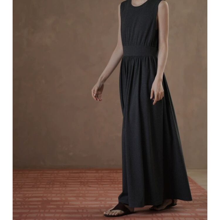 ハイウエストギャザー切り替えノースリーブカットソーワンピース 1262