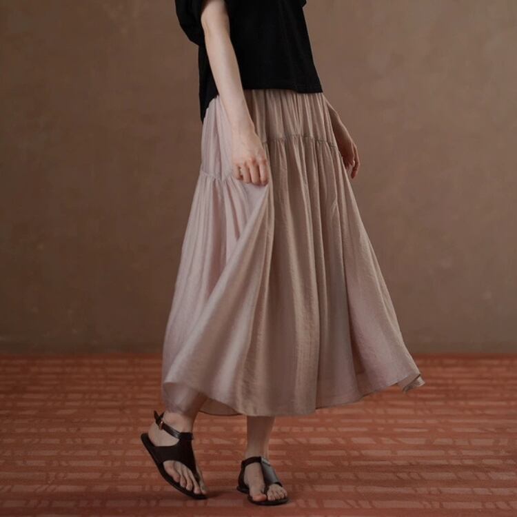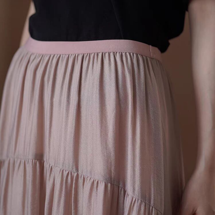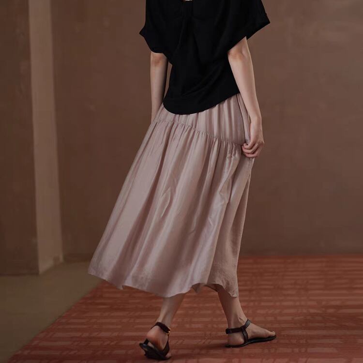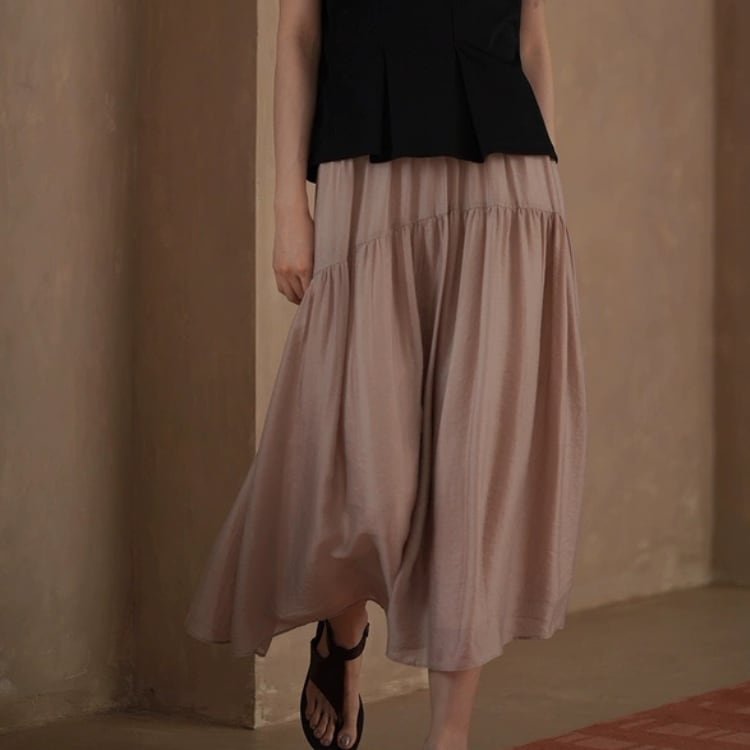 シンプルながらもスタイルにアクセントを加え、テロンとしたシアー生地が女性らしい雰囲気を演出します。