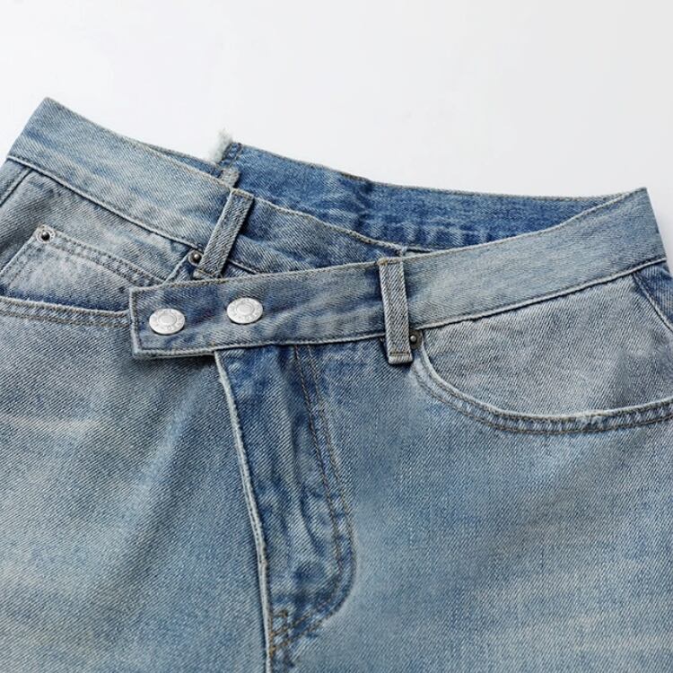 新鮮なウエストのリメイクデザインが特徴のデニムワイドパンツです。